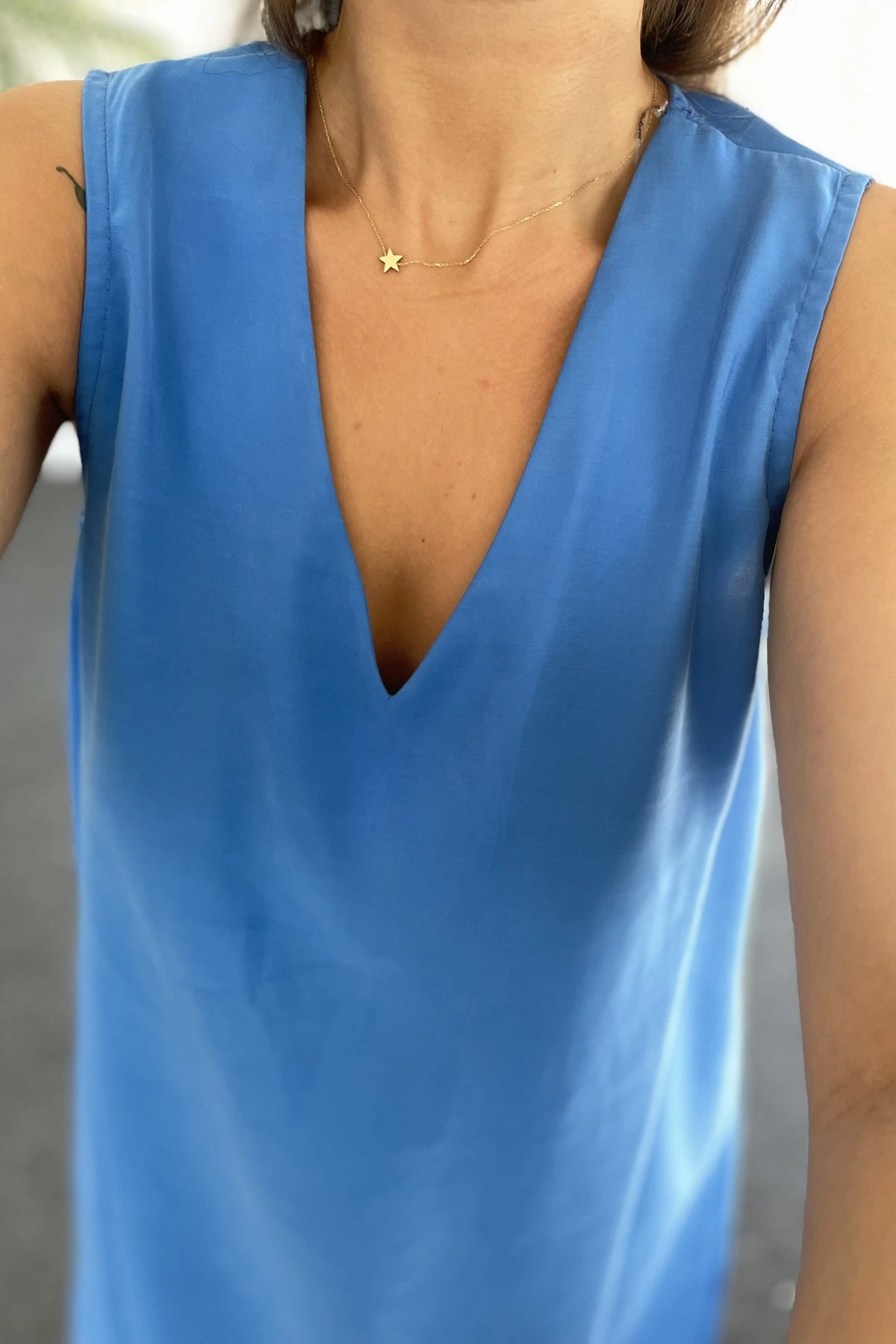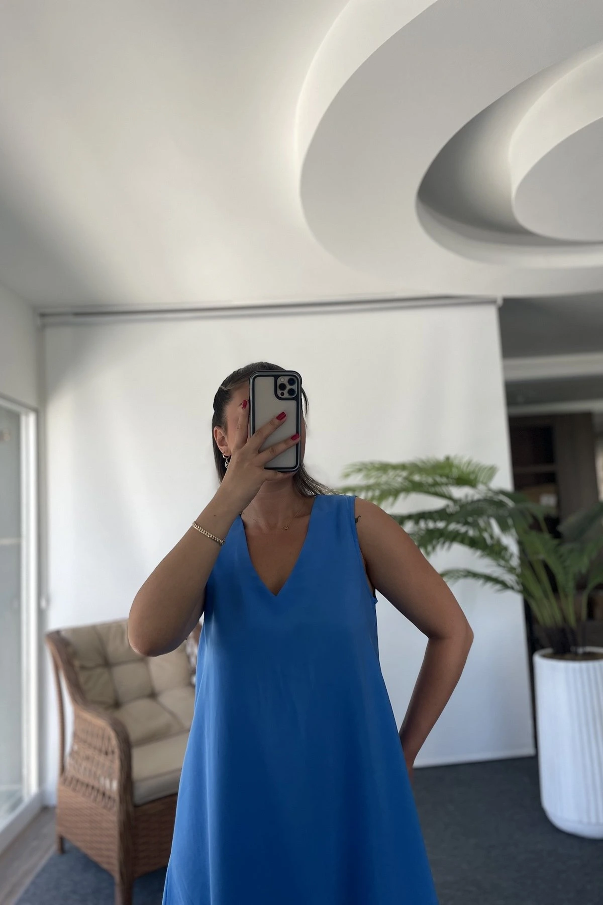 V YAKA JAPONE KOL RAHAT MİDİ ELBİSE – SAKS