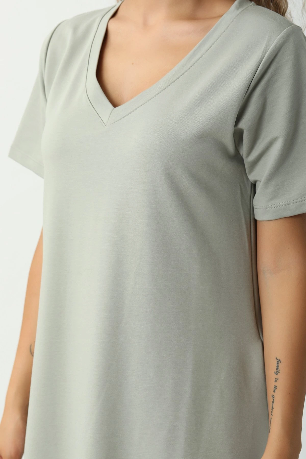 V YAKA PENYE ELBİSE – KÜF YEŞİLİ