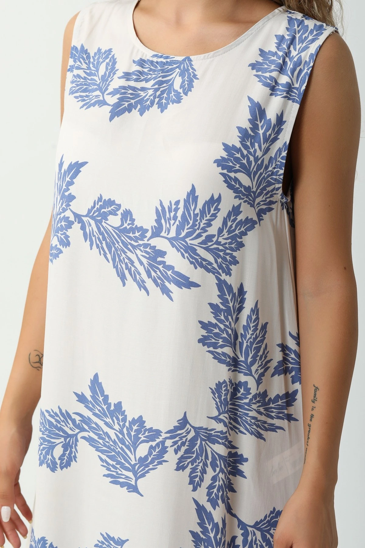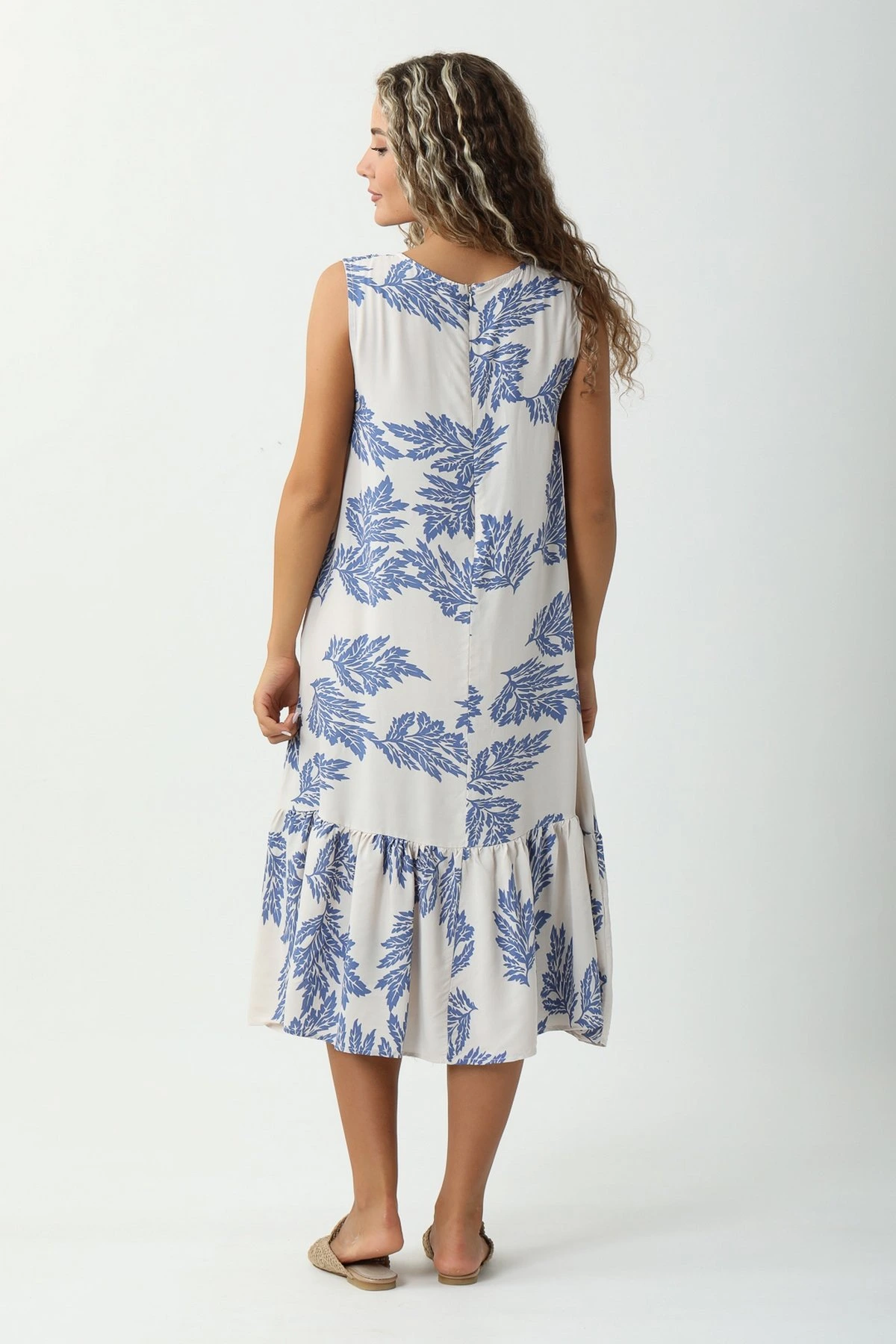 YAPRAK DESEN ELBİSE – İNDİGO