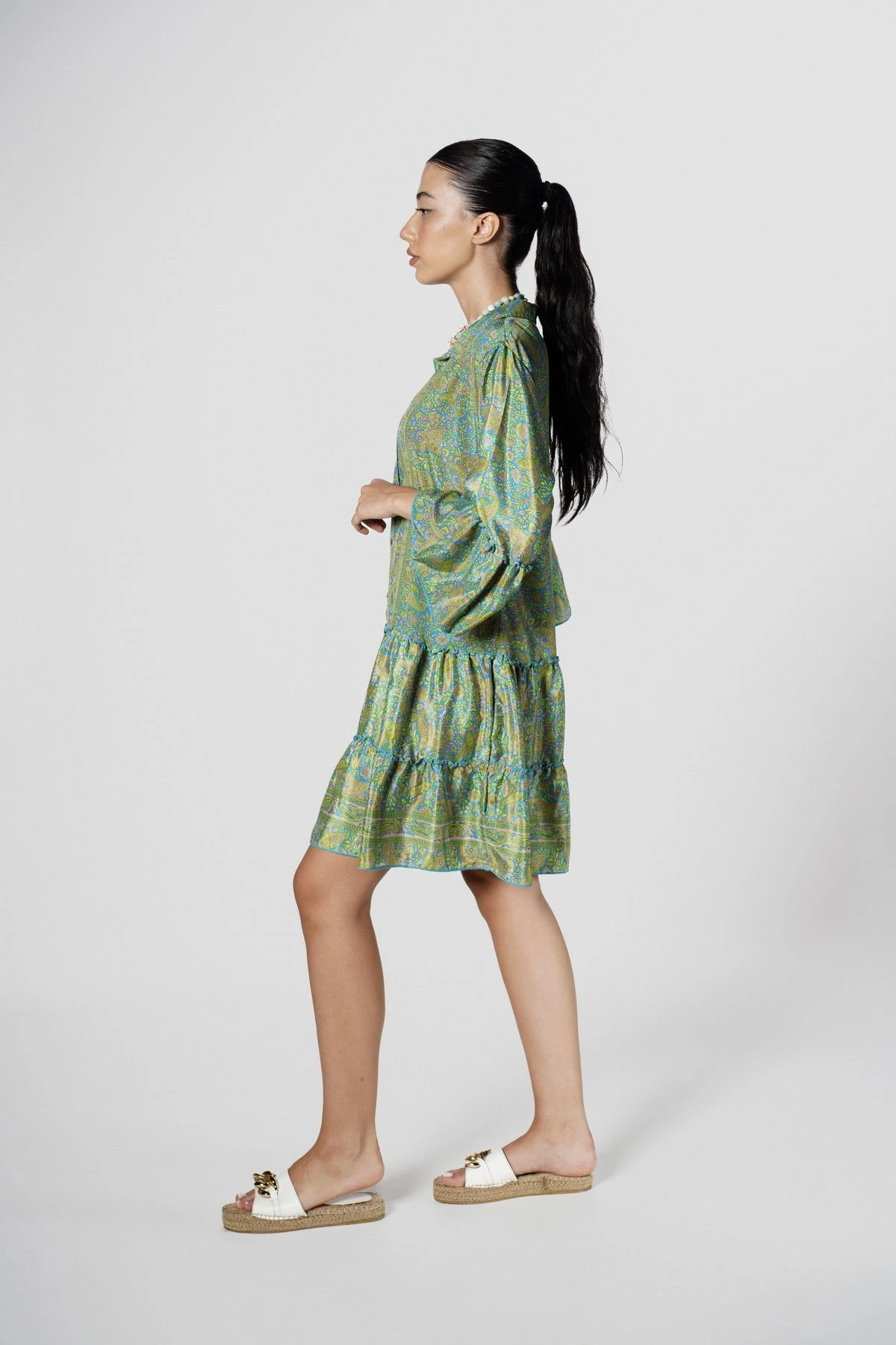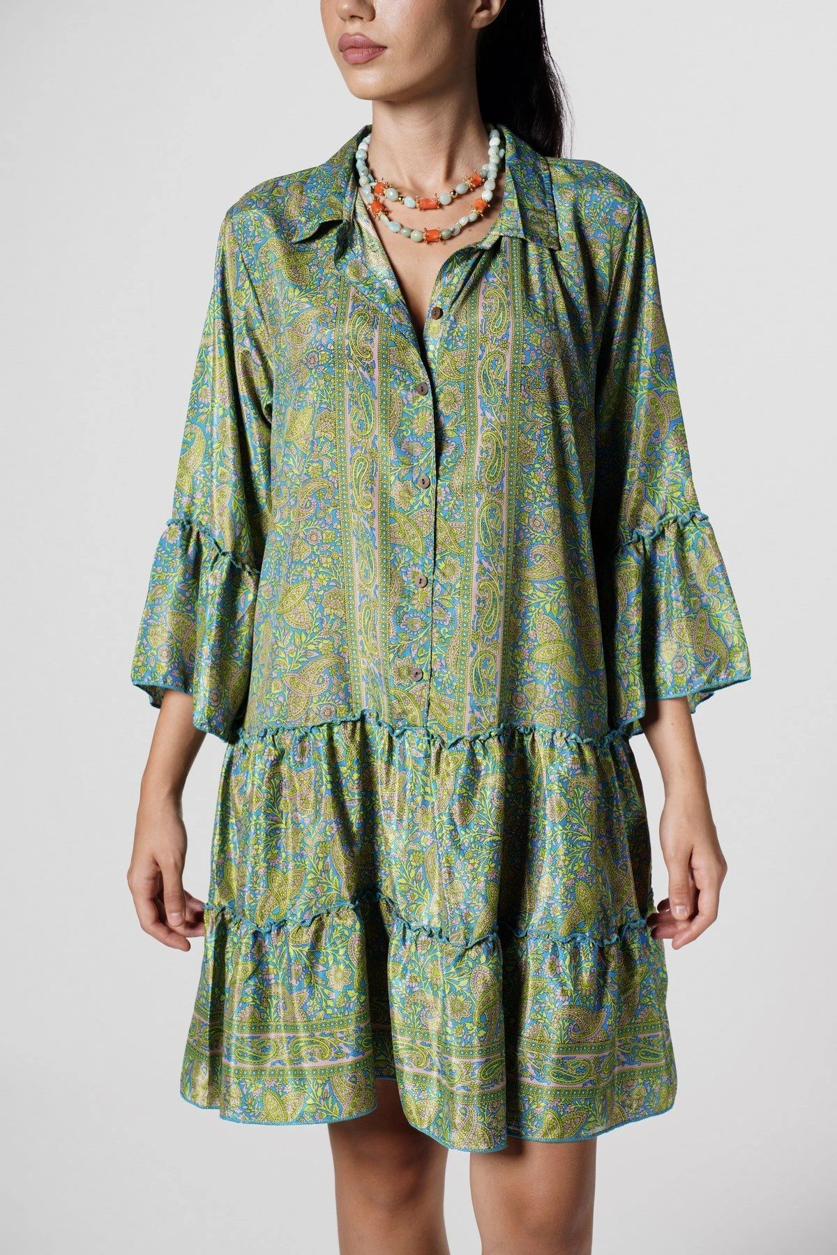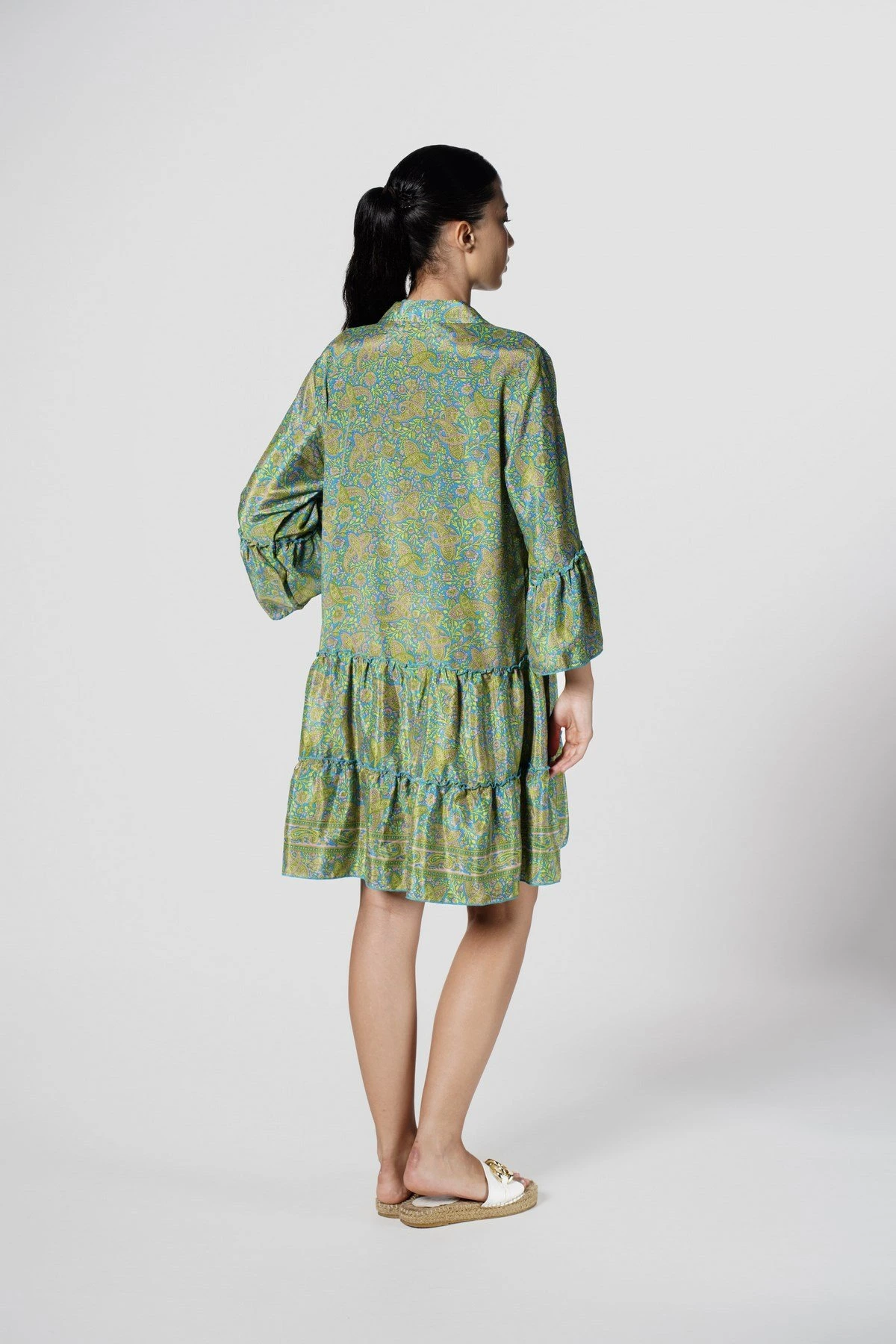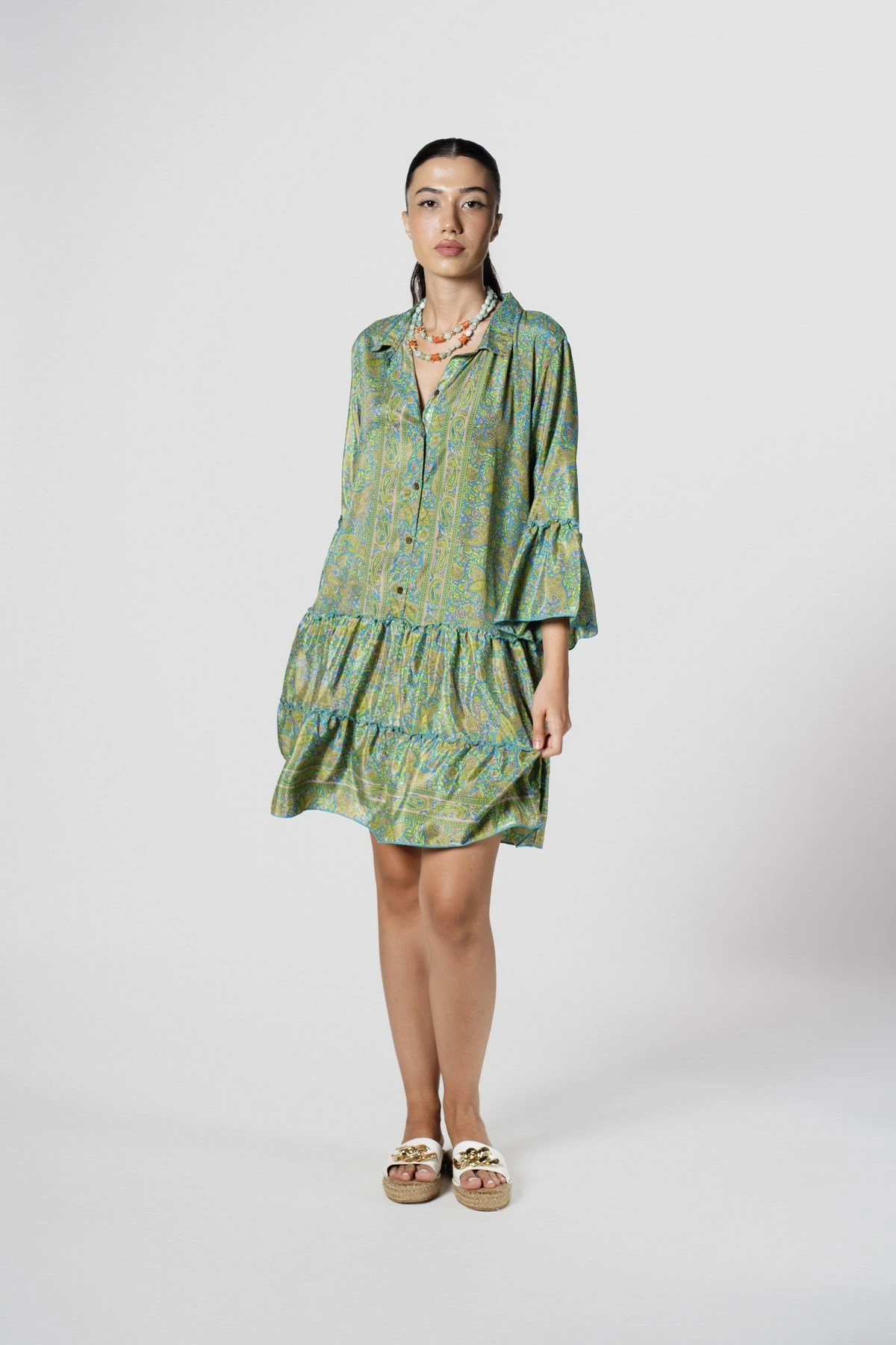 YARI PATLI KOL VE ETEĞİ KATLI RAHAT ELBİSE – YEŞİL