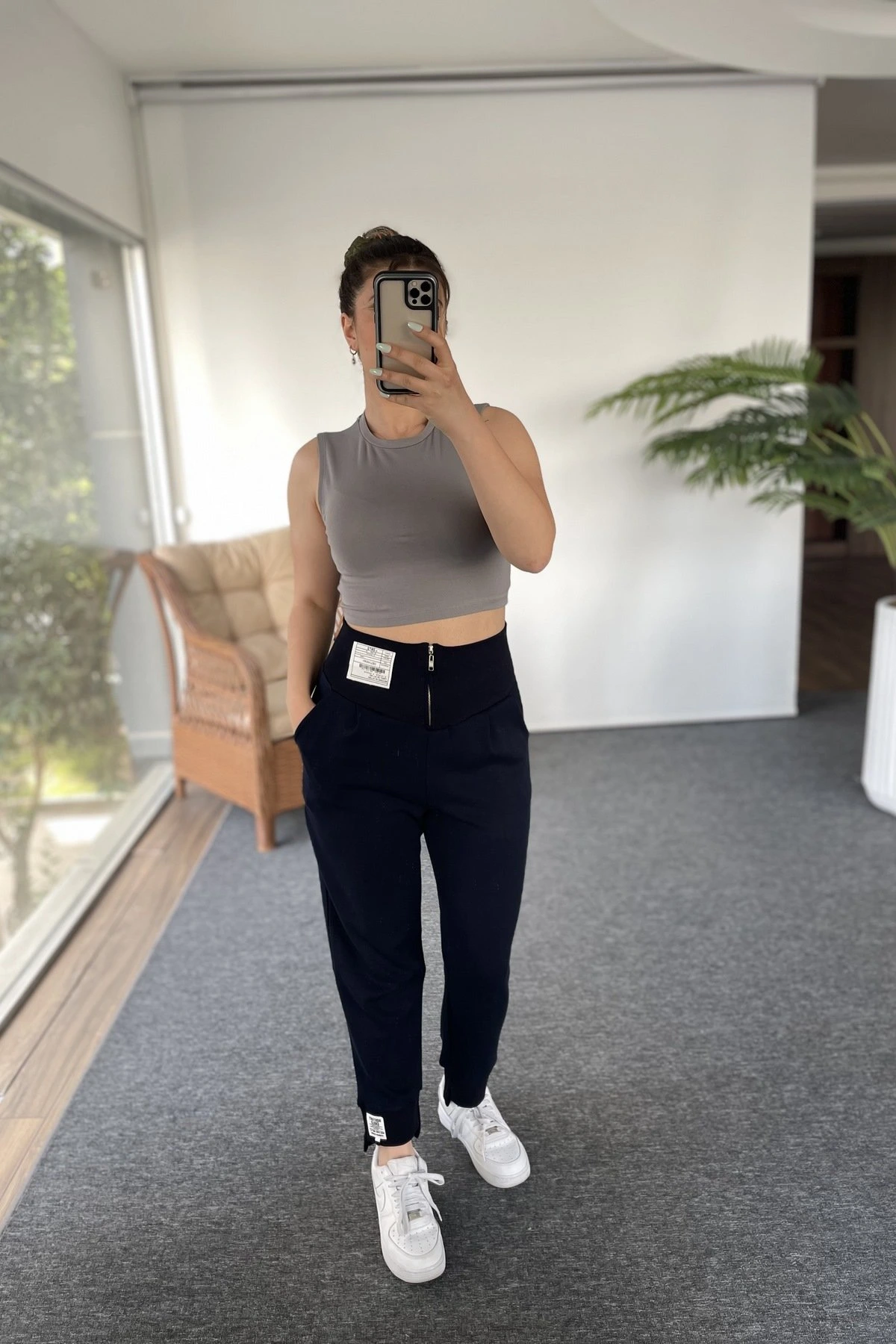 BEL BİLEK ETİKET DETAY FERMUARLI MODAL EŞOFMAN – LACİVERT