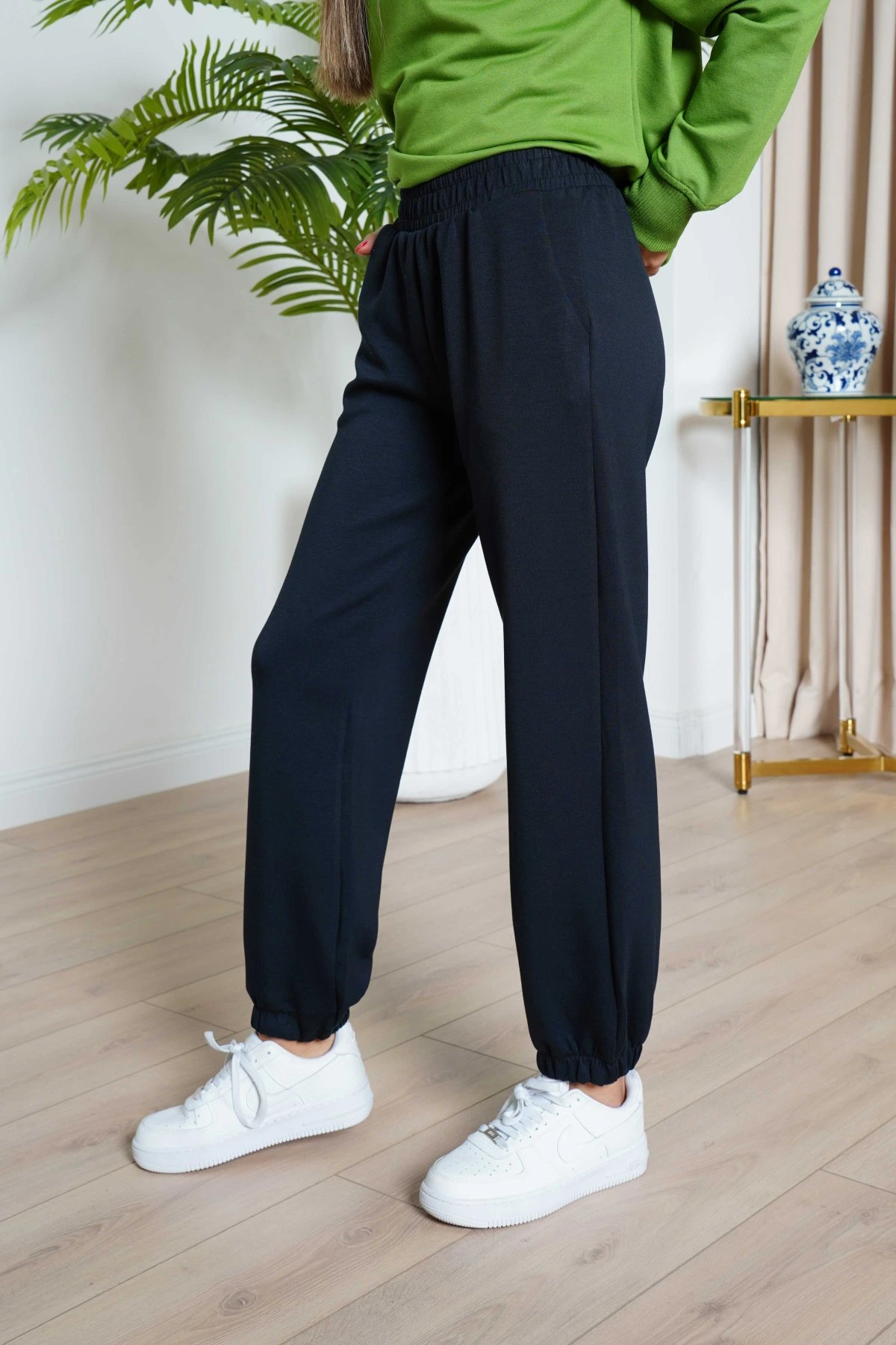 CEPLİ BEL VE BİLEK LASTİKLİ MODAL VİSKON EŞOFMAN – SİYAH