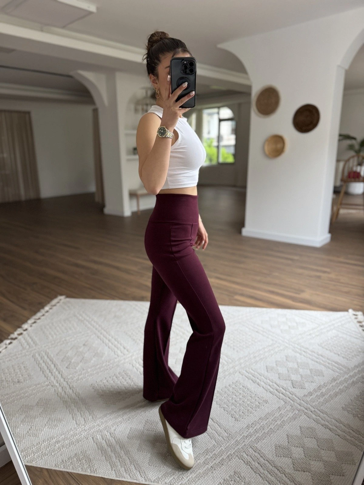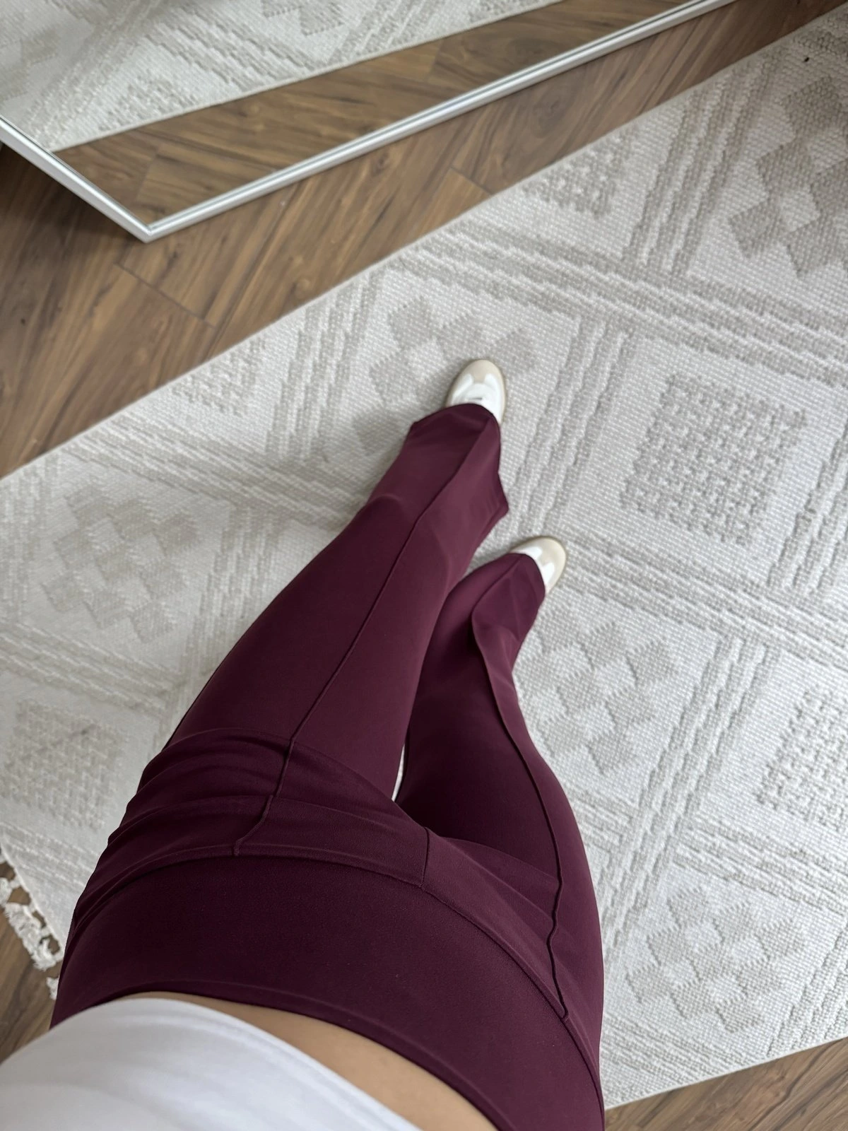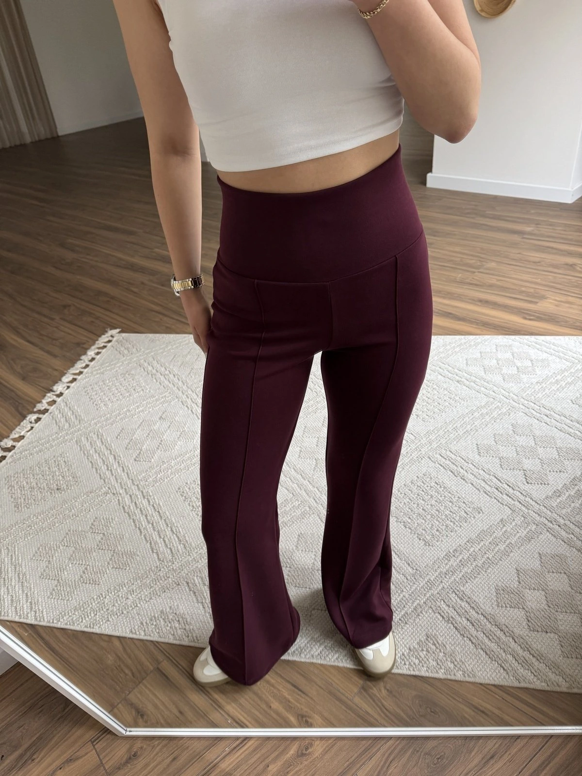 GENİŞ KEMER ÖN DİKİŞ VİSKON FLARE EŞOFMAN – BORDO