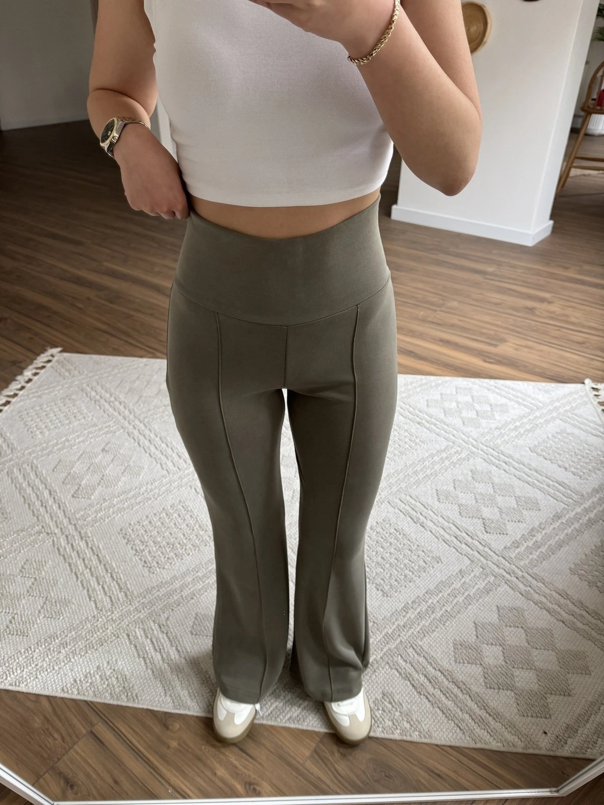 GENİŞ KEMER ÖN DİKİŞ VİSKON FLARE EŞOFMAN – HAKİ