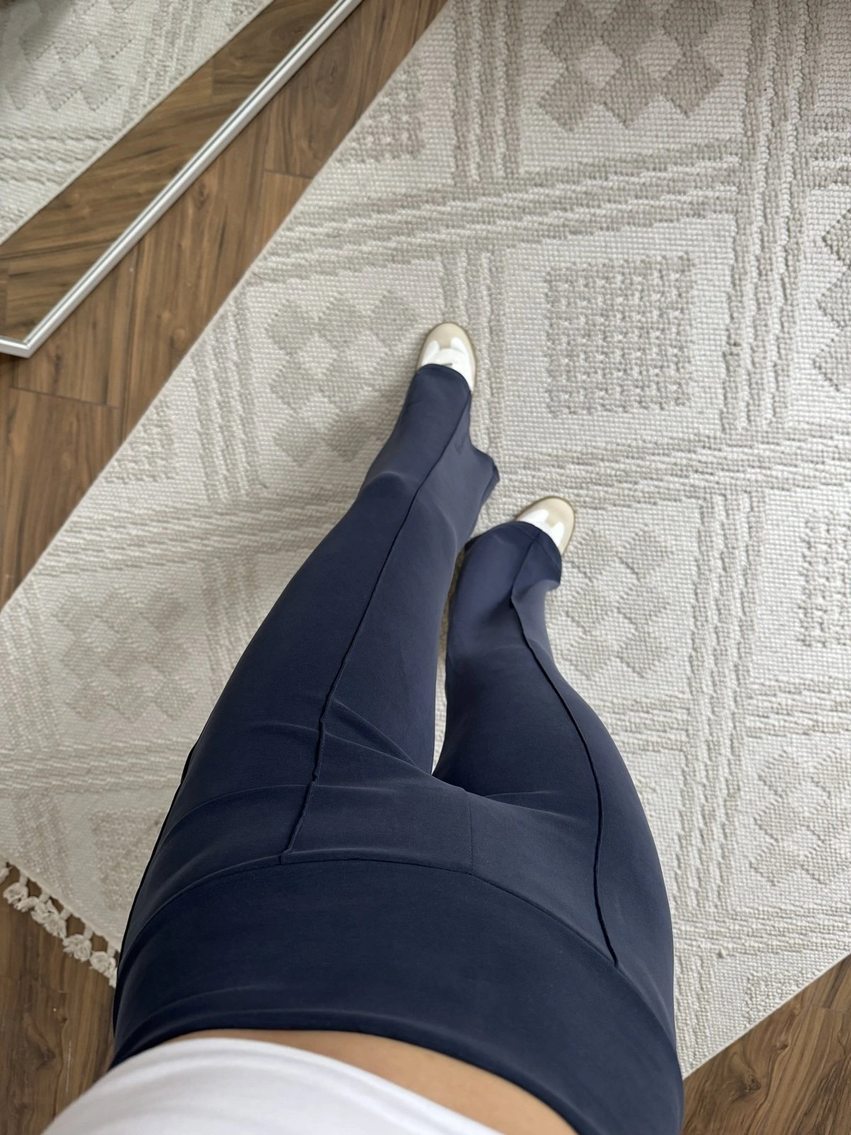 GENİŞ KEMER ÖN DİKİŞ VİSKON FLARE EŞOFMAN – LACİVERT