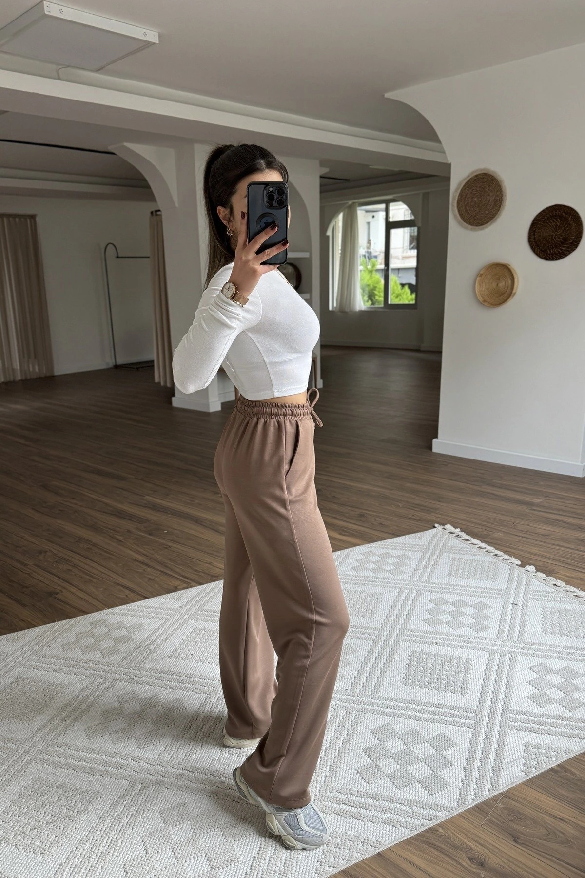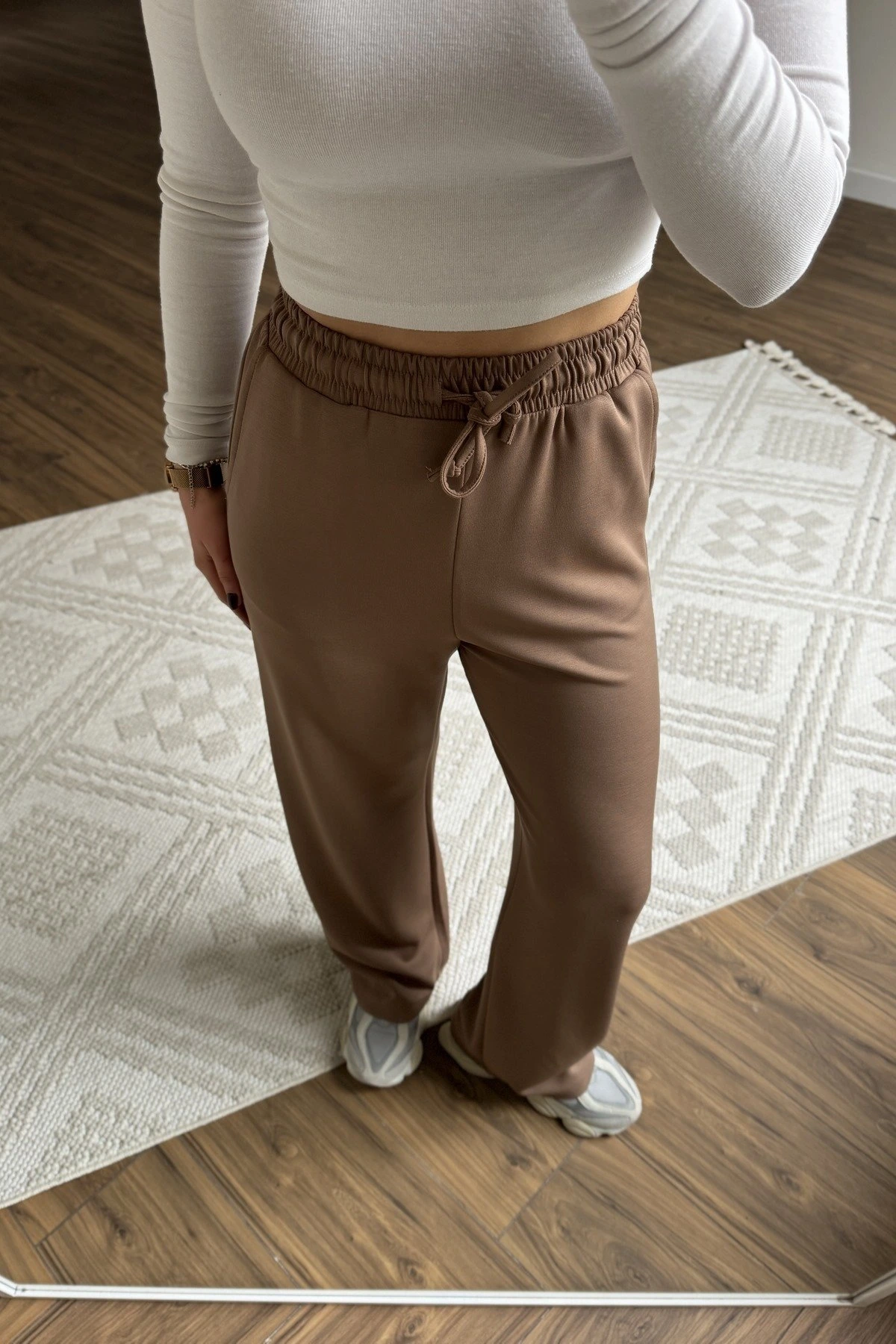 MODAL KUMAŞ CEPLİ BOL PAÇA EŞOFMAN – KAHVE