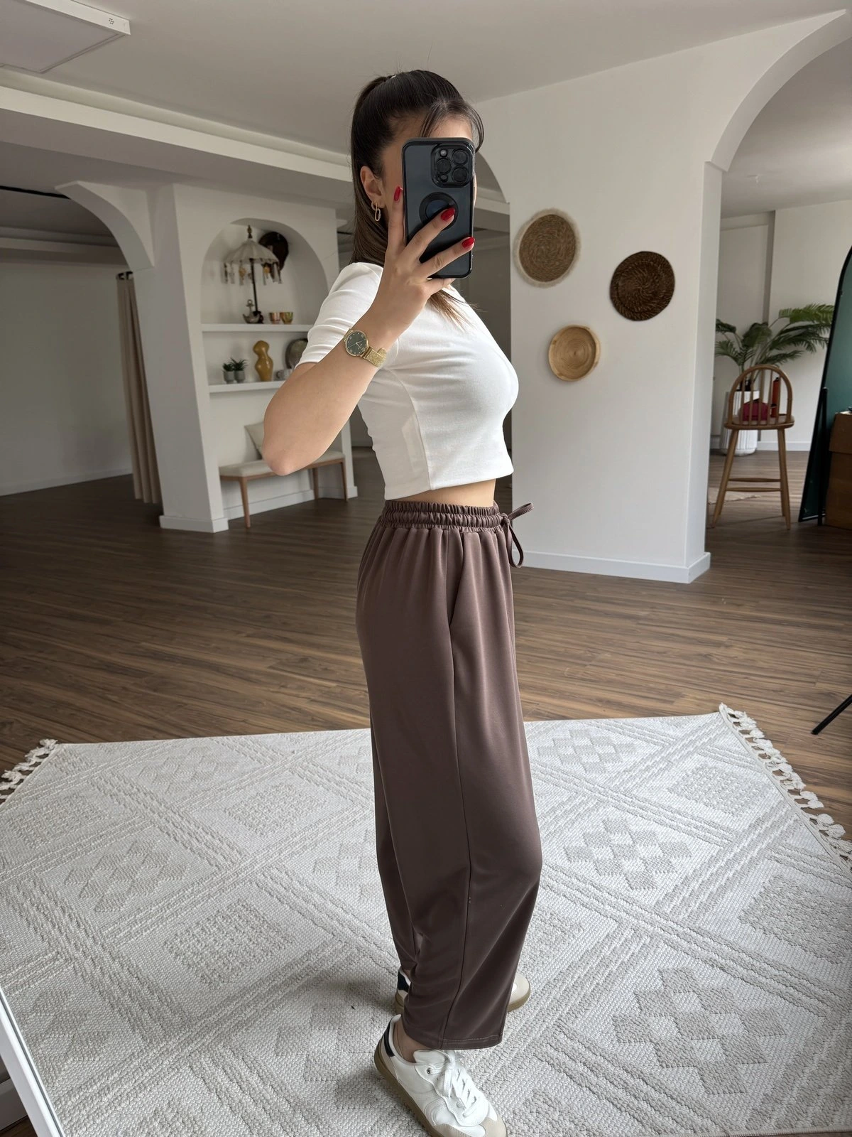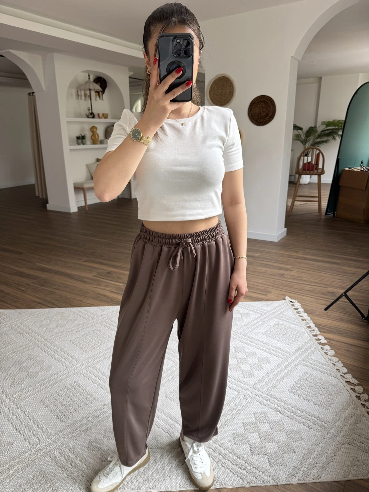 ÖN DİKİŞ BEL LASTİK BALON MODEL İNCE MODAL EŞOFMAN – KAHVE