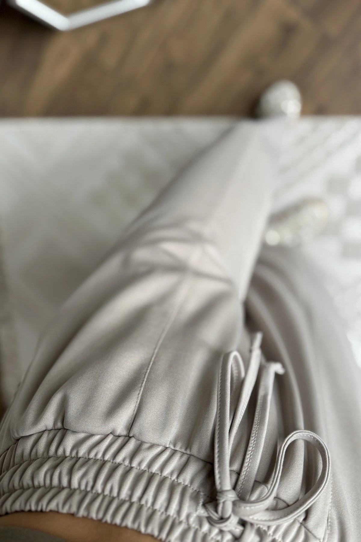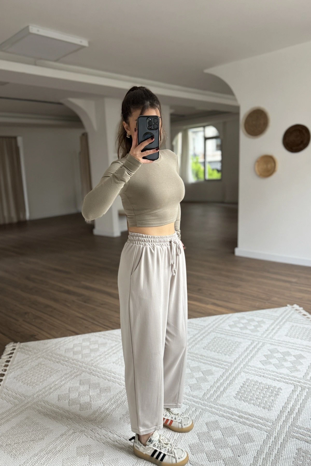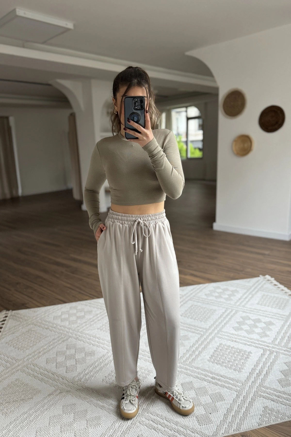 ÖN DİKİŞ BEL LASTİK BALON MODEL İNCE MODAL EŞOFMAN – TAŞ