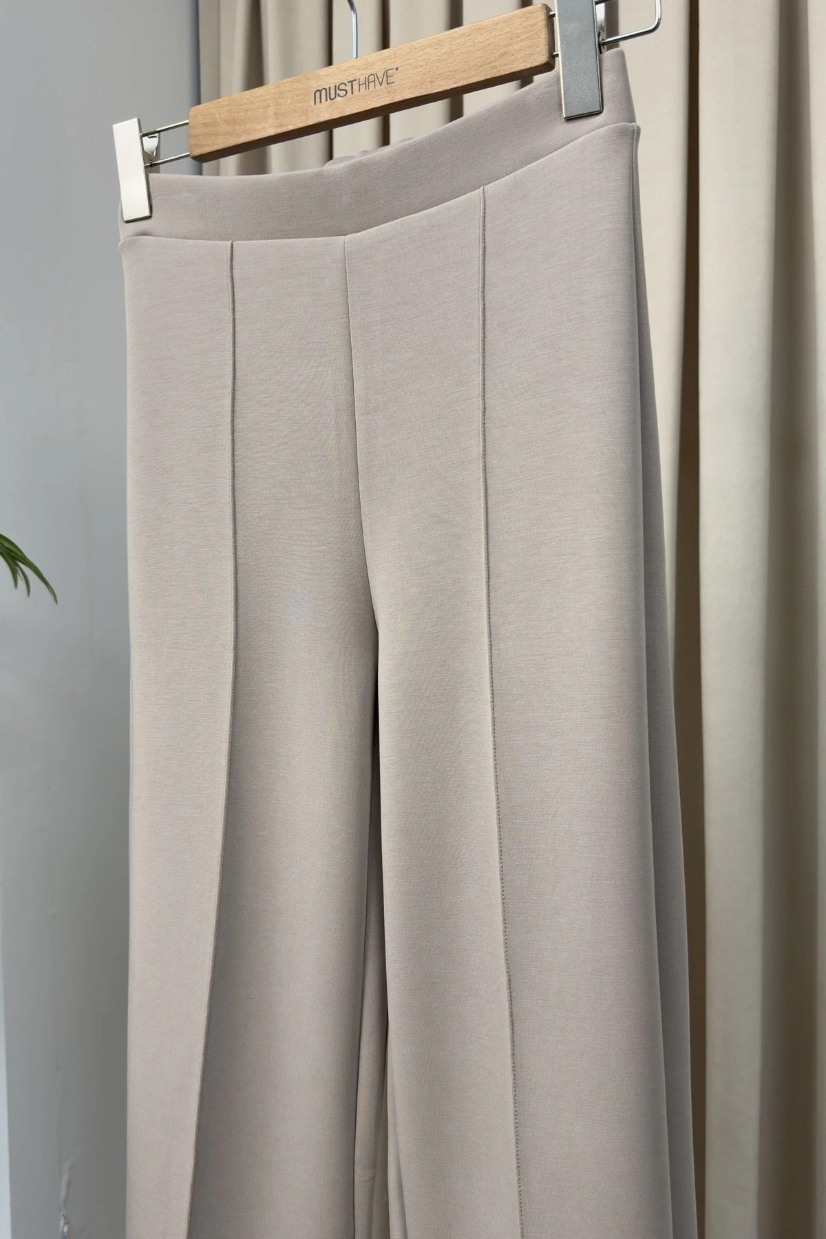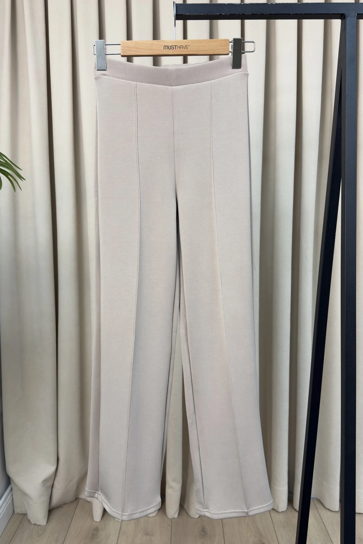 YÜKSEK BEL DESENLİ KESİK PAÇA PALAZZO JEAN - EKRU LEOPAR