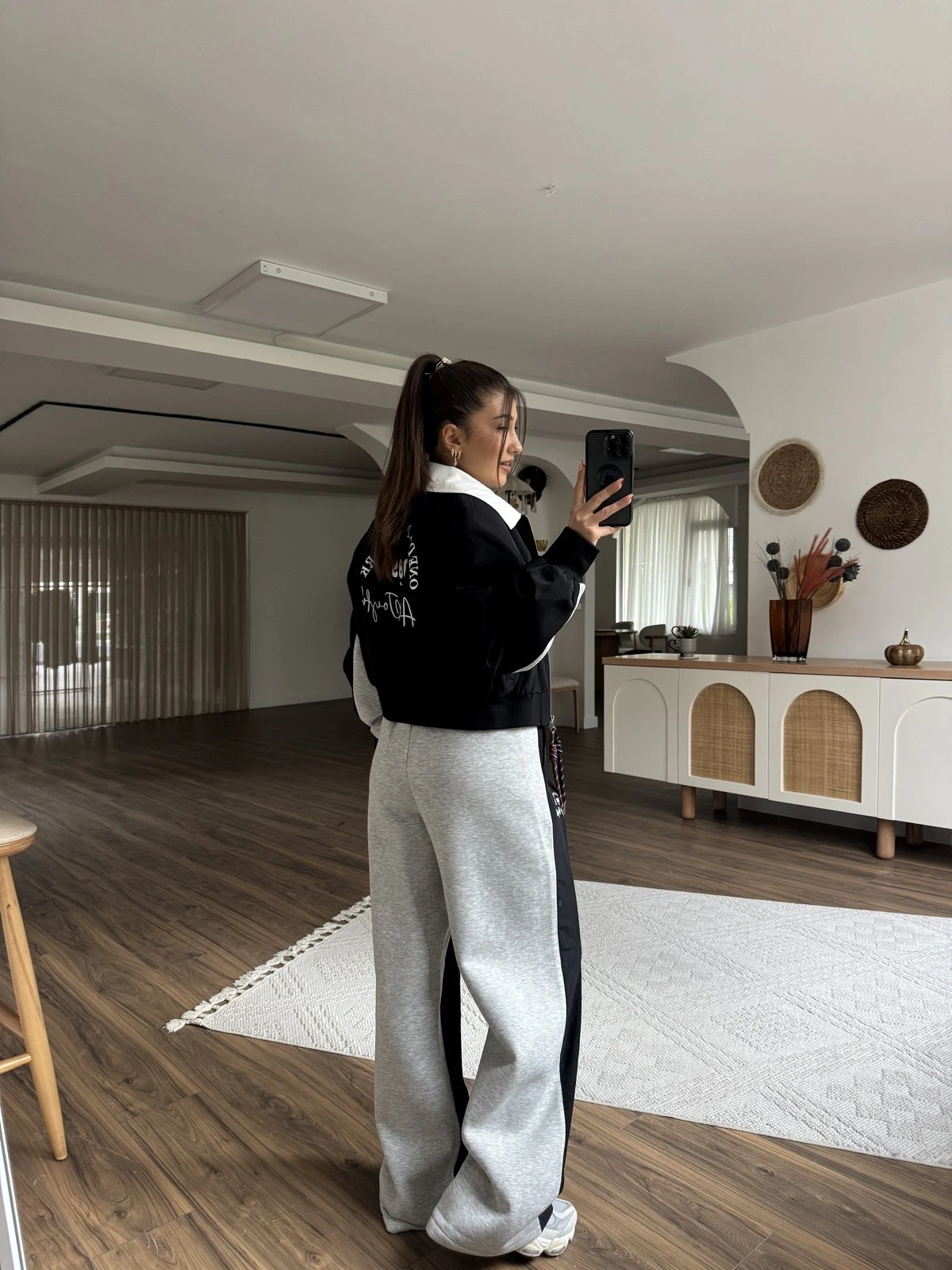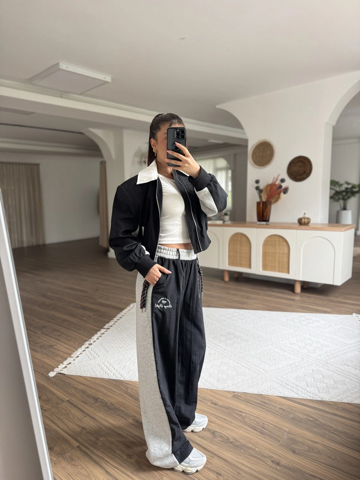 ÖN PARAŞÜT KUMAŞ AKSESUARLI EŞOFMAN – SİYAH