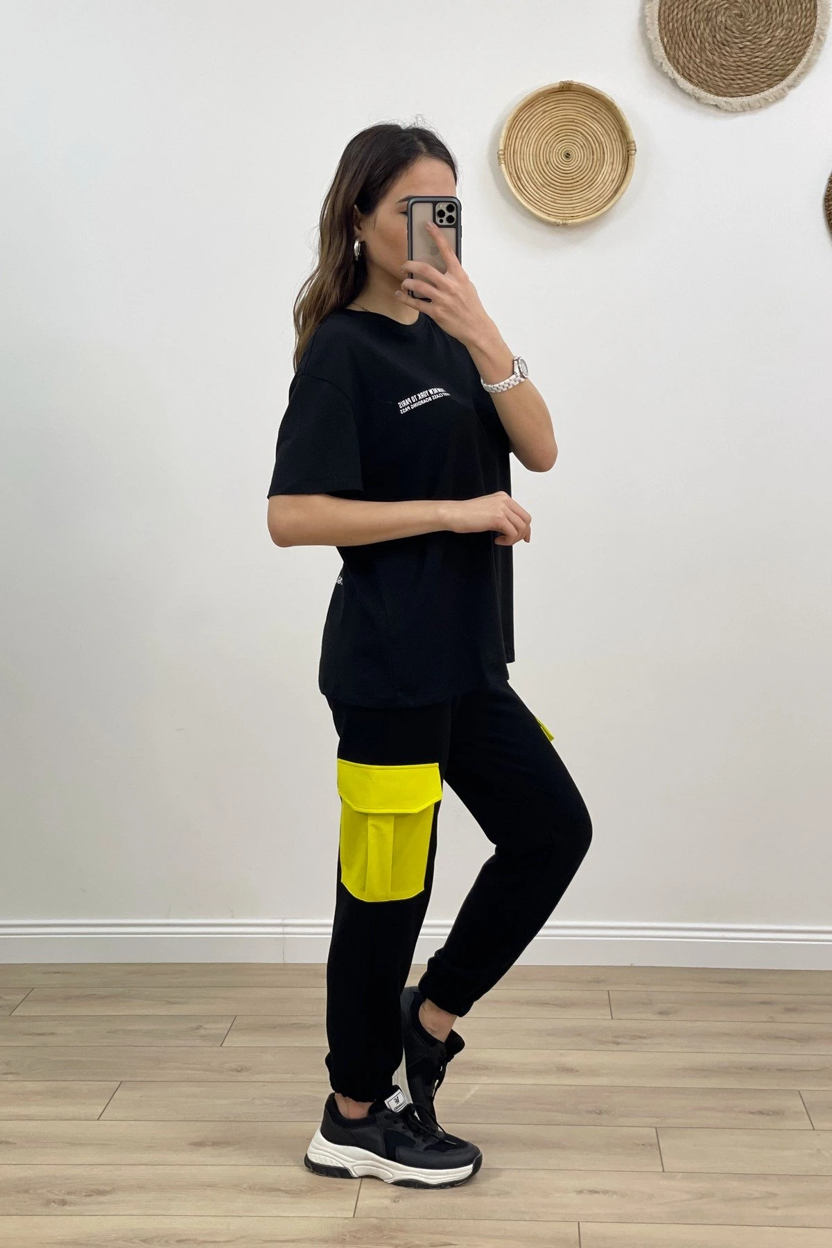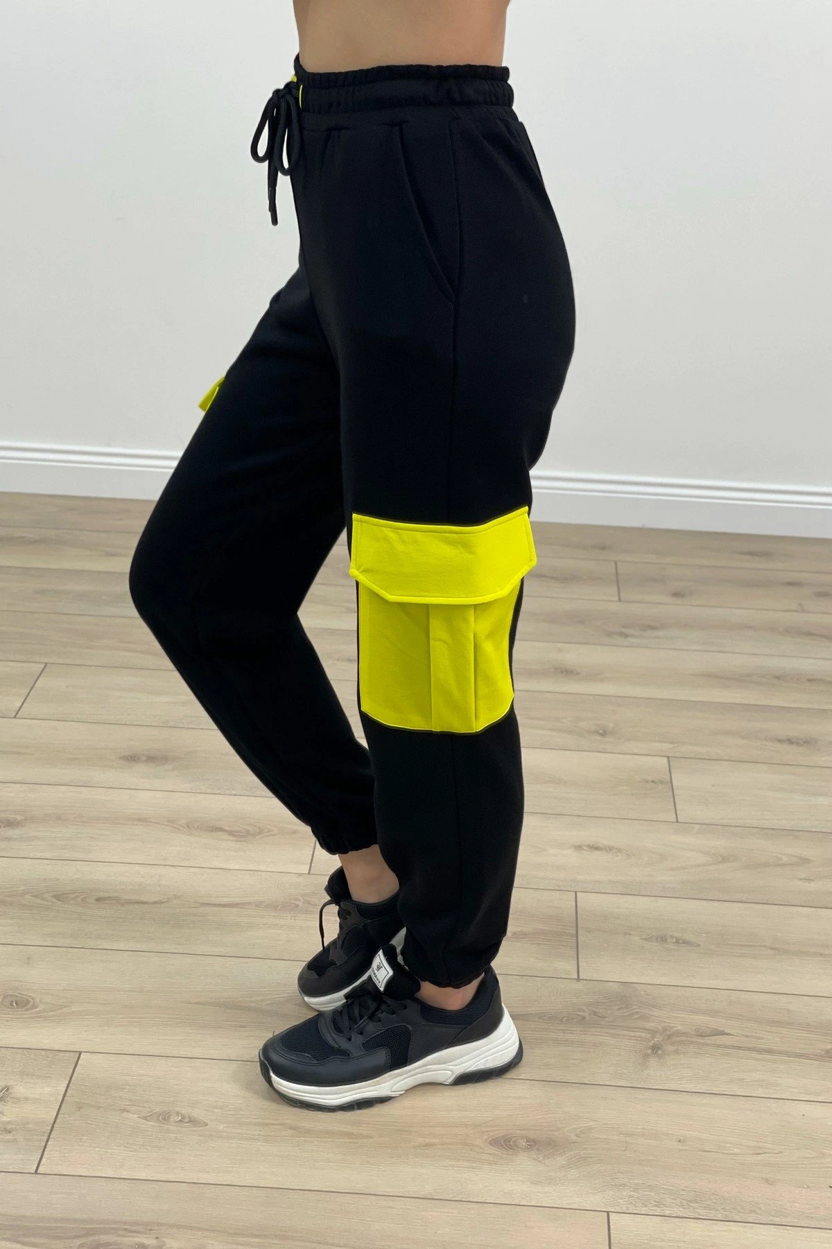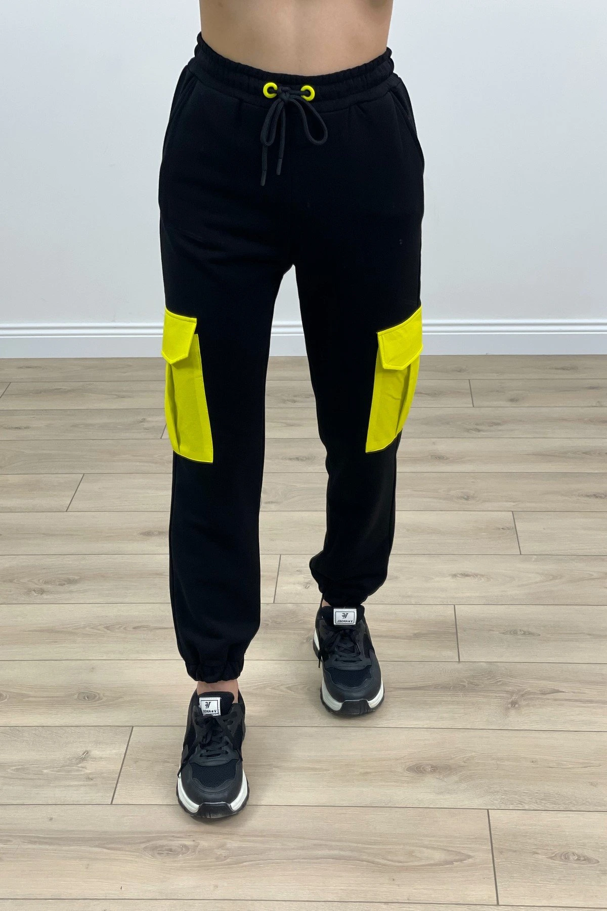 RENKLİ KARGO CEP BEL BİLEK LASTİK EŞOFMAN – SİYAH