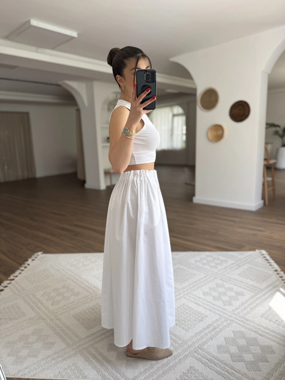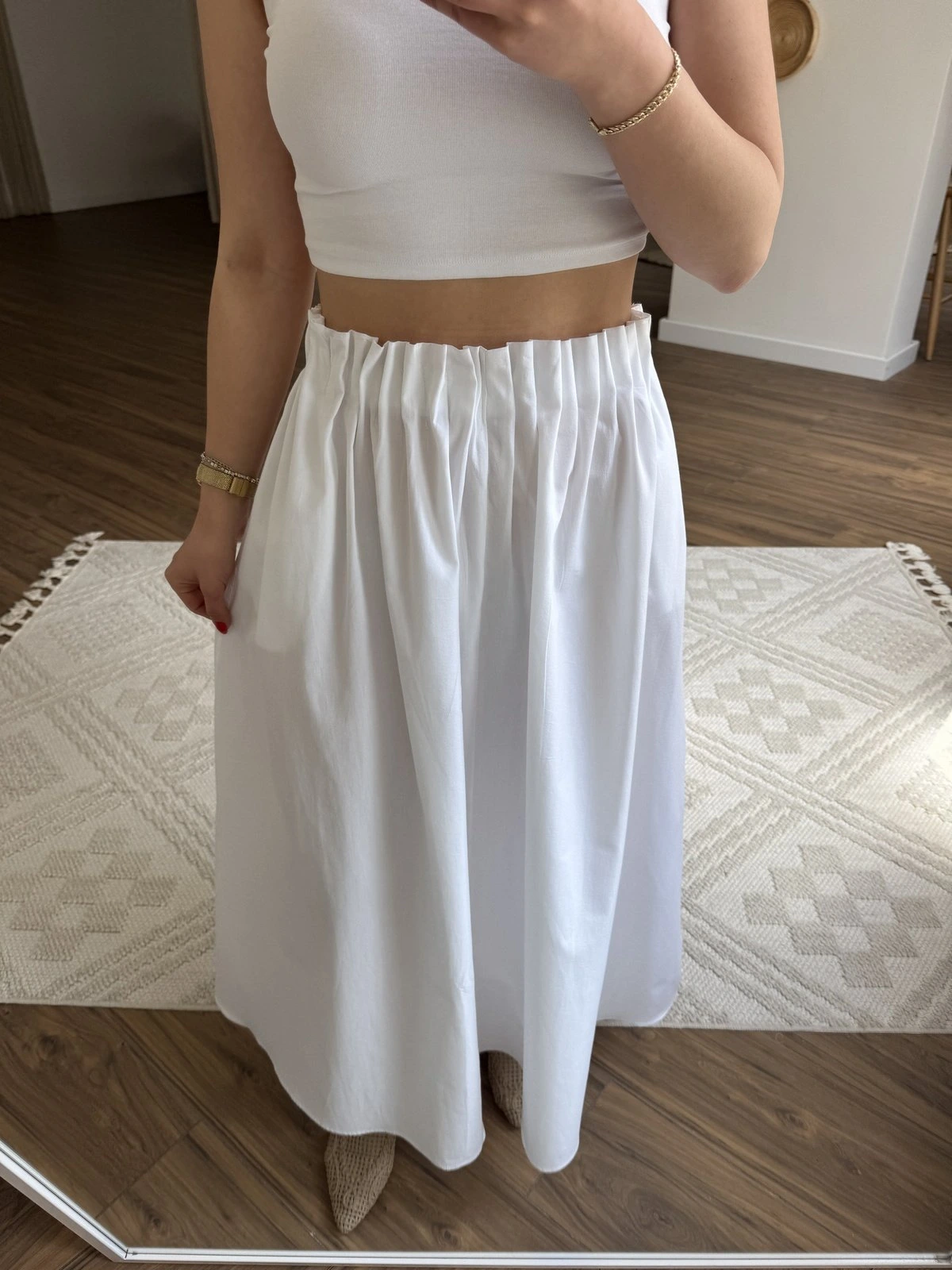 BEL FIRFIR LASTİK CEPLİ PAMUK UZUN ETEK – BEYAZ