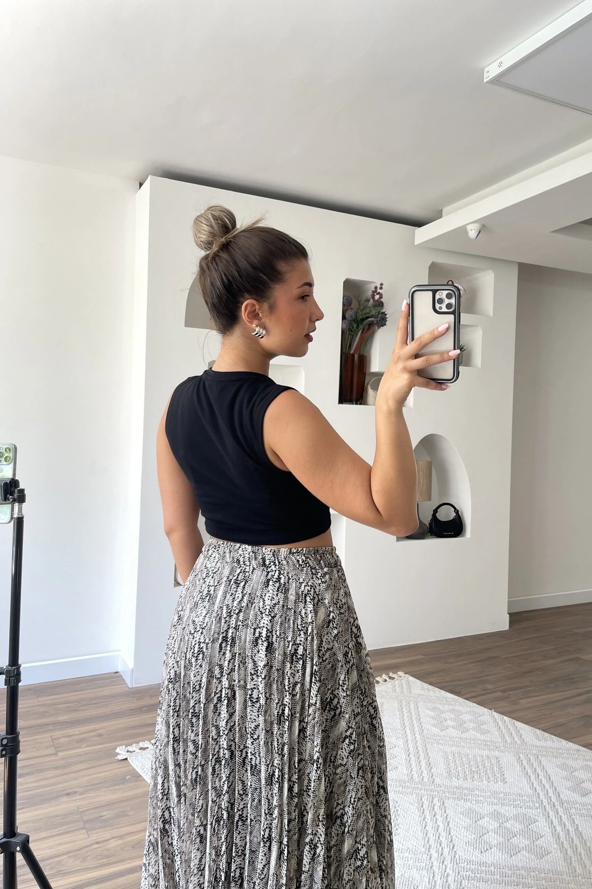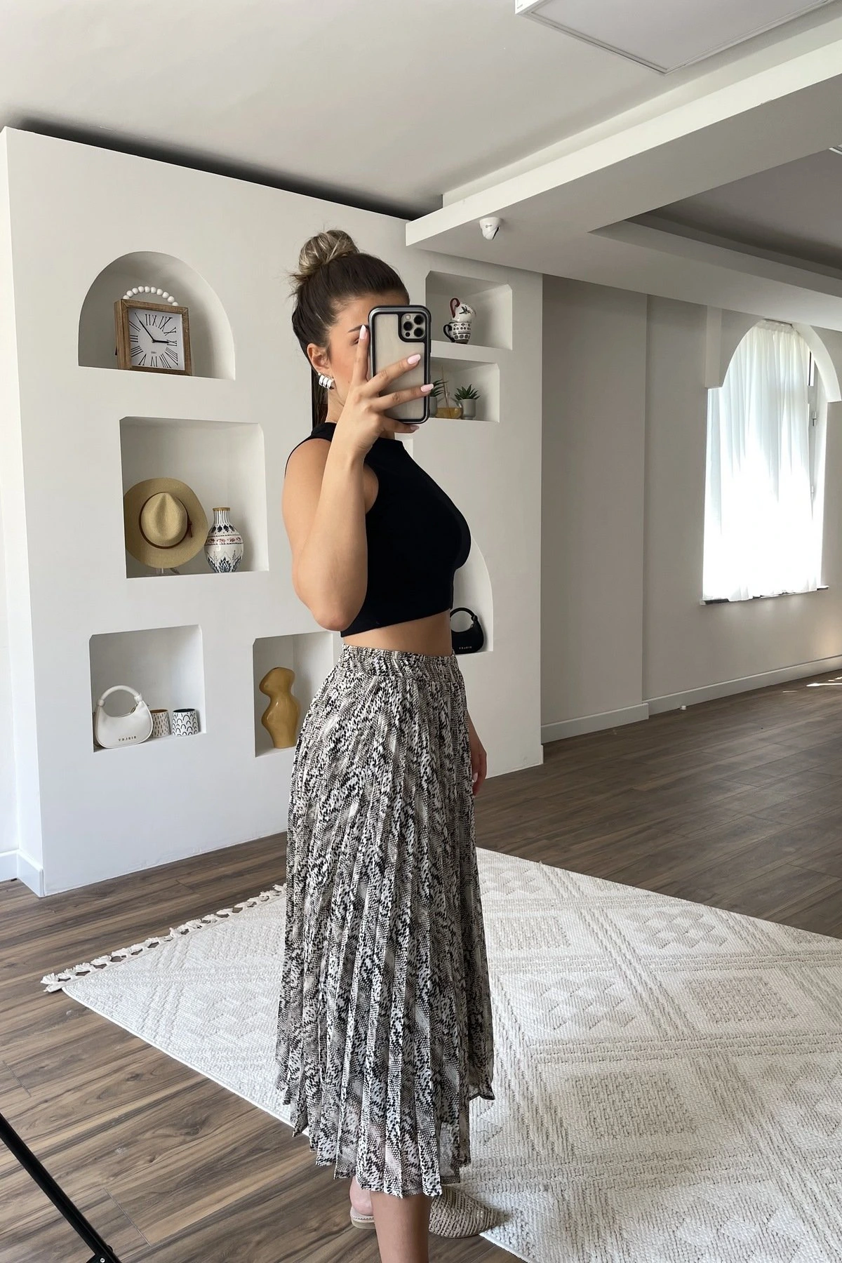 BEL LASTİK ASTARLI PİLİLİ MİDİ ETEK – KAHVE LEOPAR