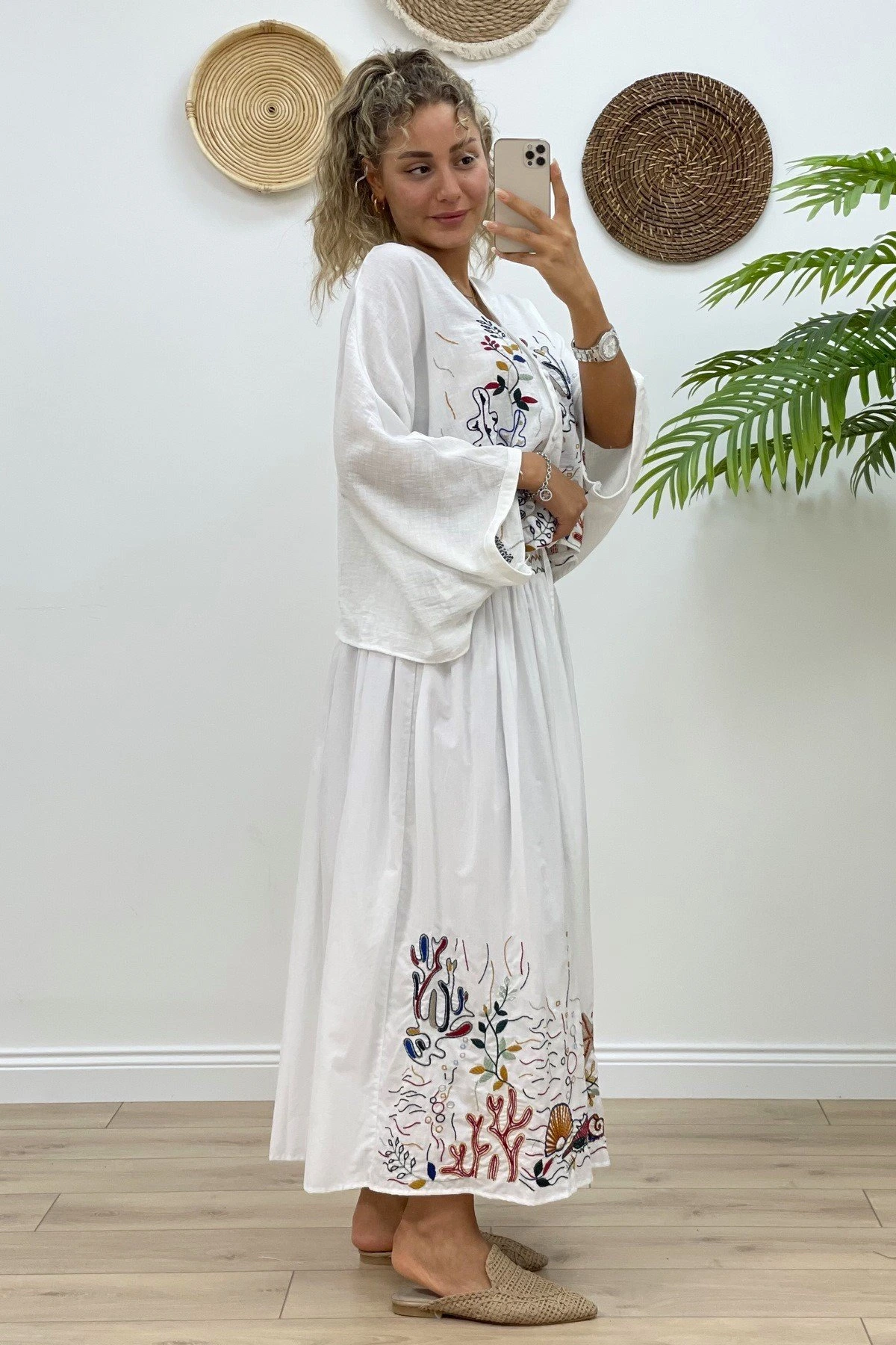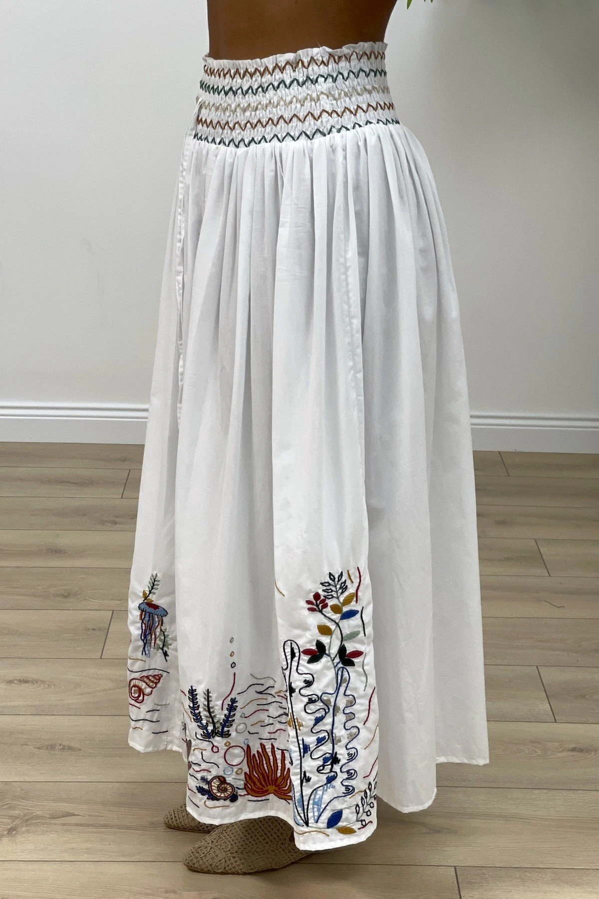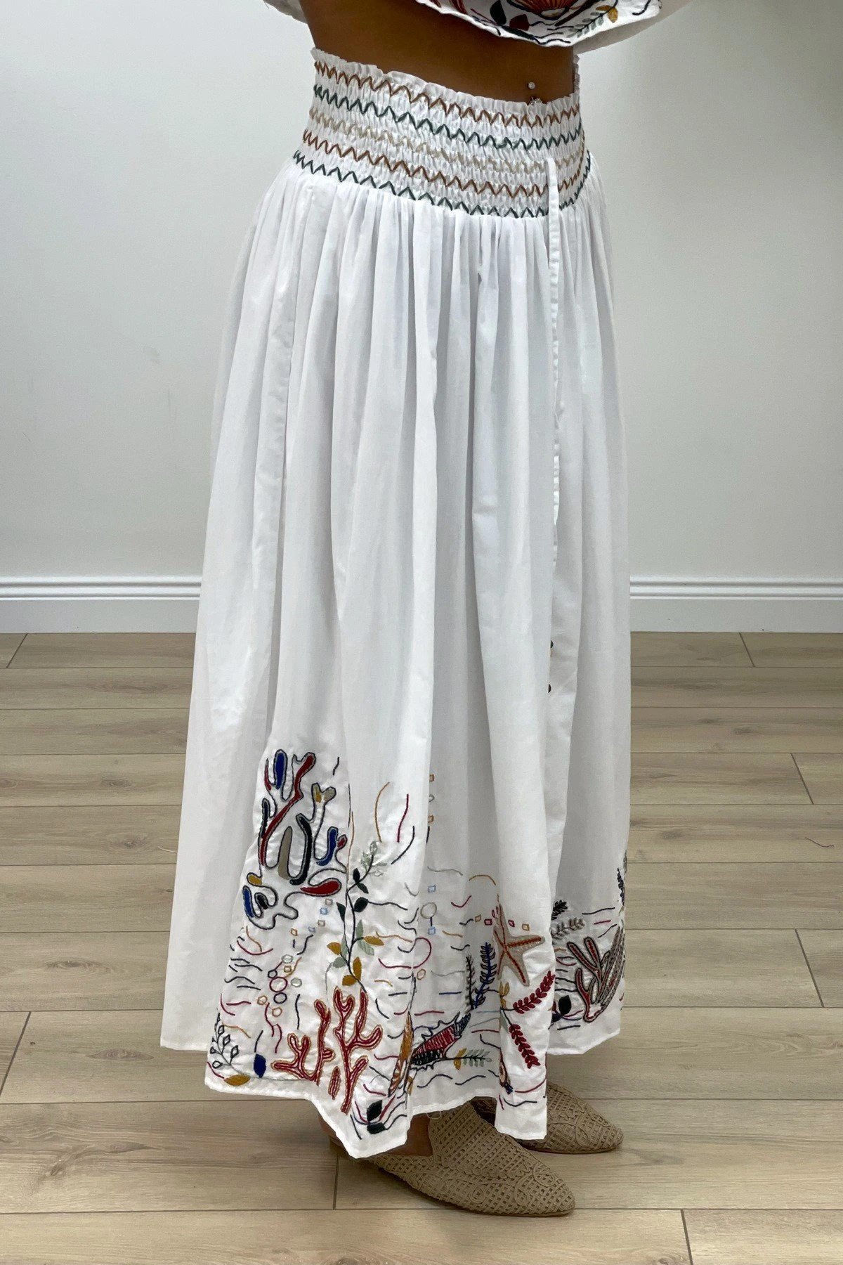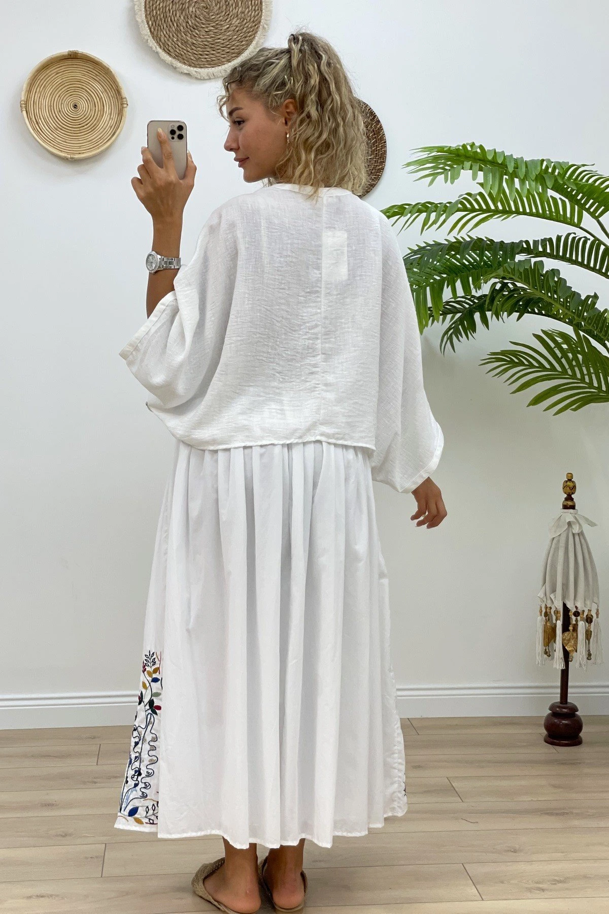 BEL LASTİK ETEK UCU NAKIŞLI PAMUK ETEK – BEYAZ