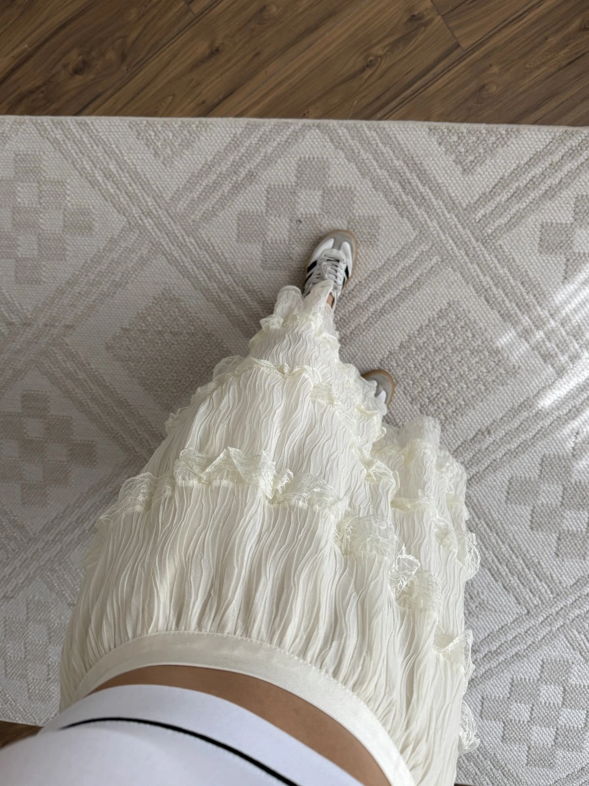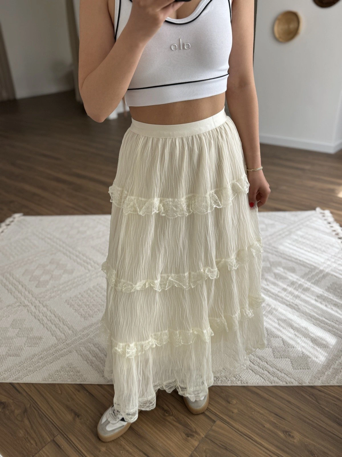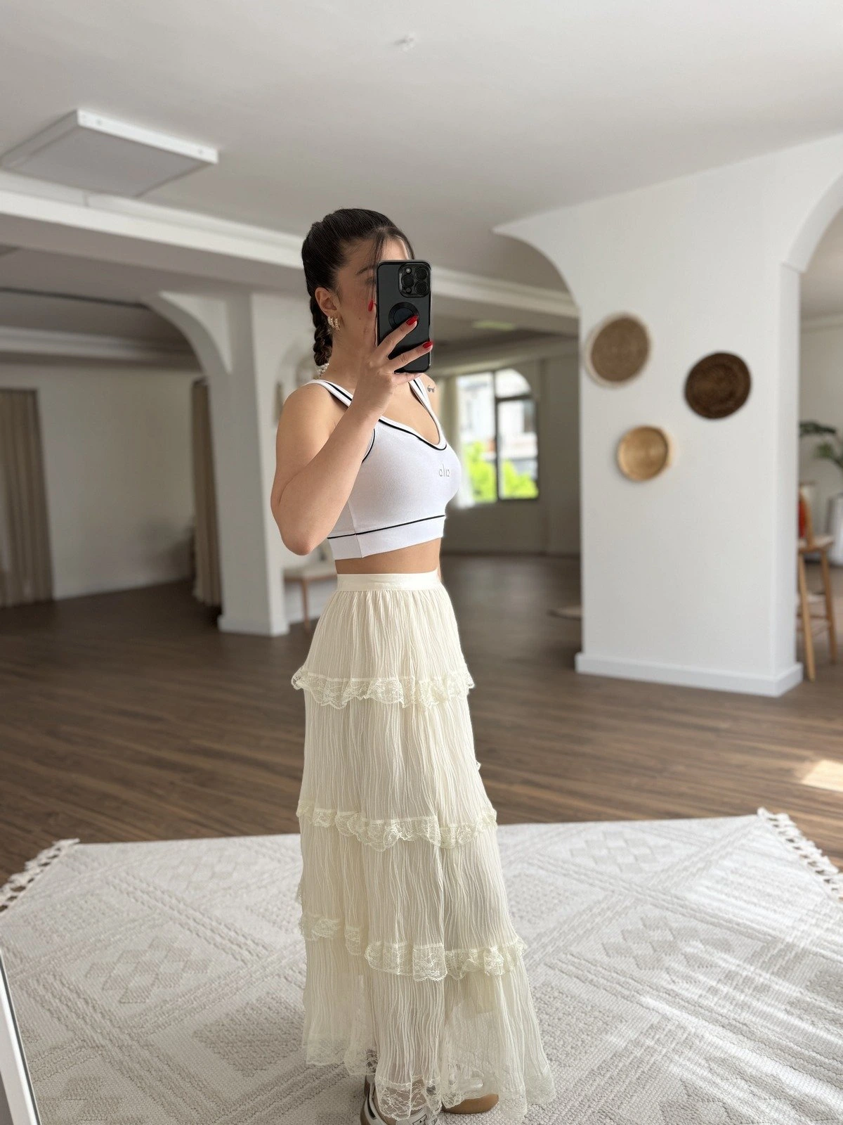 BEL LASTİK GÜPÜR FIRFIR DETAY ASTARLI TÜL ETEK – KREM