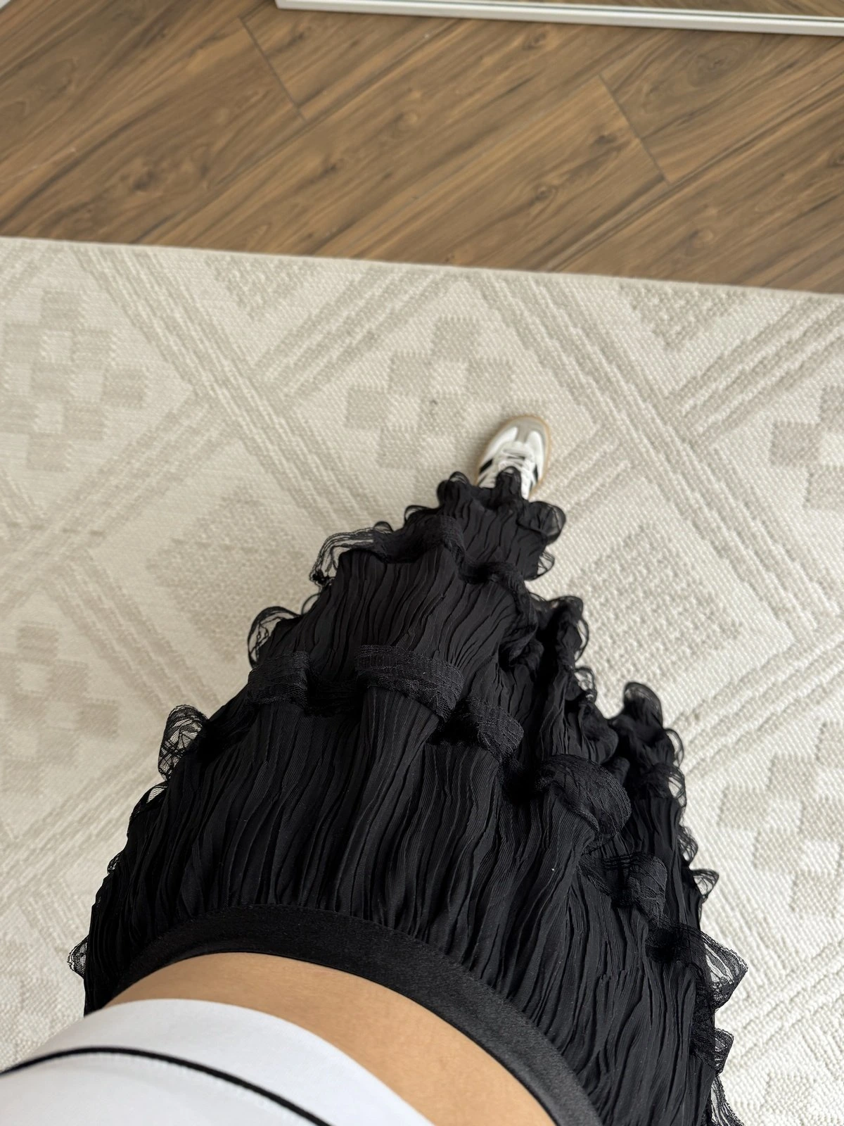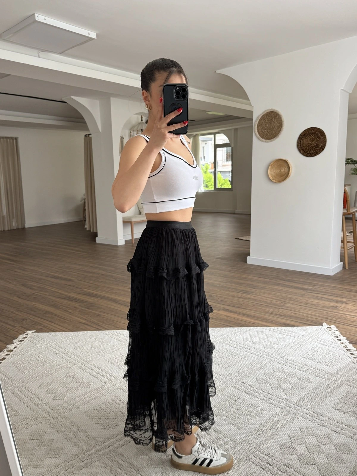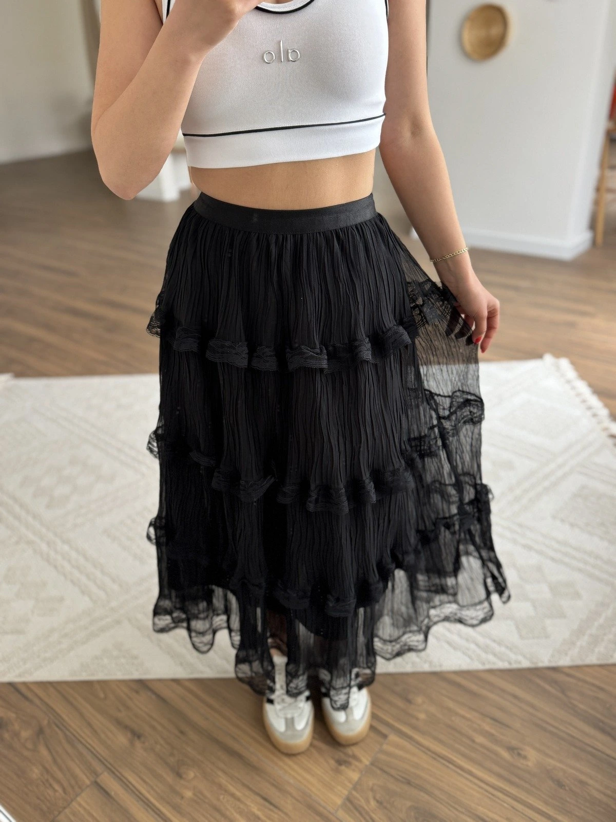 BEL LASTİK GÜPÜR FIRFIR DETAY ASTARLI TÜL ETEK – SİYAH