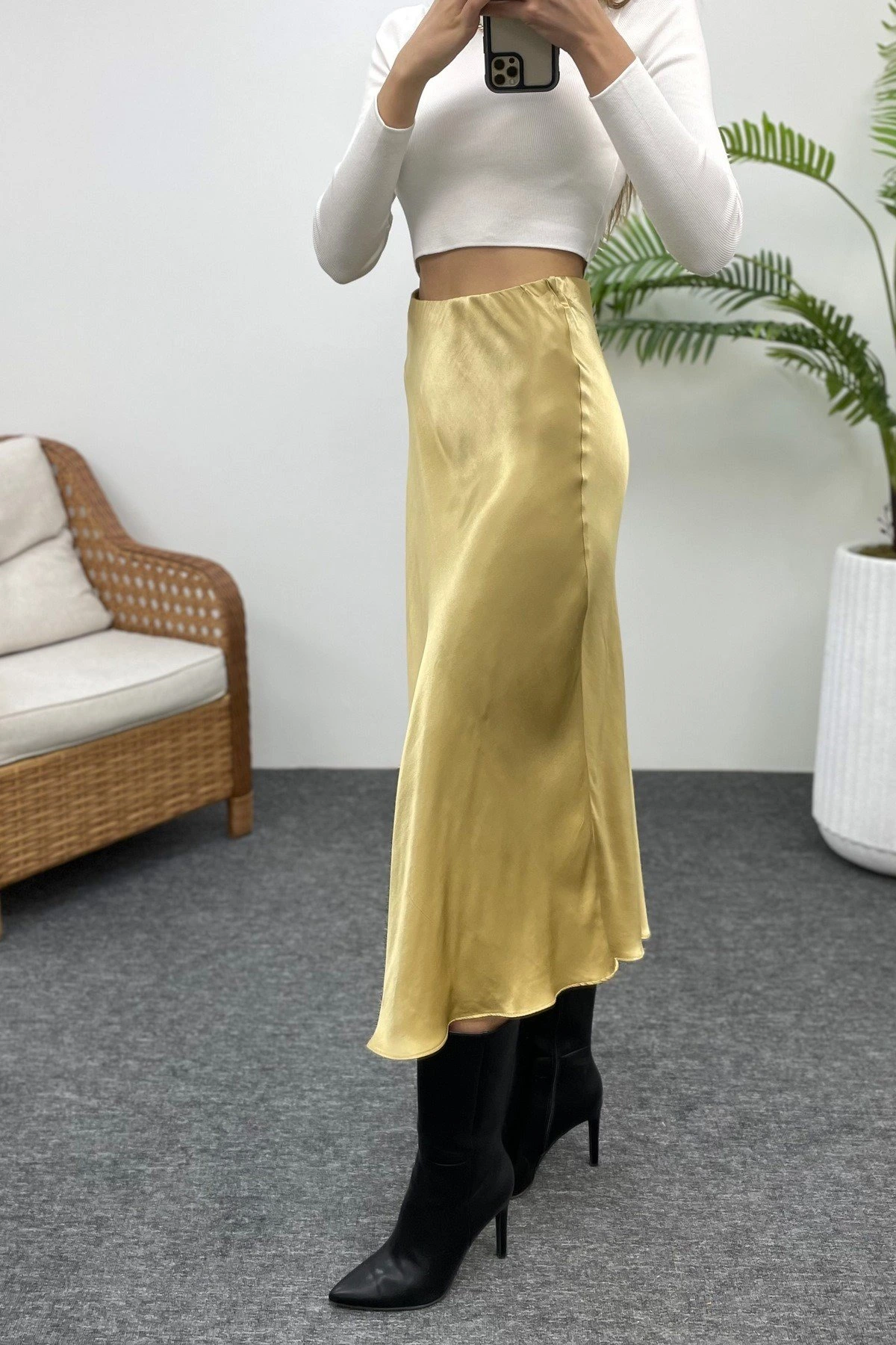 BEL LASTİKLİ SATEN ETEK – GOLD
