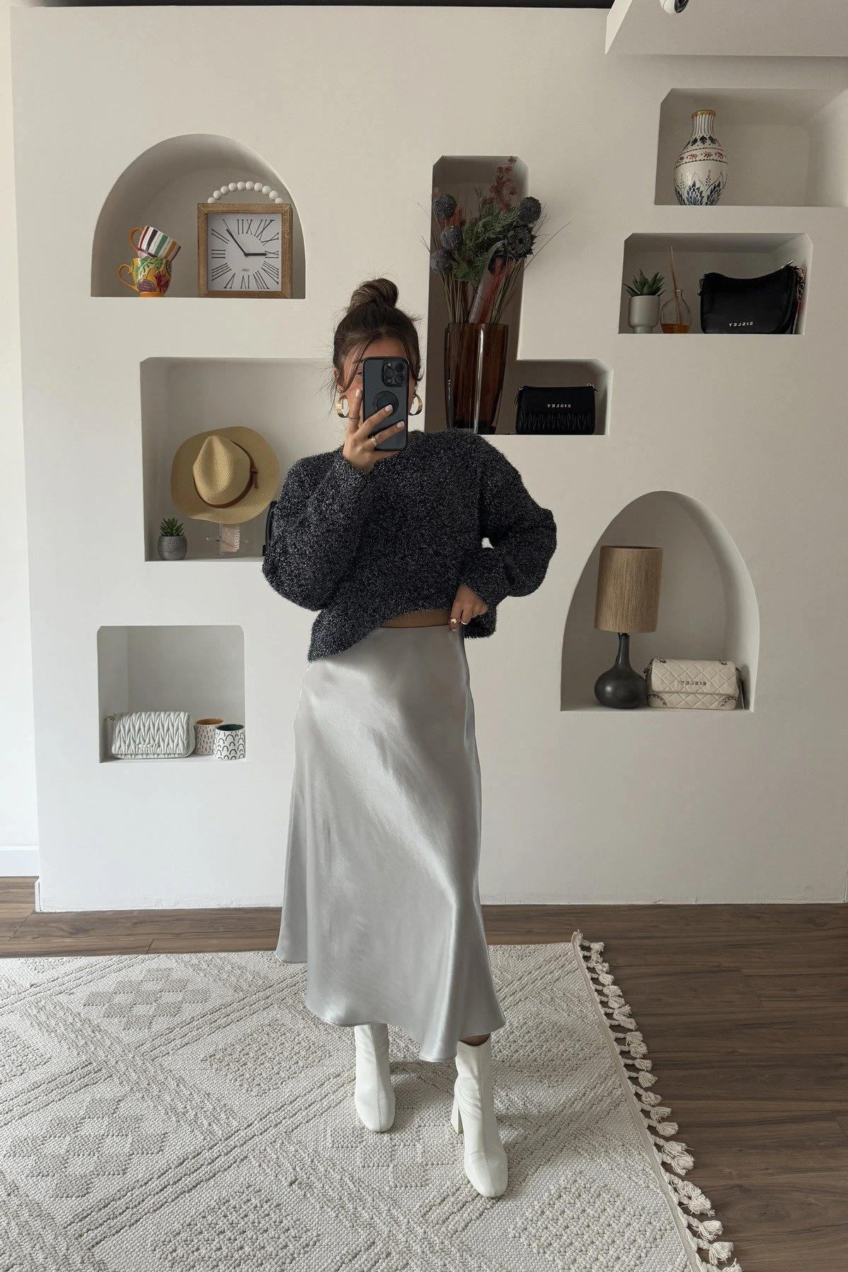 BEL LASTİKLİ SATEN ETEK – GÜMÜŞ