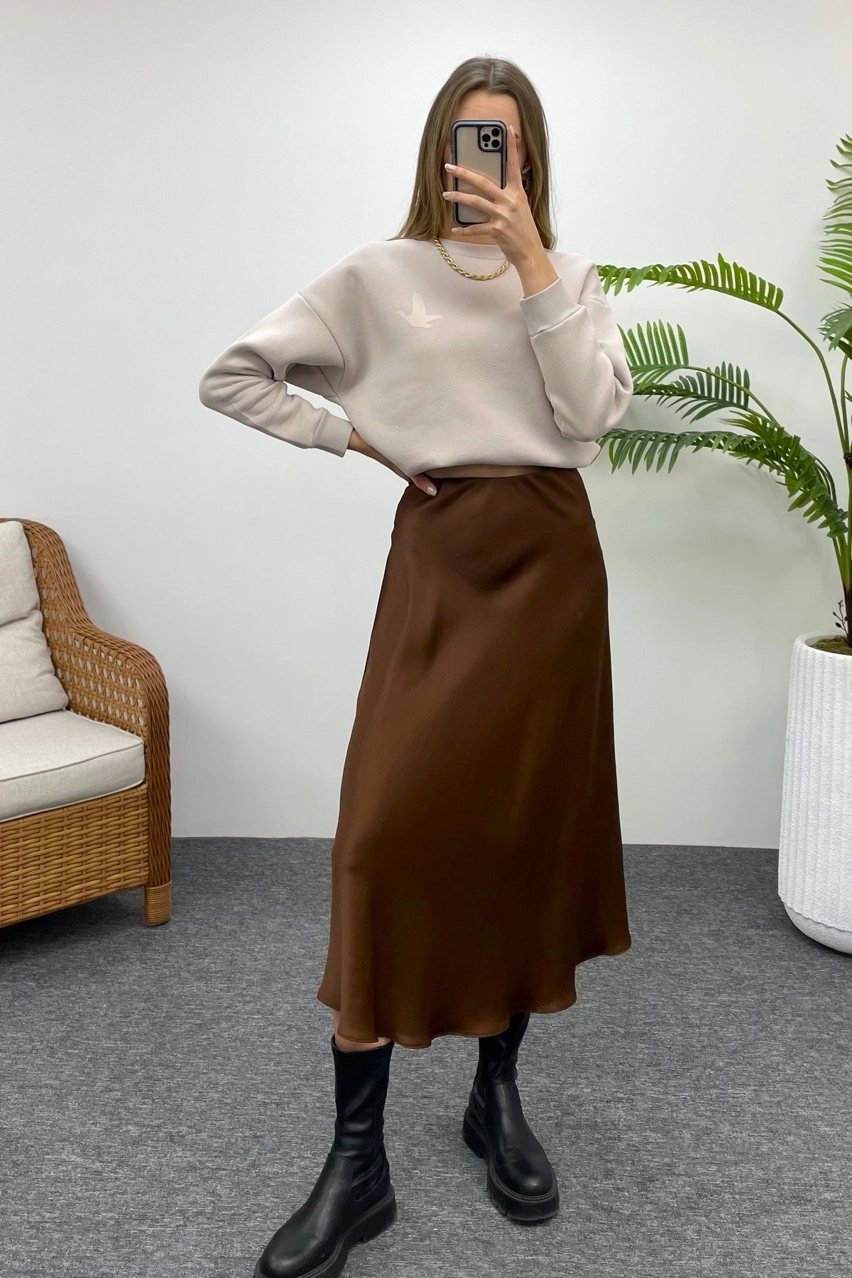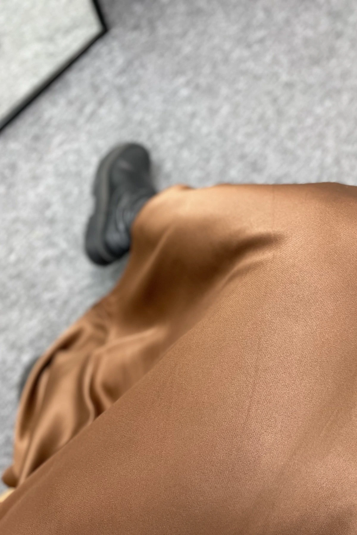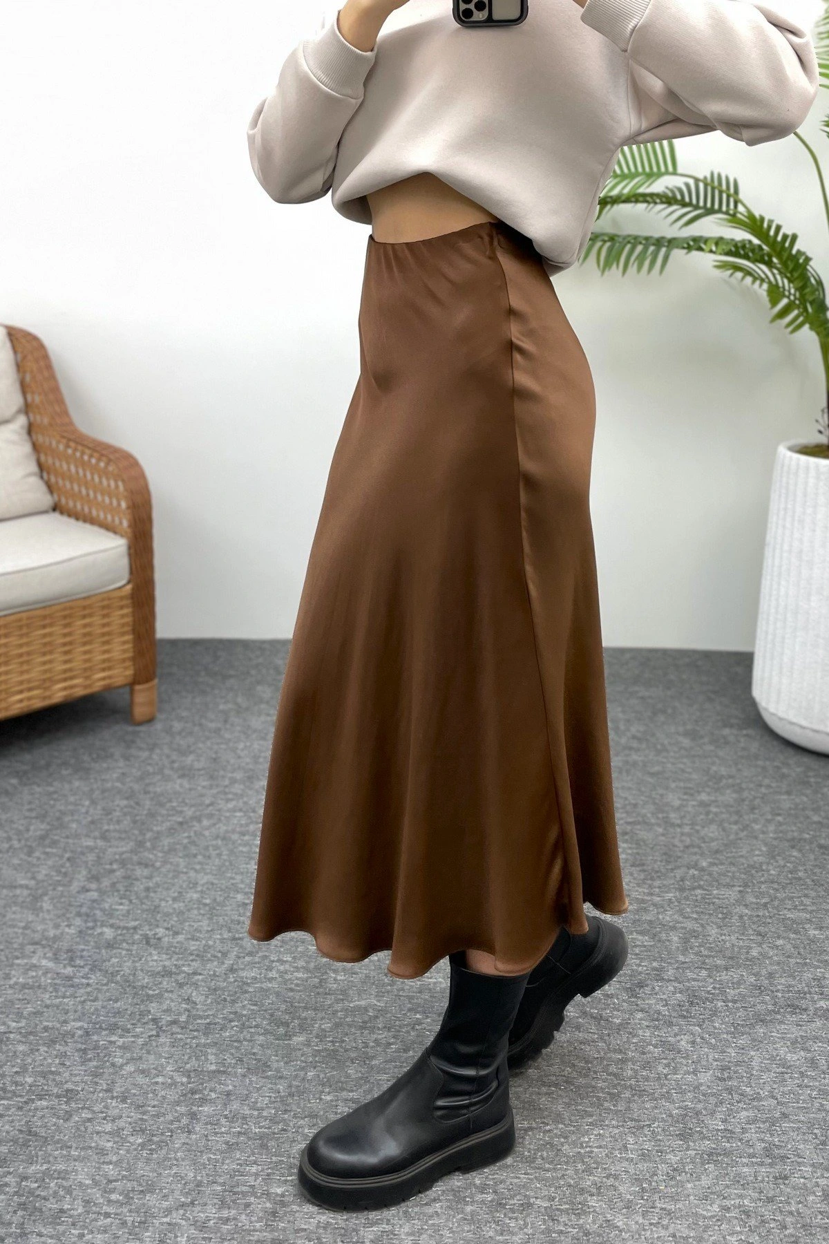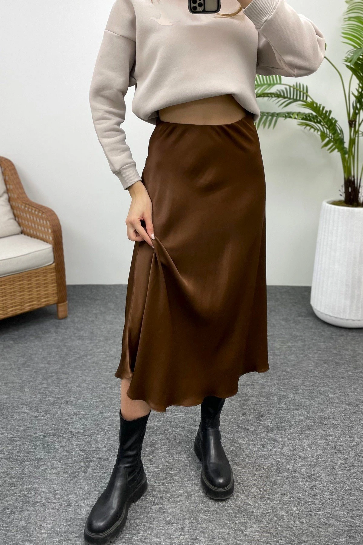 BEL LASTİKLİ SATEN ETEK – KAHVE