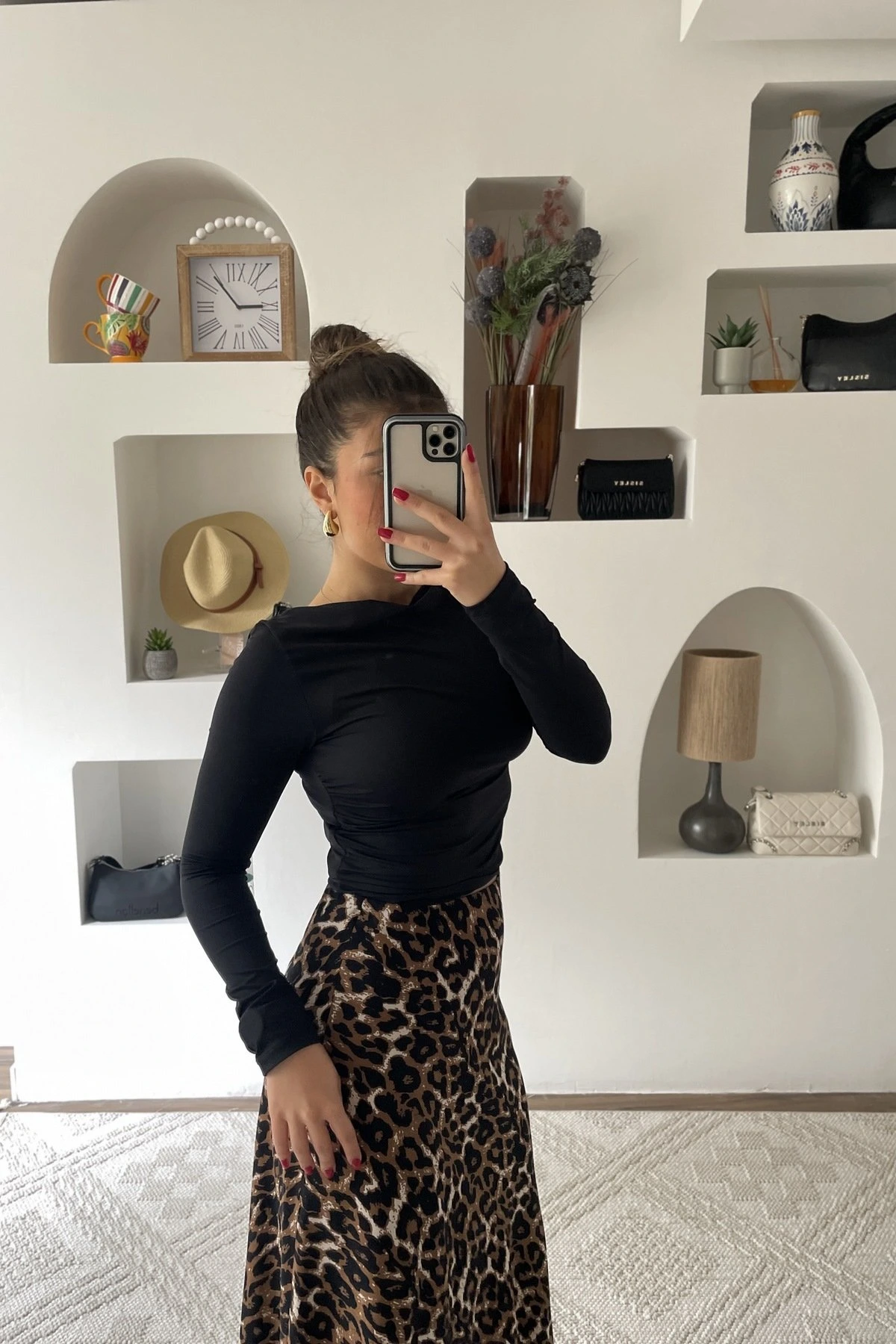 BEL LASTİKLİ SATEN ETEK – LEOPAR