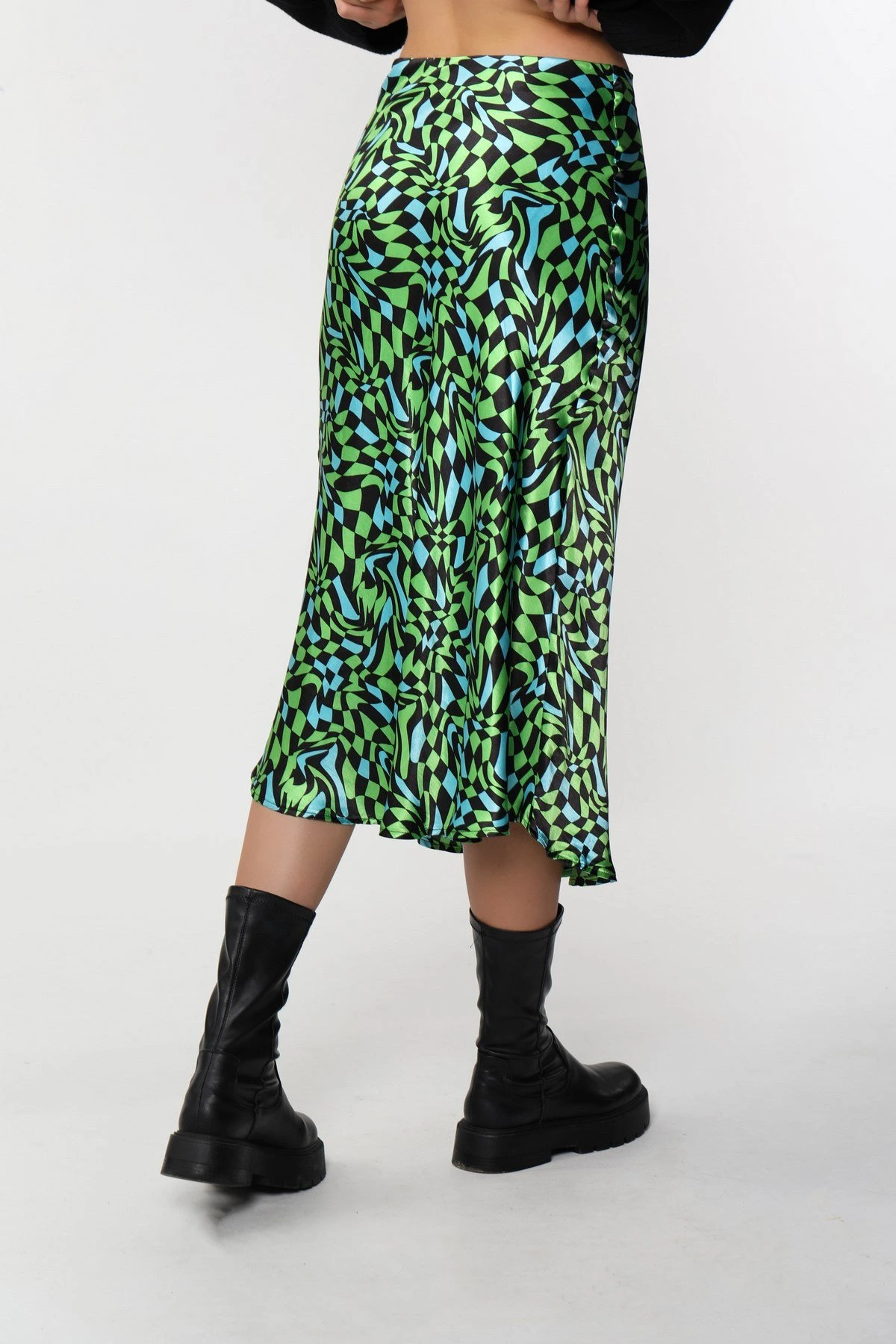 BEL LASTİKLİ SATEN ETEK – MAVİ-SİYAH