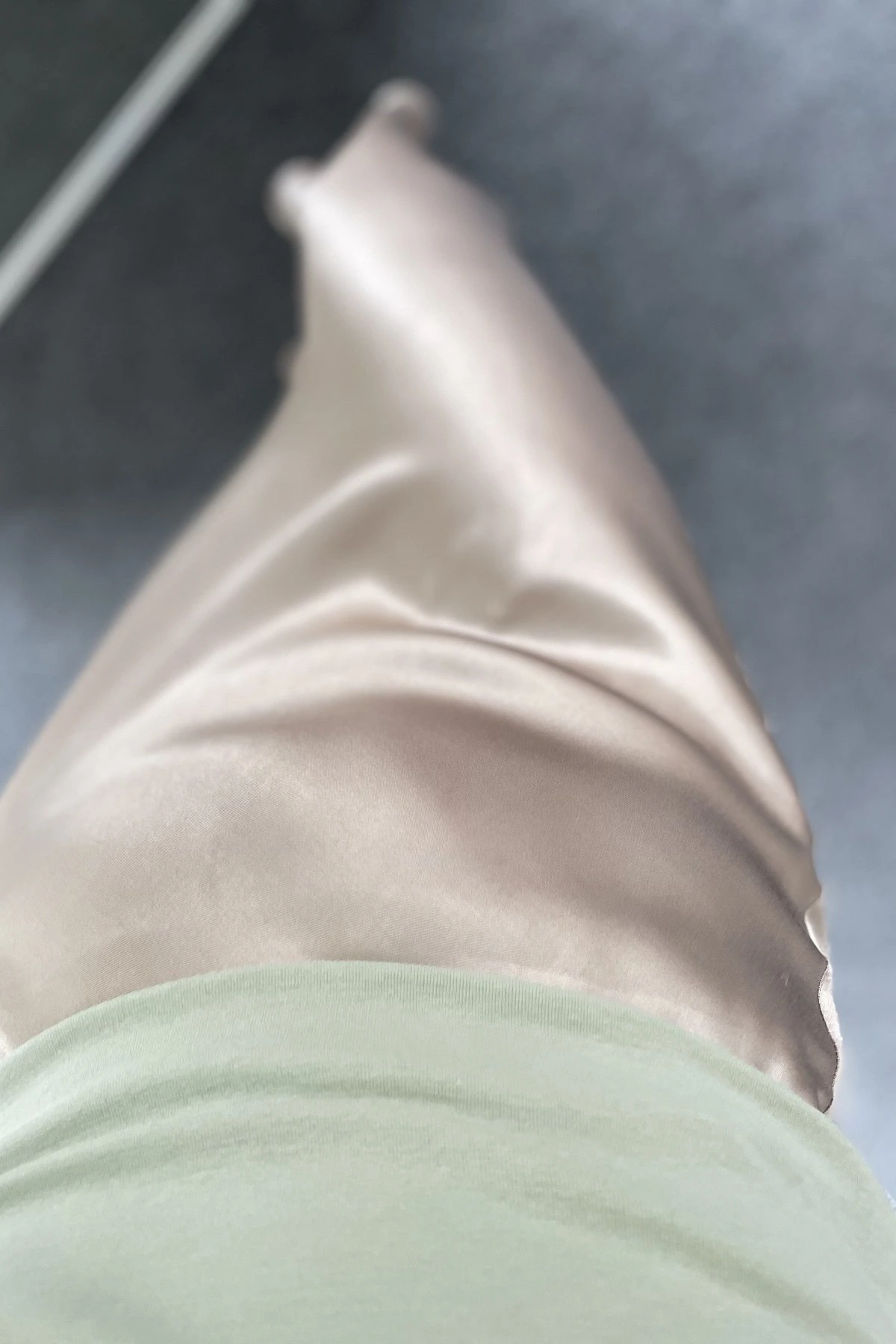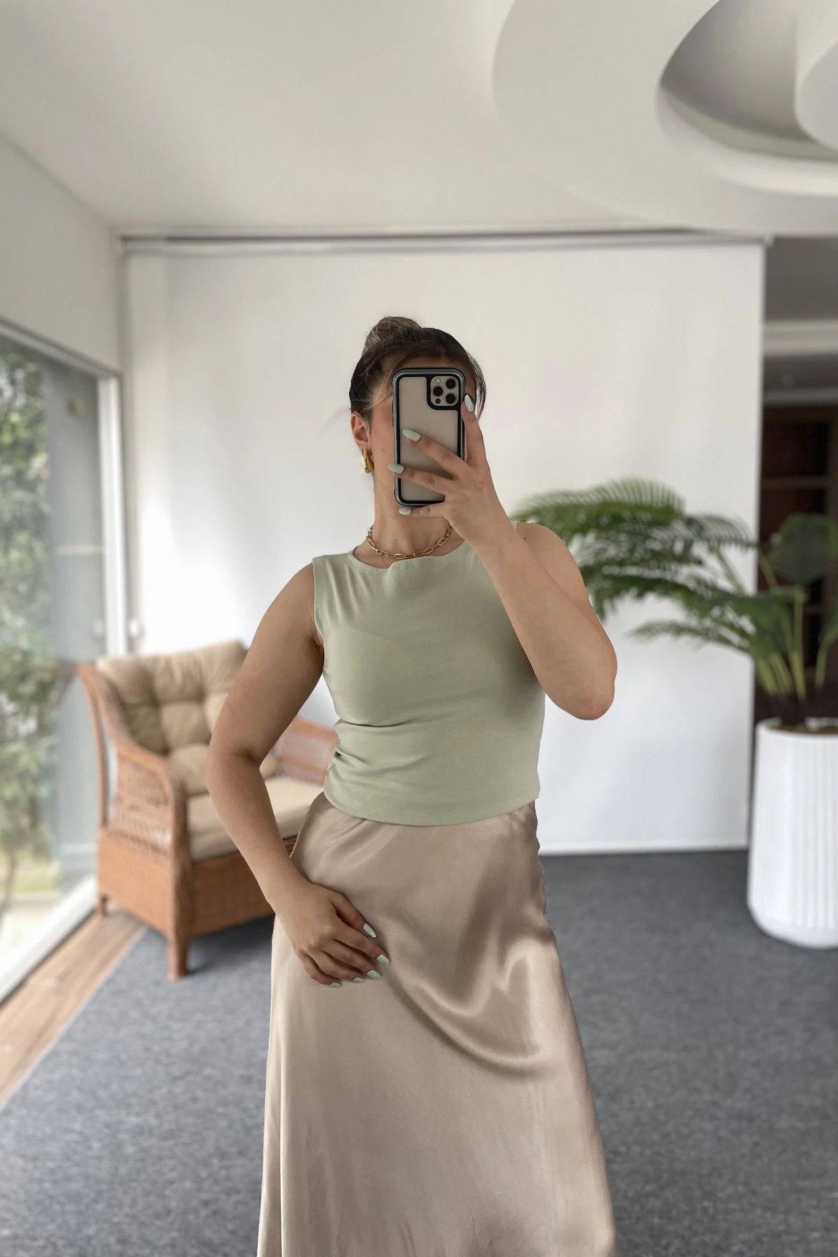 BEL LASTİKLİ SATEN ETEK – PARLAK BEJ