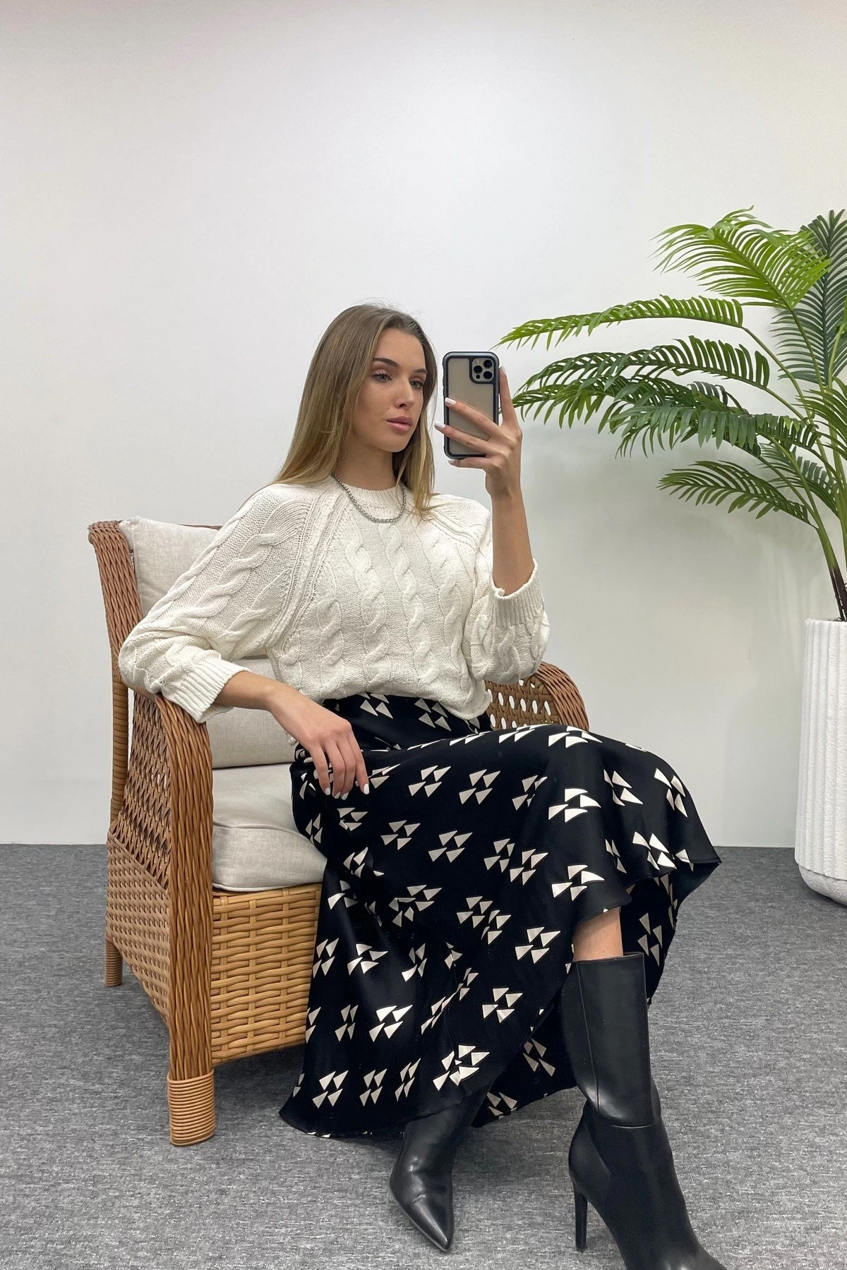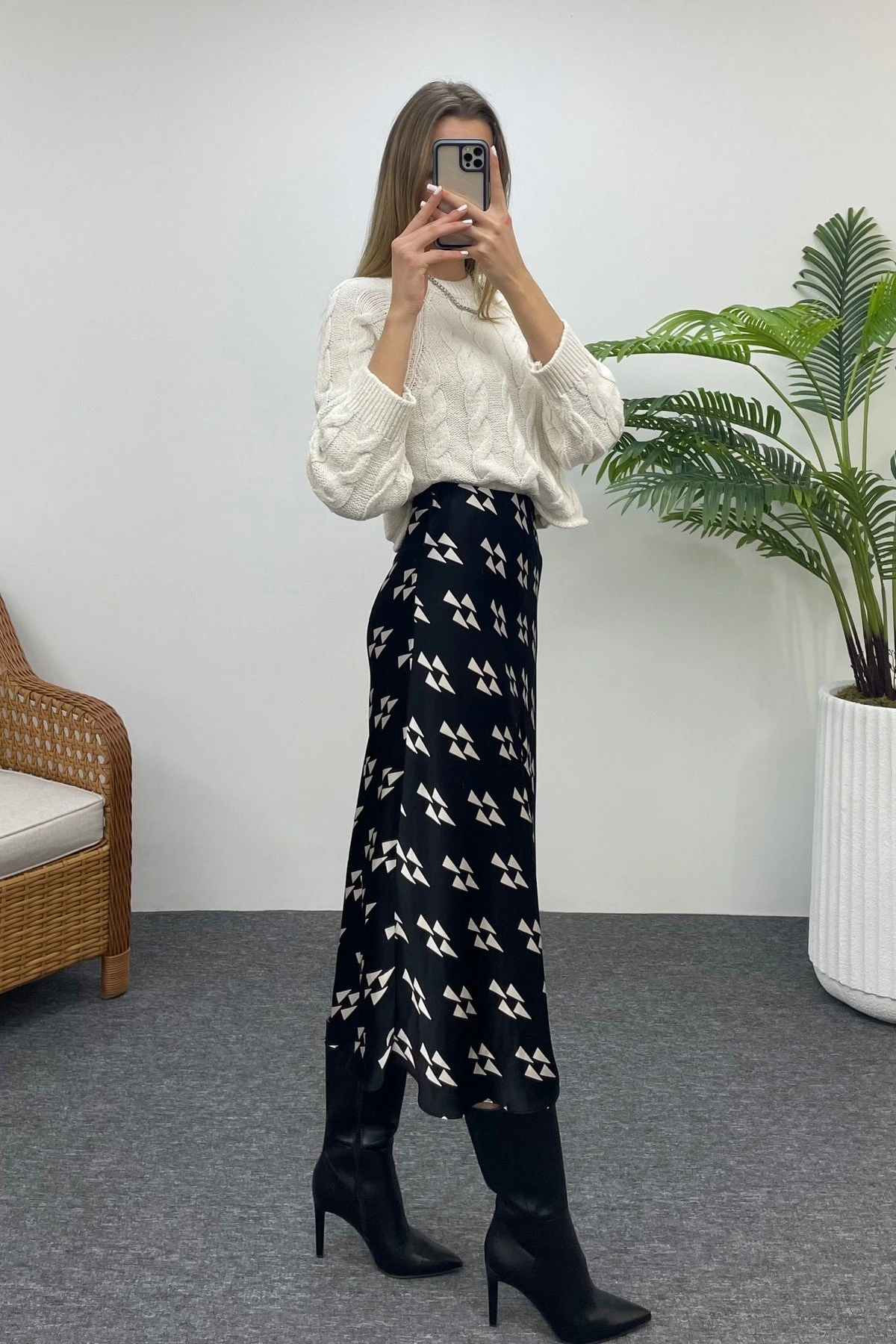 BEL LASTİKLİ SATEN ETEK – SİYAH BEJ