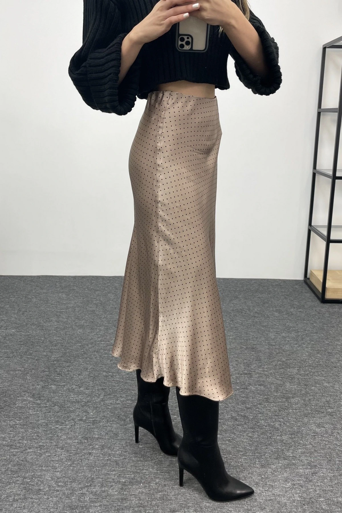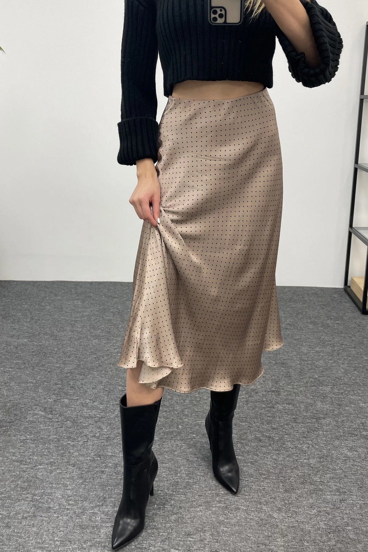 BEL LASTİKLİ SATEN ETEK – VİZON PUANTİYE