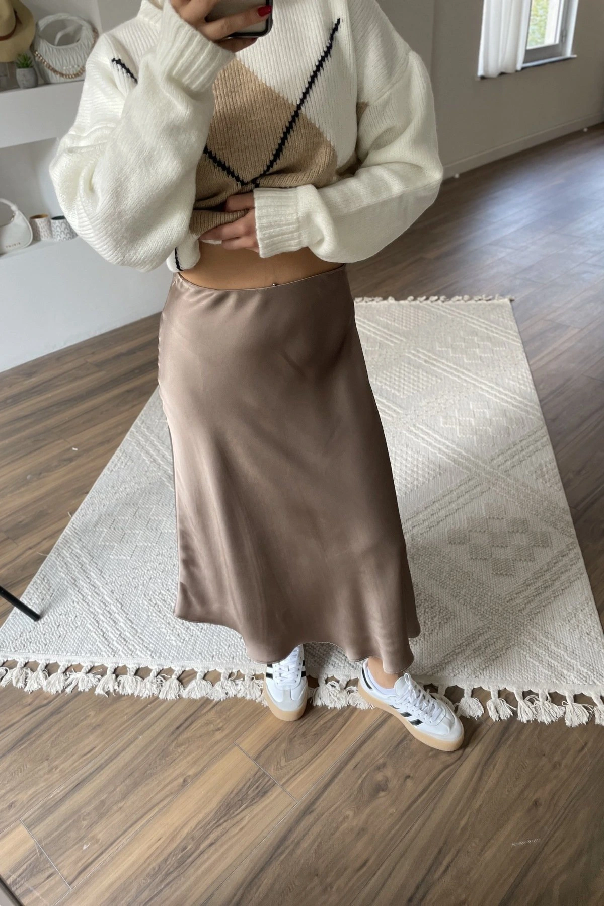 BEL LASTİKLİ SATEN ETEK – VİZON