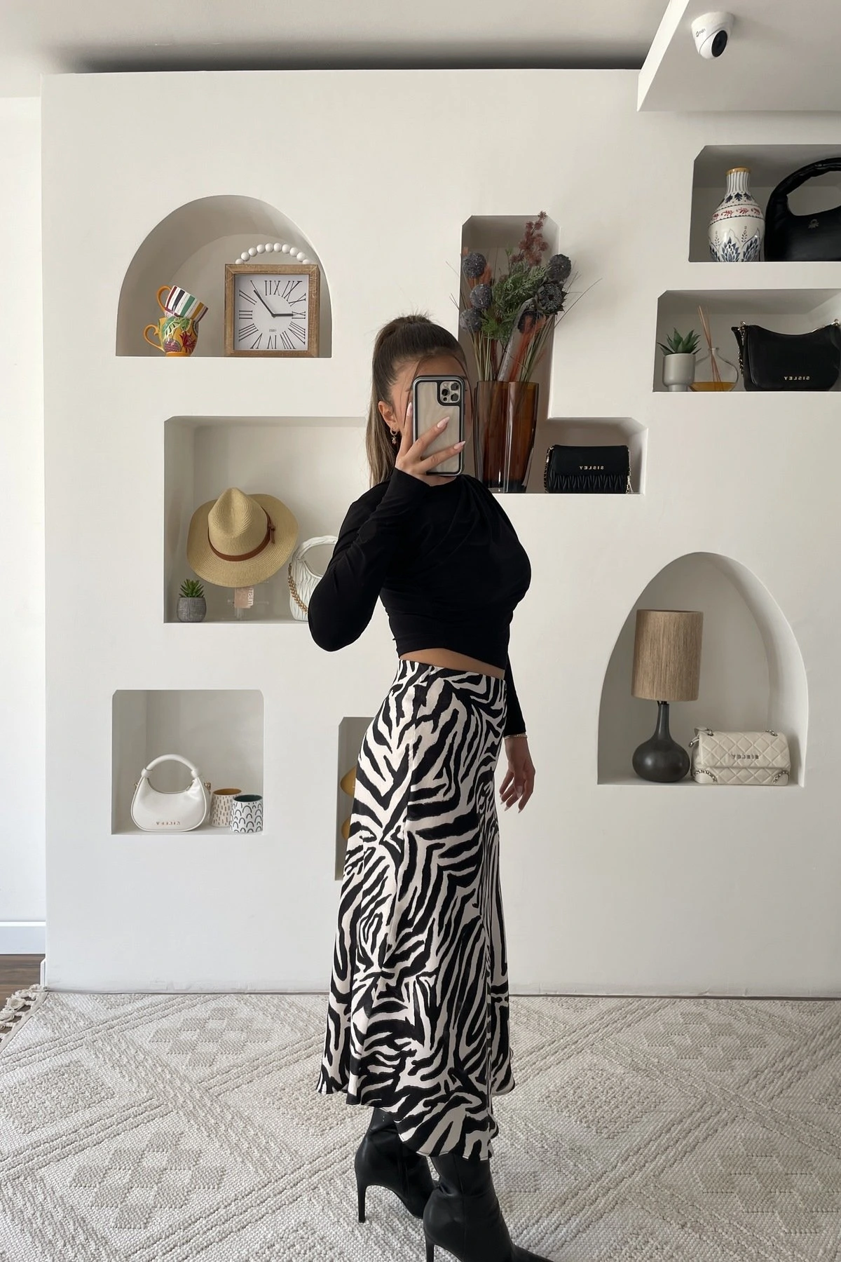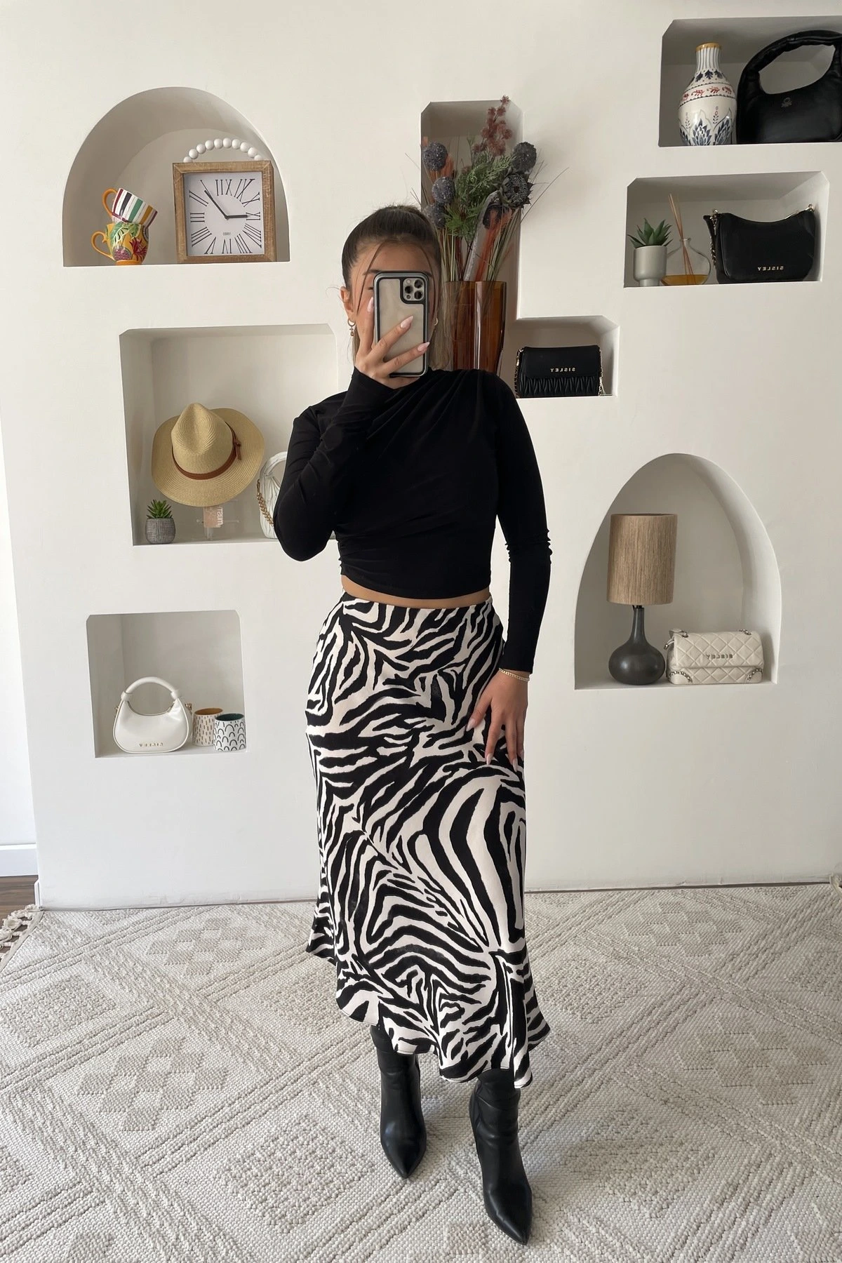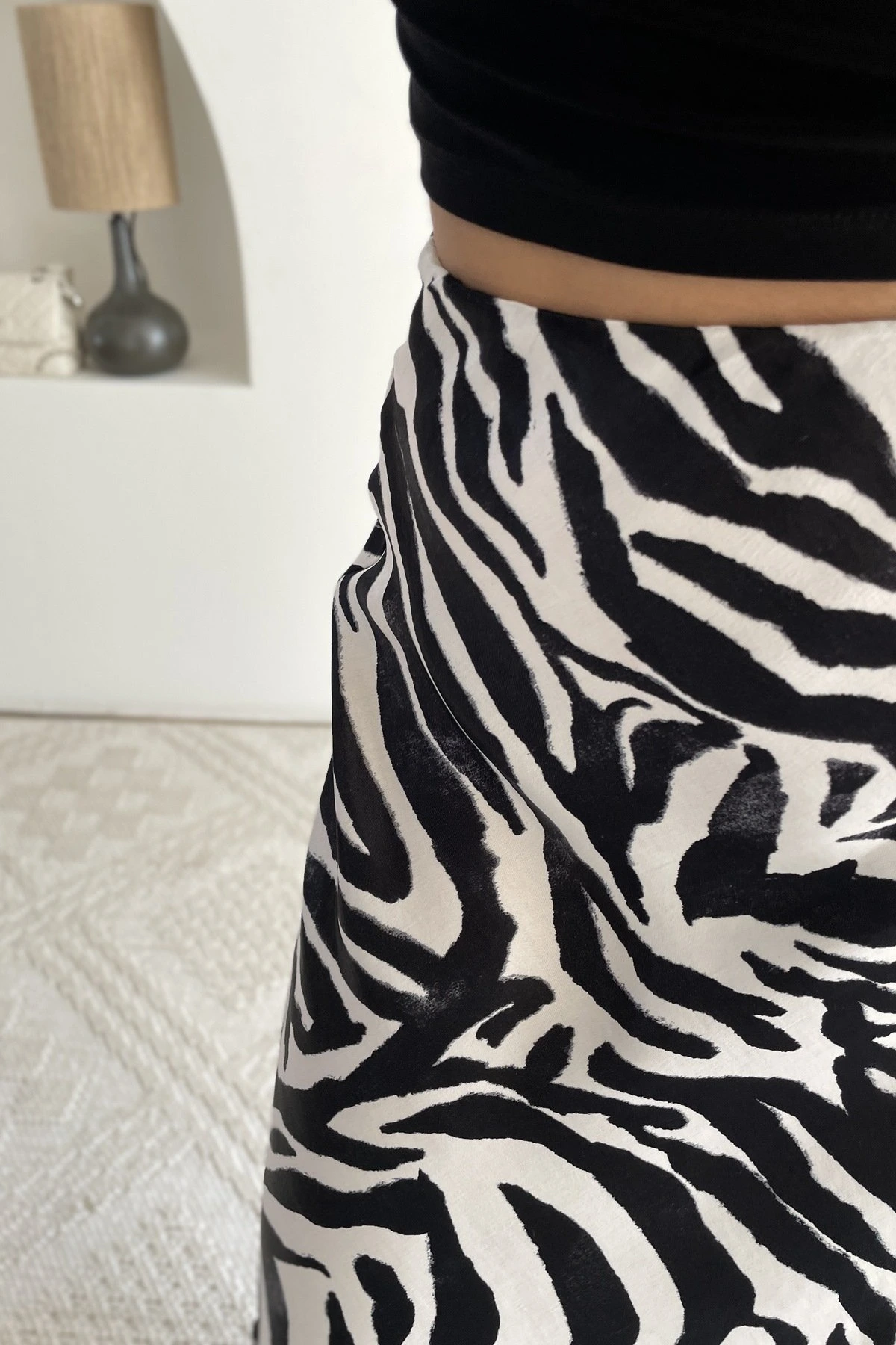 BEL LASTİKLİ SATEN ETEK – ZEBRA