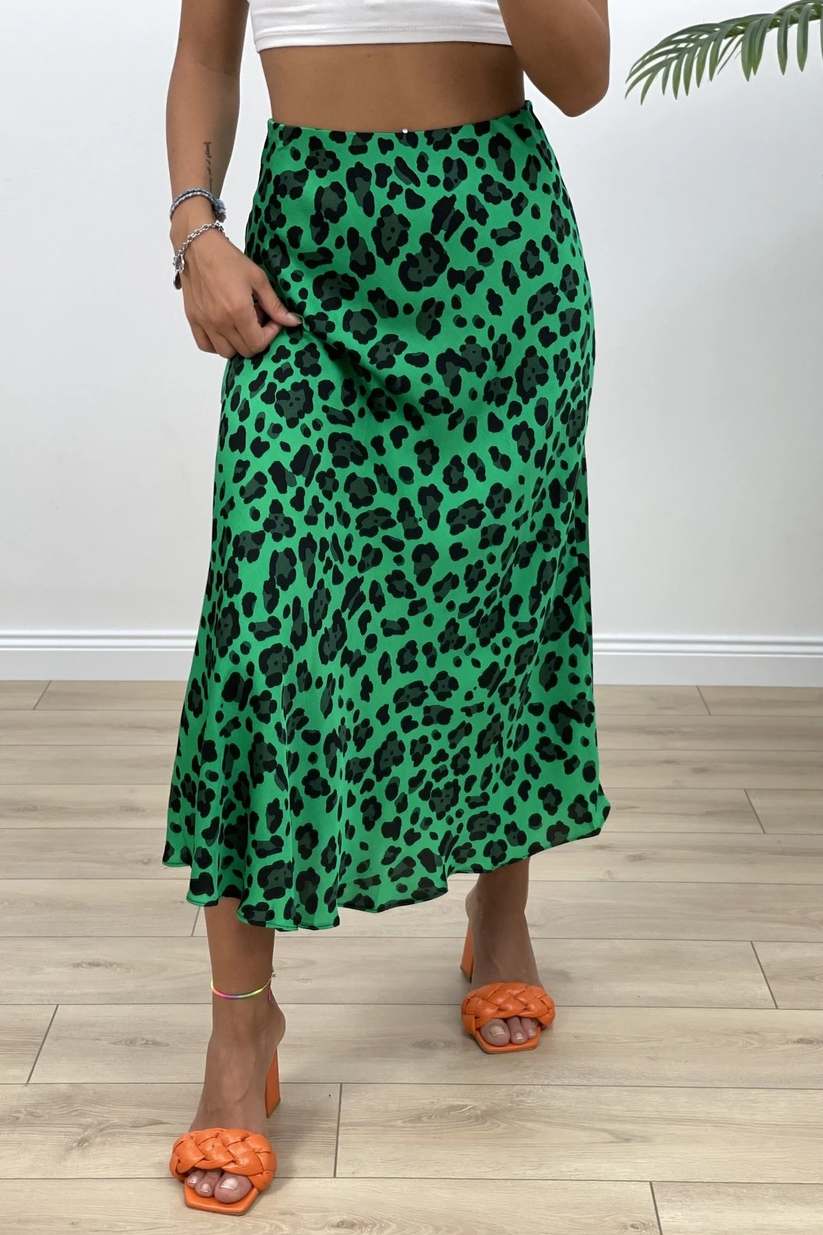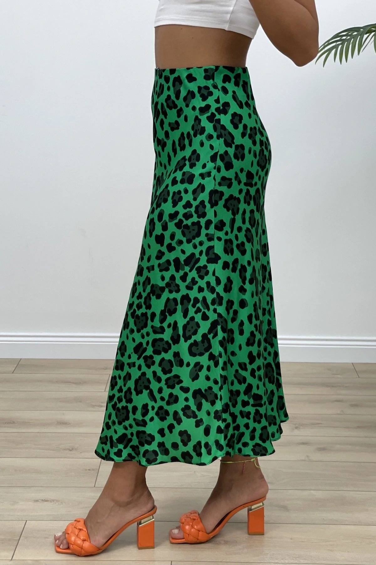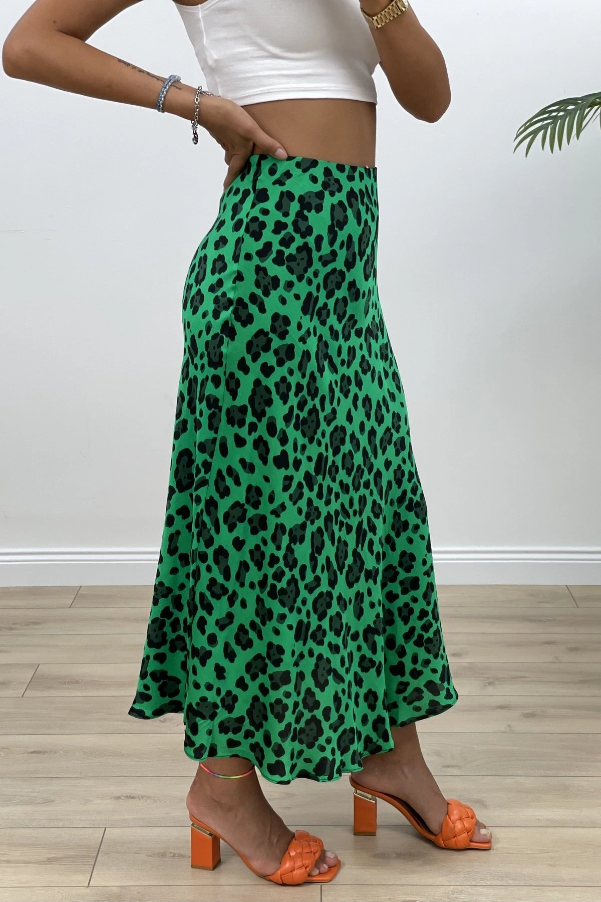 BELİ LASTİKLİ ETEĞİ VEREV LEOPAR DESEN ETEK – YEŞİL