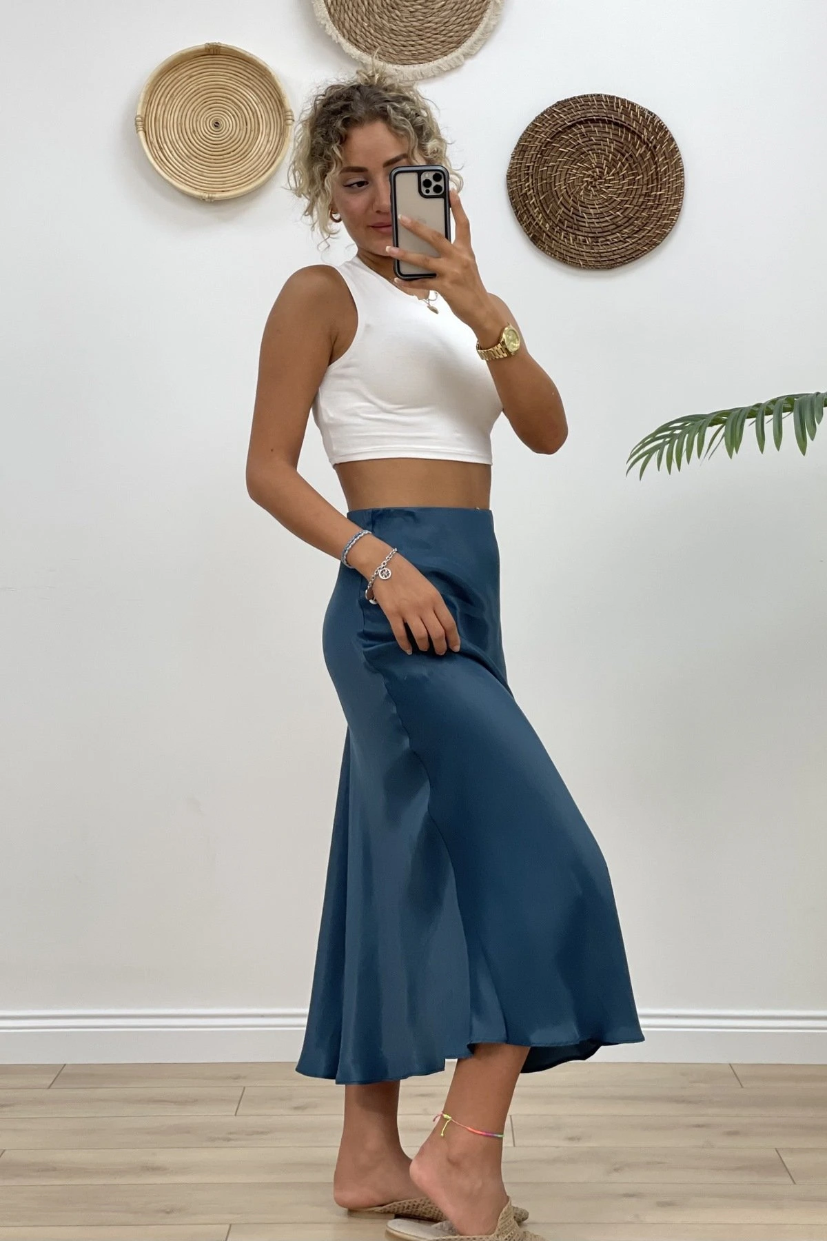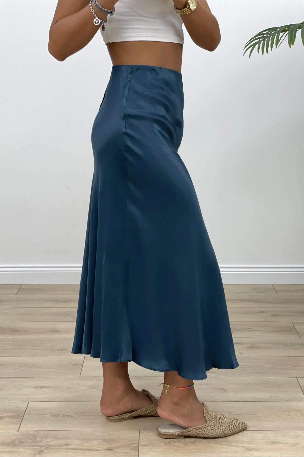 BELİ LASTİKLİ ETEĞİ VEREV SATEN ETEK – İNDİGO
