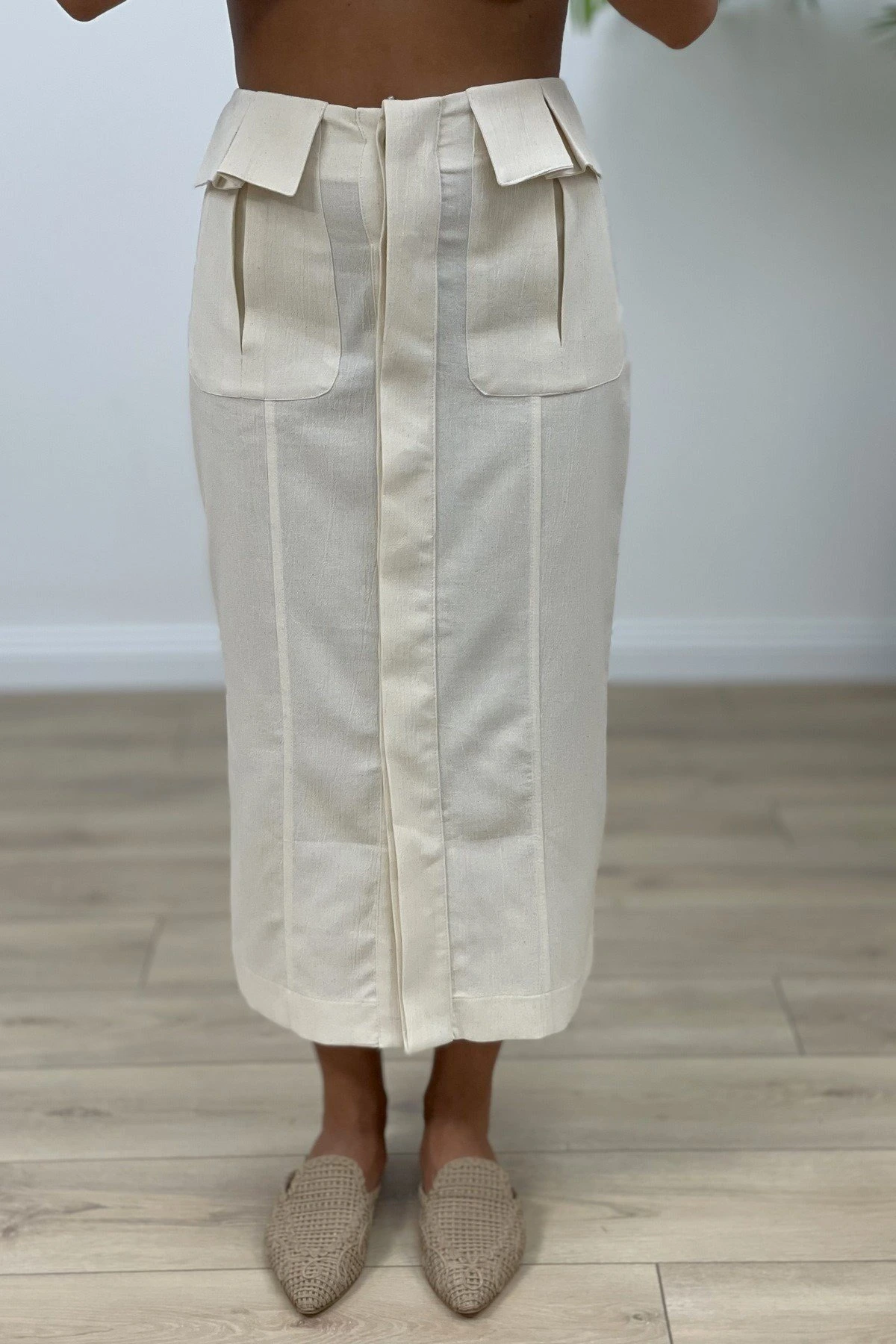 ÇİFT CEP KAPAK MİDİ BOY PAMUK ETEK – BEJ