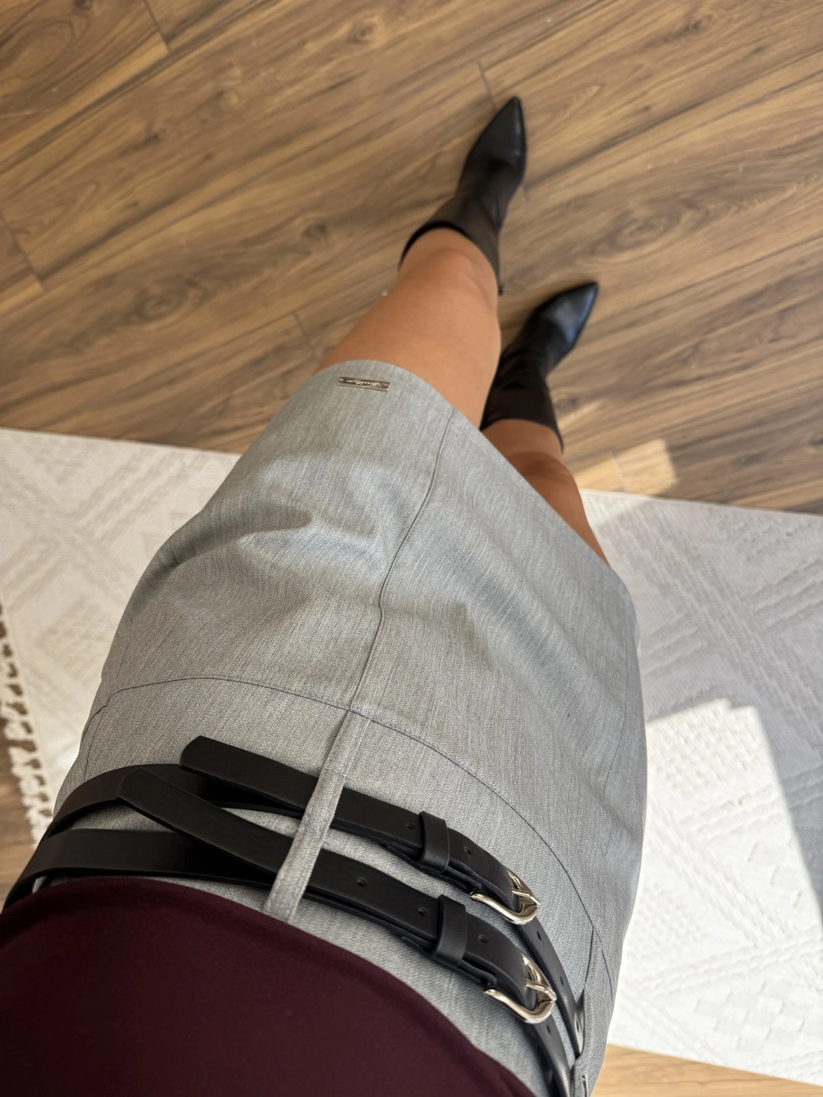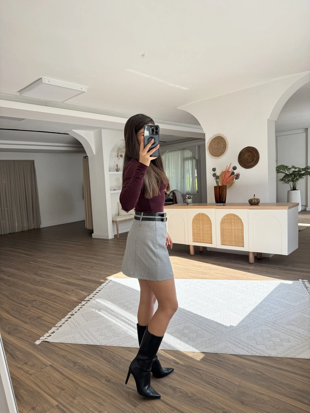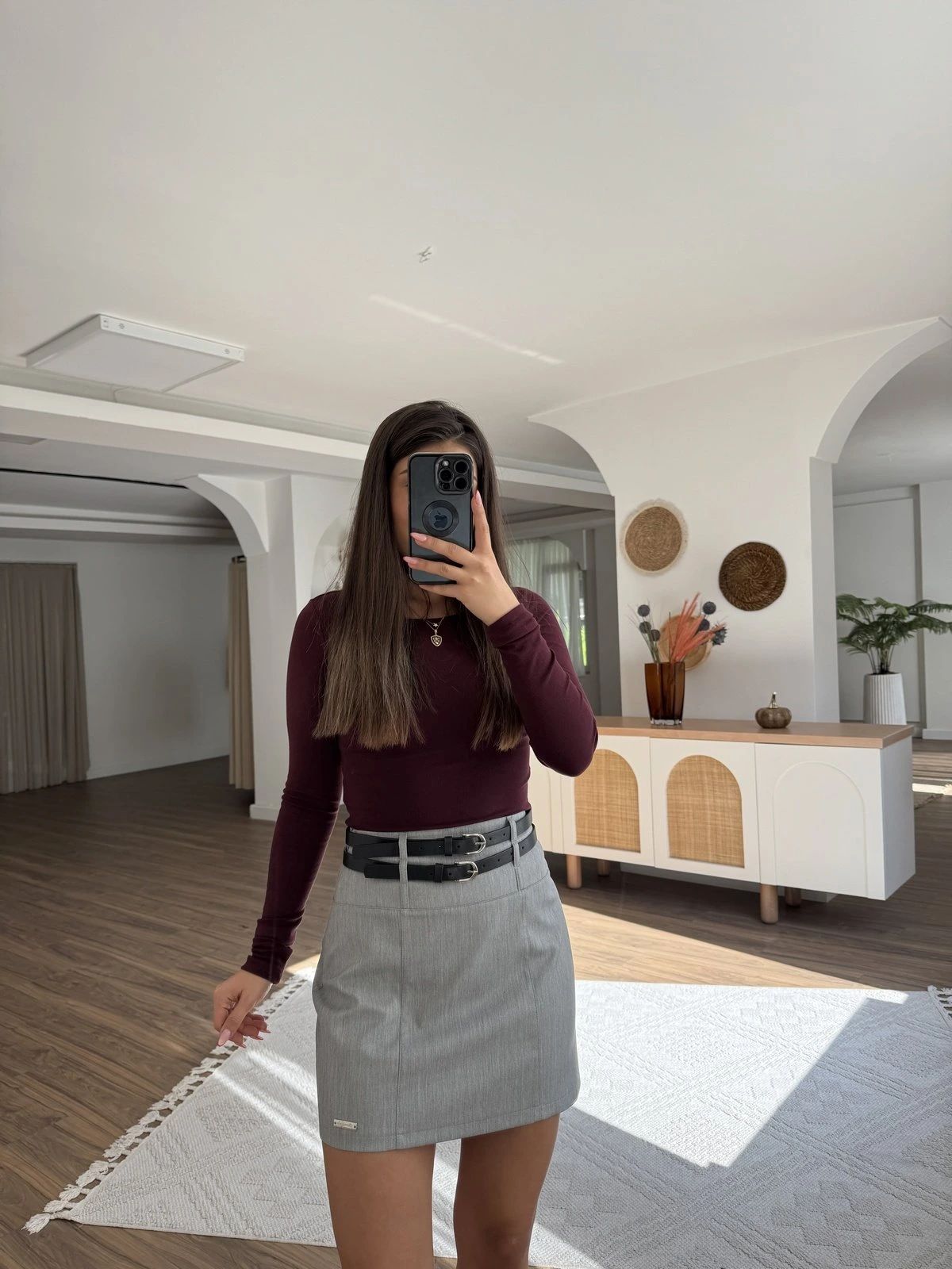 ÇİFT KEMER MİNİ KUMAŞ ETEK – GRİ
