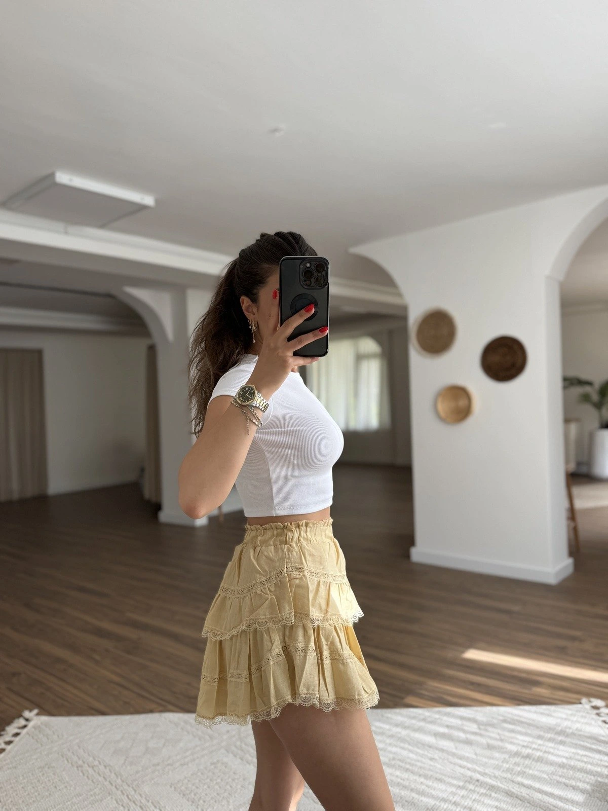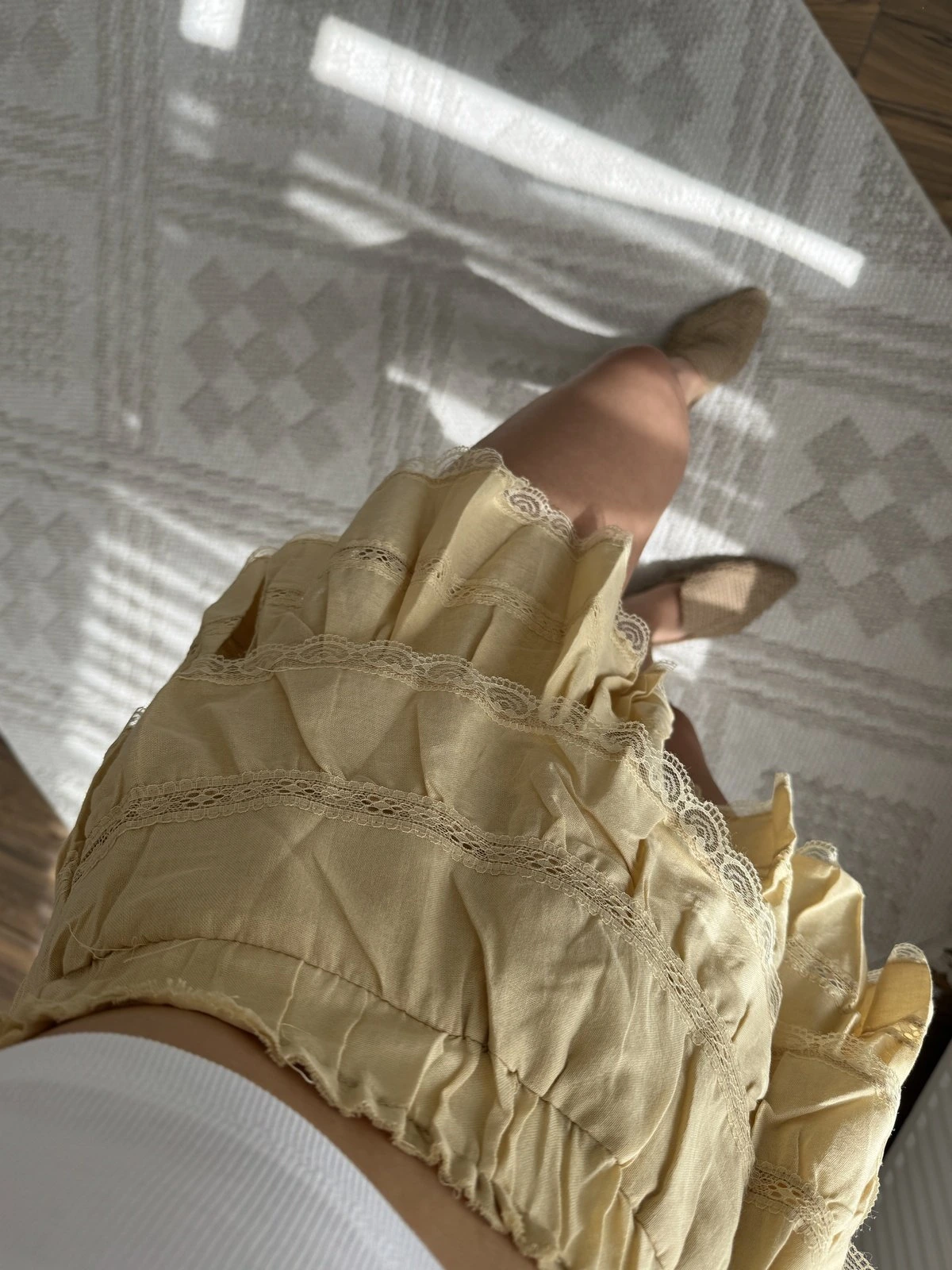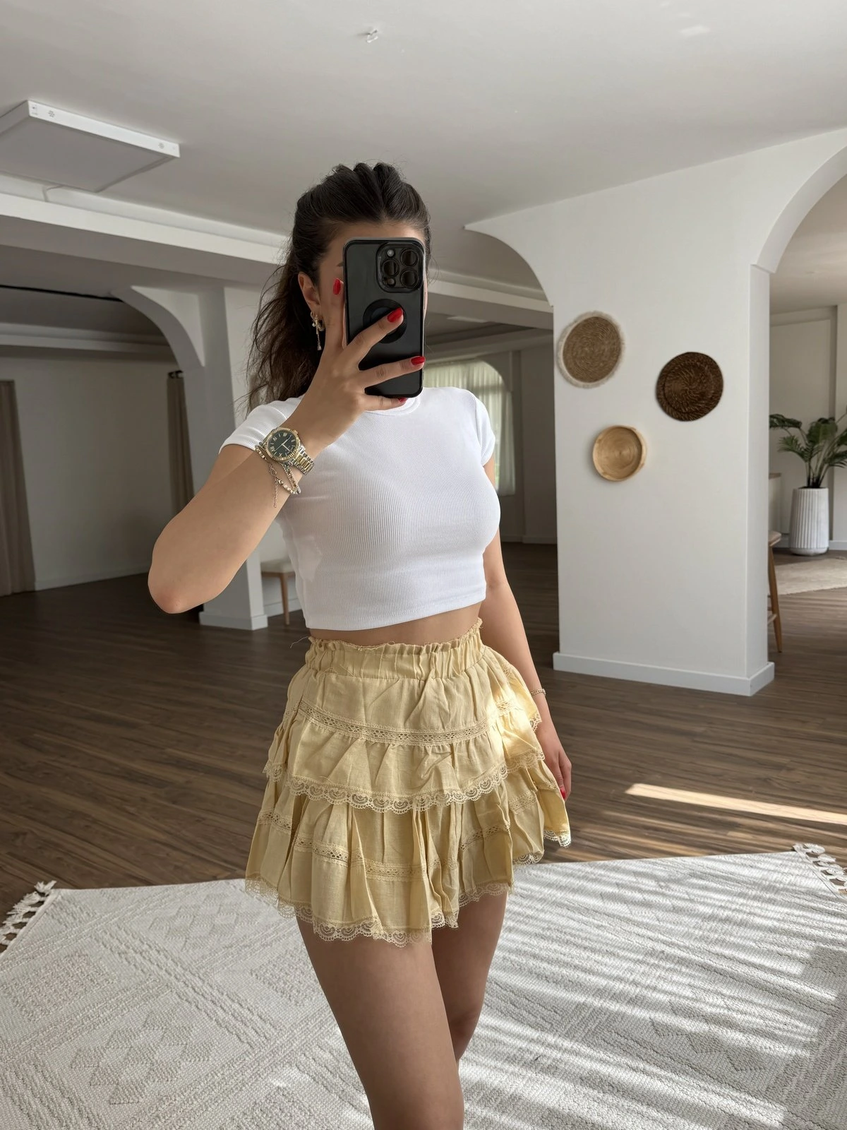DANTEL ŞERİT KATLI PAMUK ŞORTLU ETEK – SARI