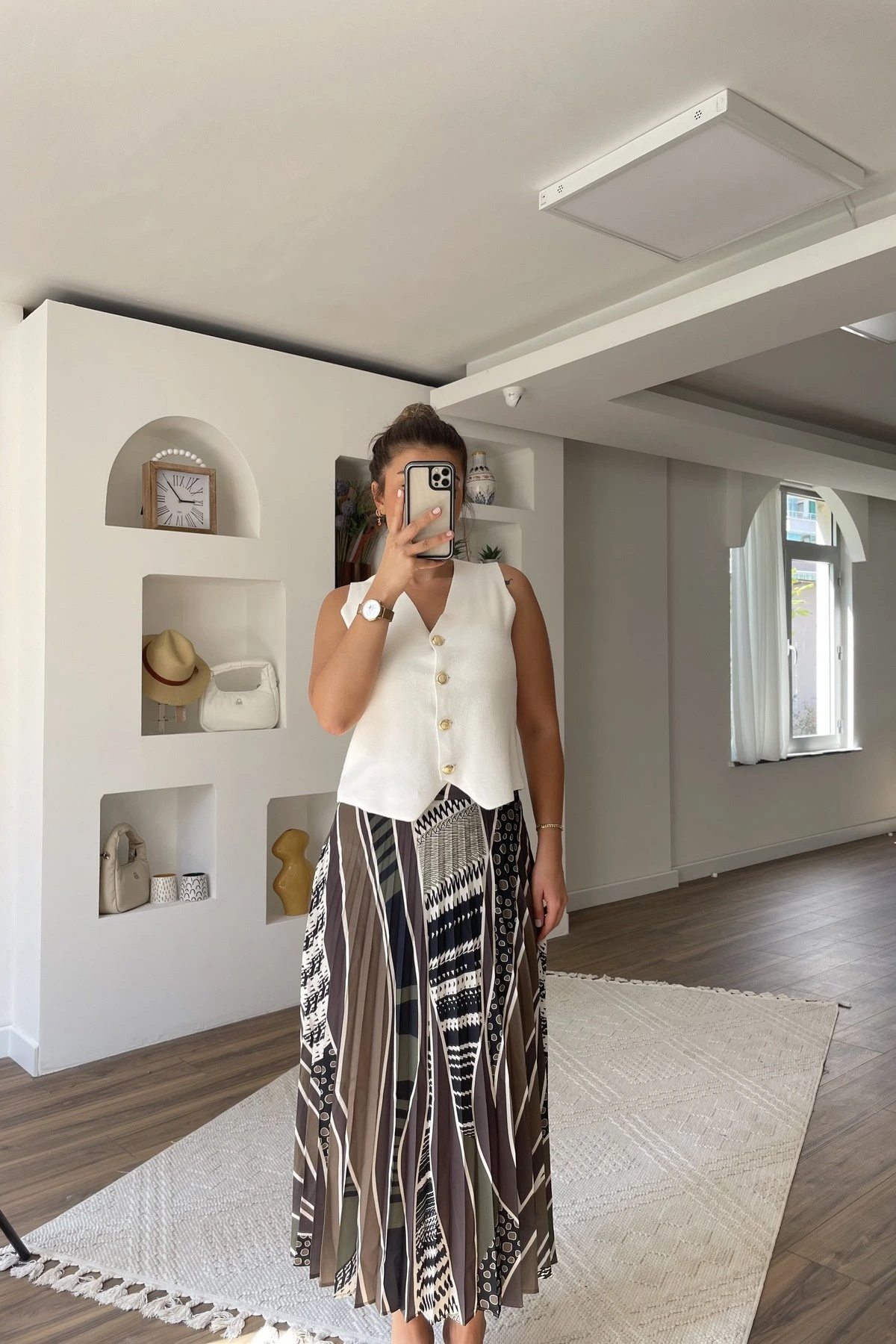 DESENLİ PLİSE MİDİ ETEK – HAKİ