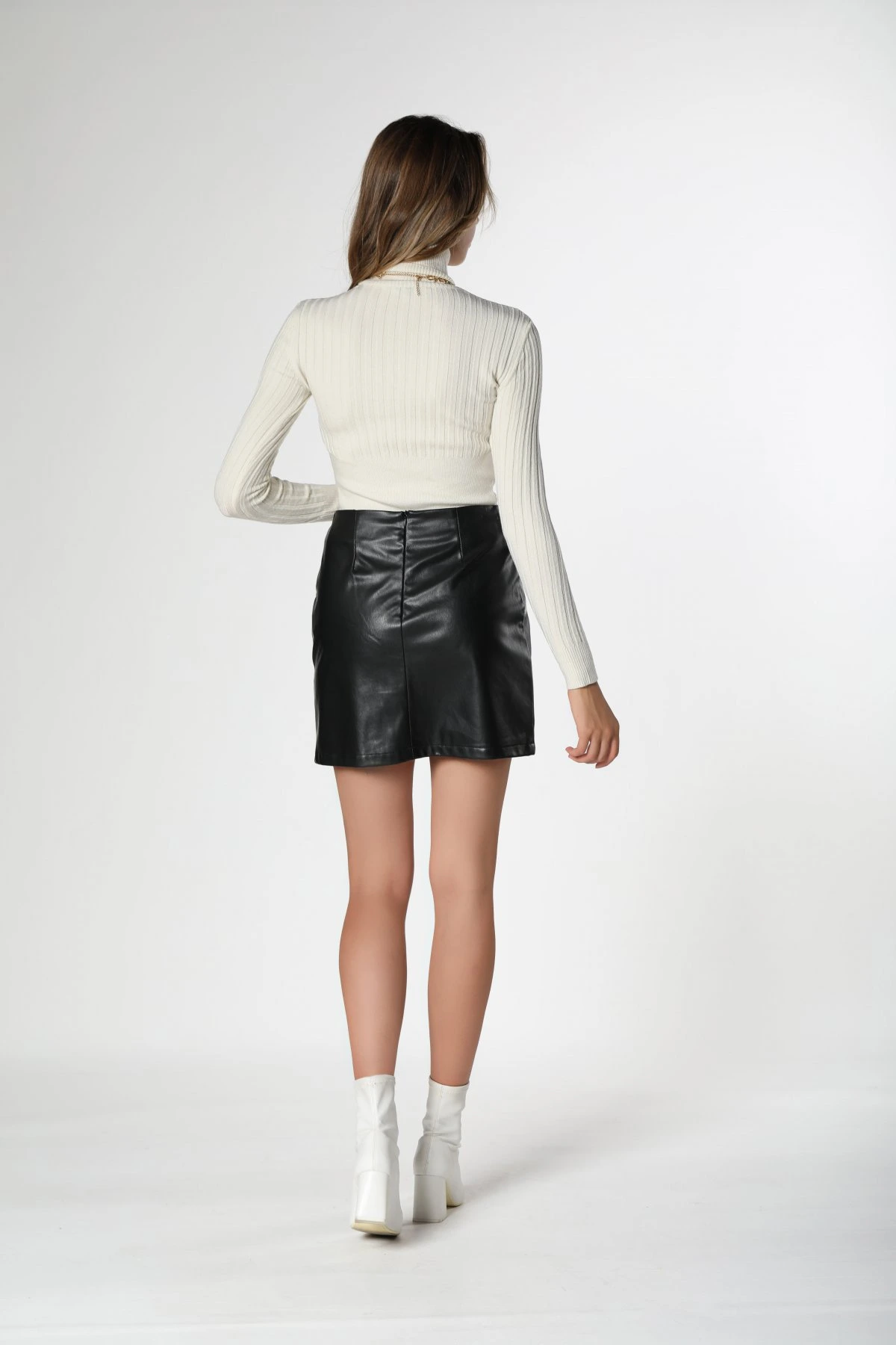 DİKİŞ DETAY MİNİ DERİ ETEK – SİYAH
