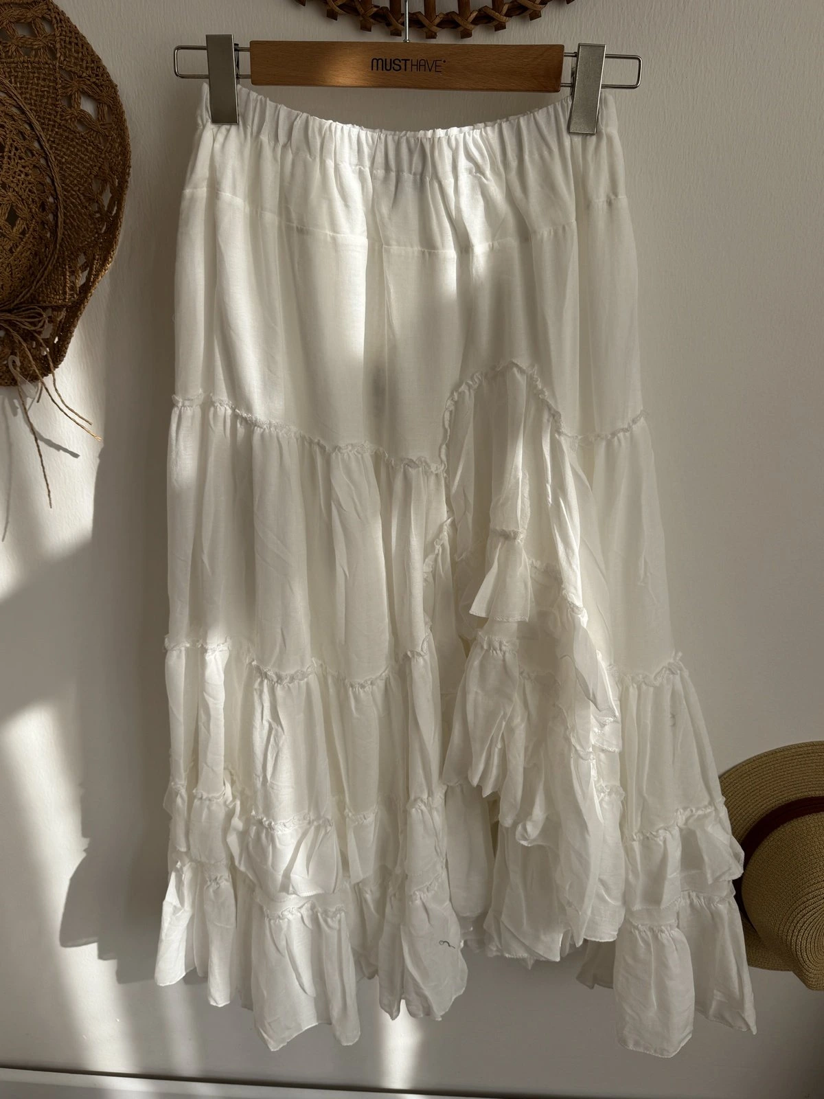 ETEĞİ KATLI ASİMETRİK ASTARLI PAMUK ETEK – BEYAZ