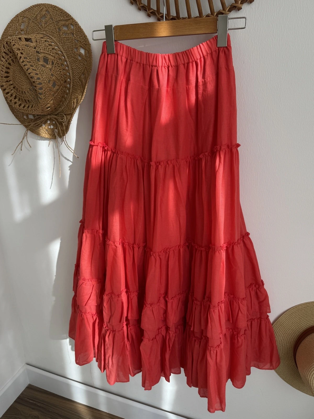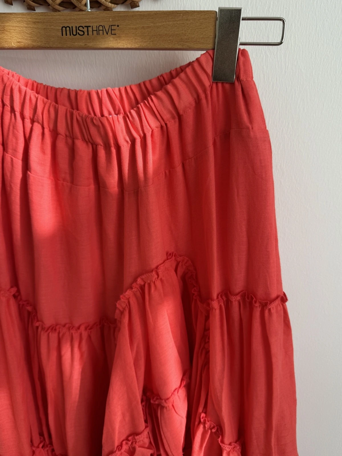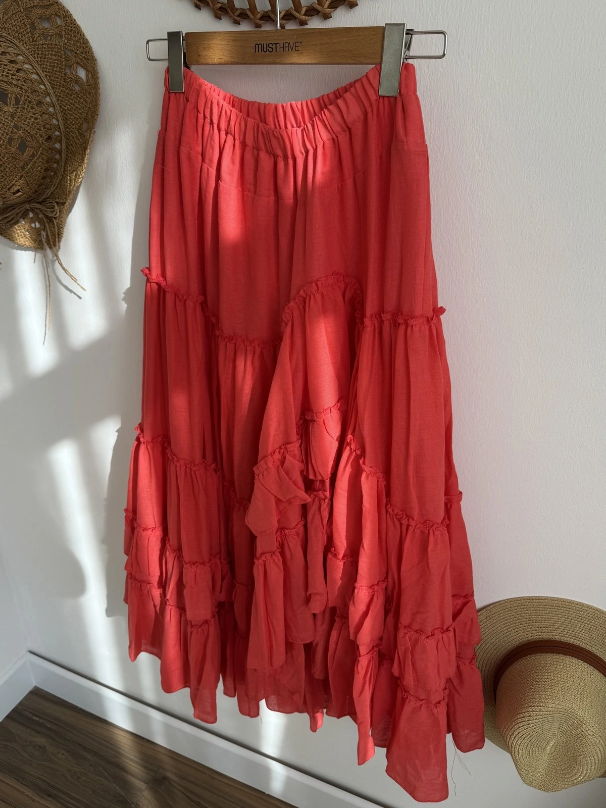ETEĞİ KATLI ASİMETRİK ASTARLI PAMUK ETEK – NAR ÇİÇEĞİ