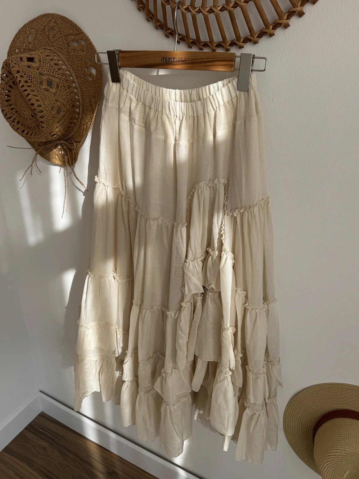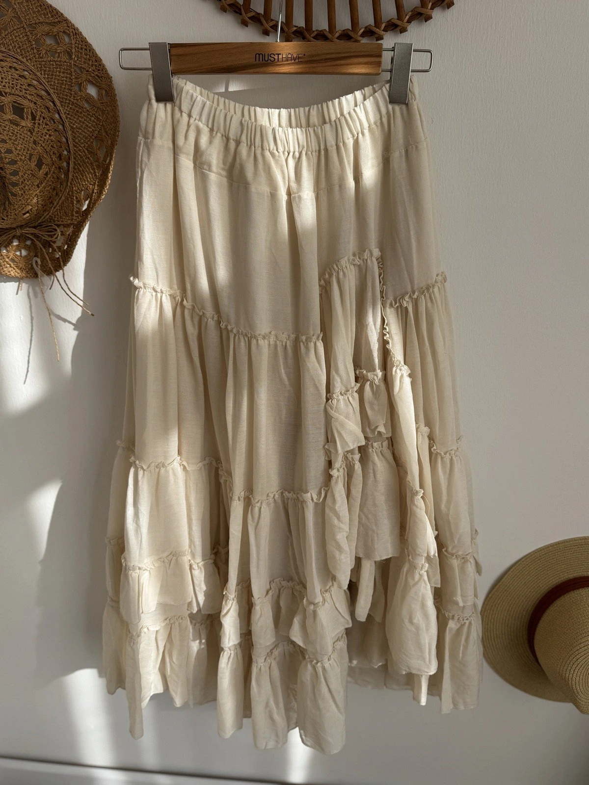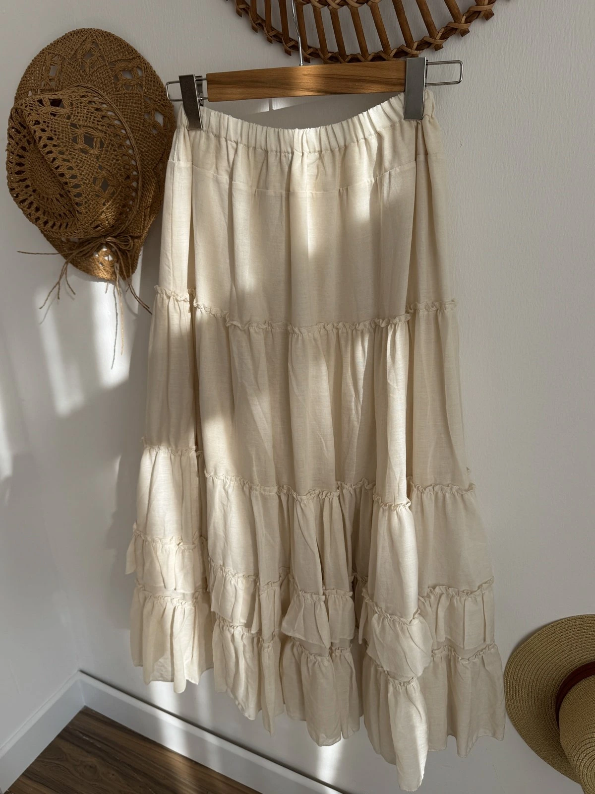 ETEĞİ KATLI ASİMETRİK ASTARLI PAMUK ETEK – NATUREL