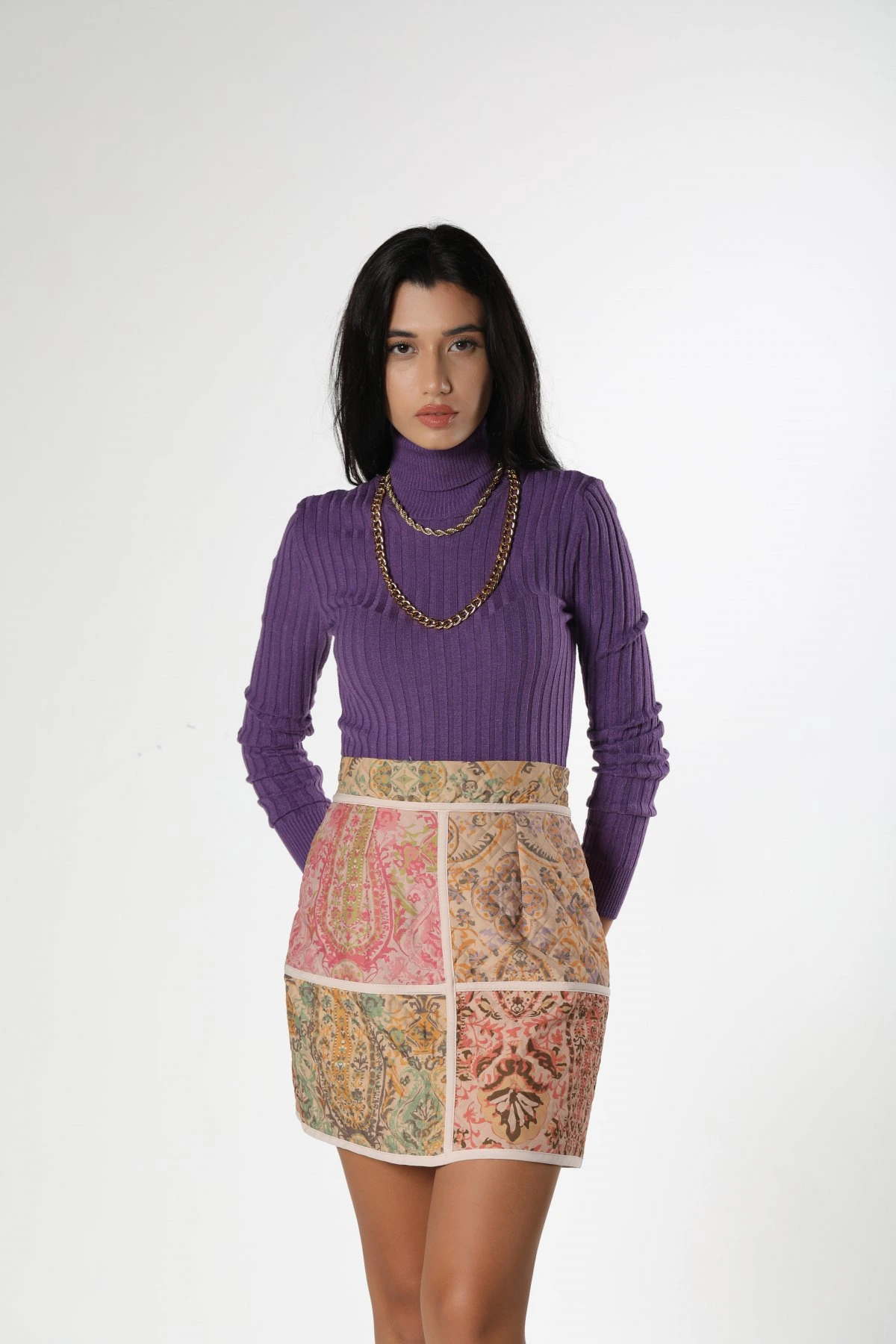 ETNİK DESEN KAPİTONE ETEK – PUDRA