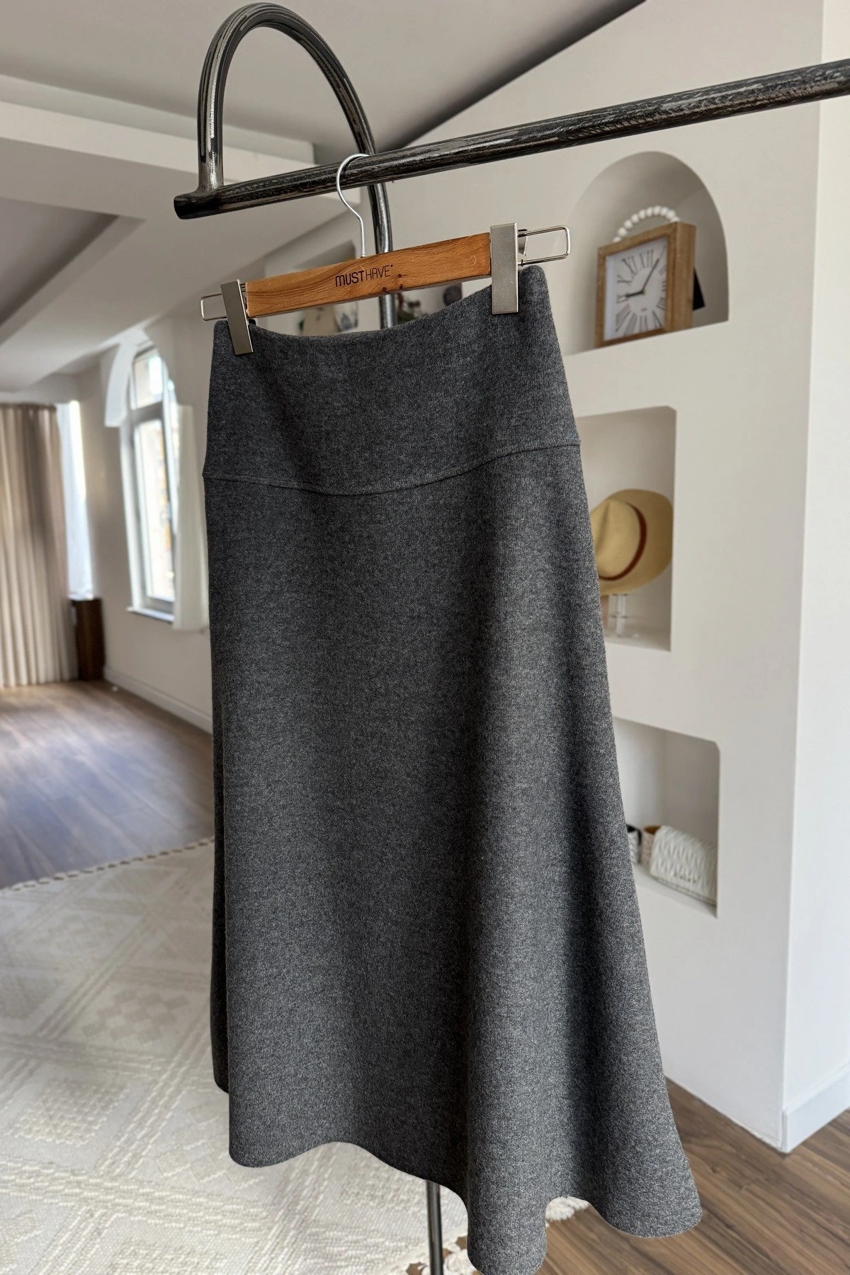 GENİŞ BEL SELANİK ÖRGÜ MİDİ PAMUK ETEK – ANTRASİT