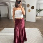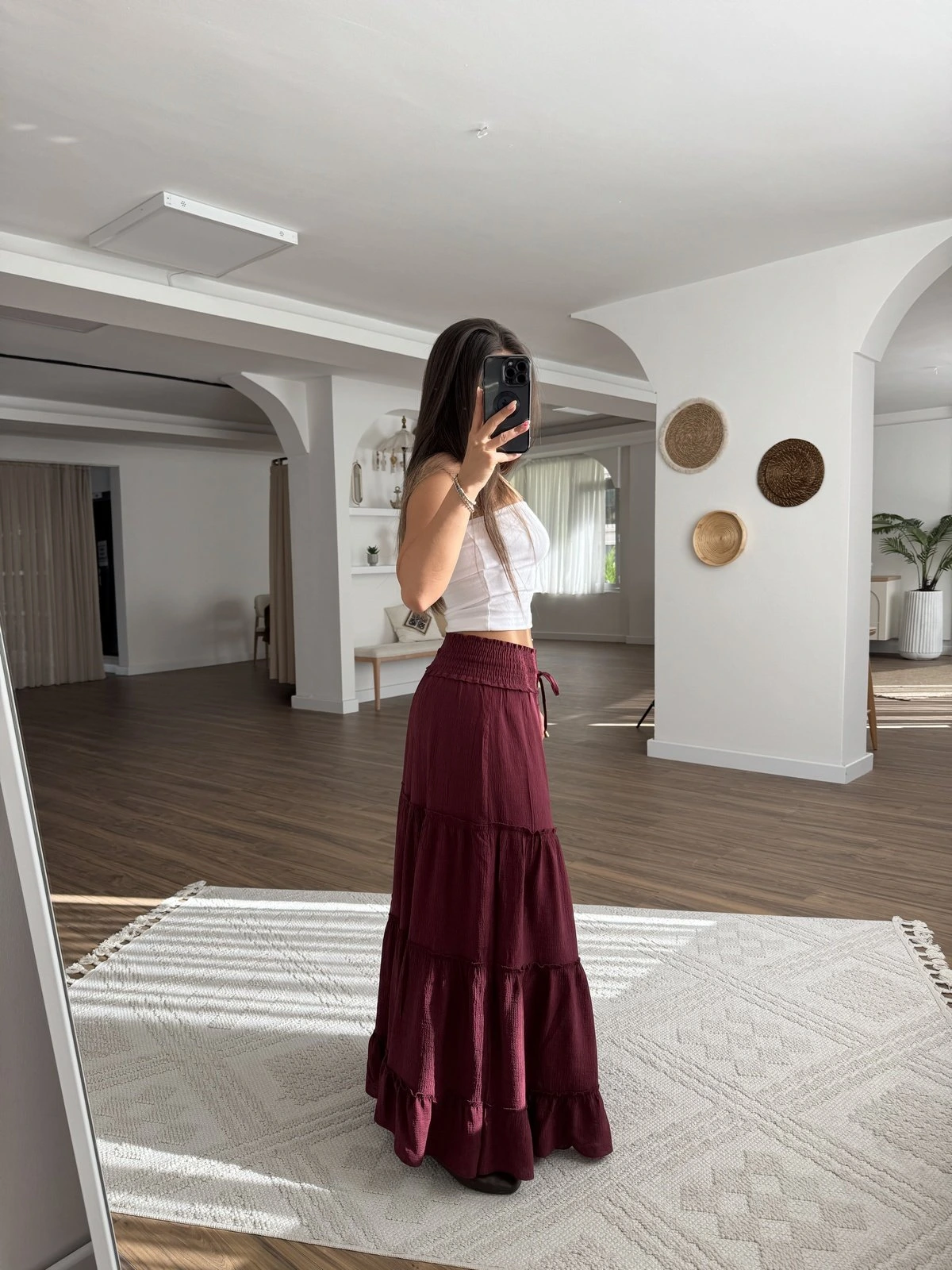 GİPE KEMERLİ KATLI TAM BOY ASTARLI VİSKON ETEK – BORDO