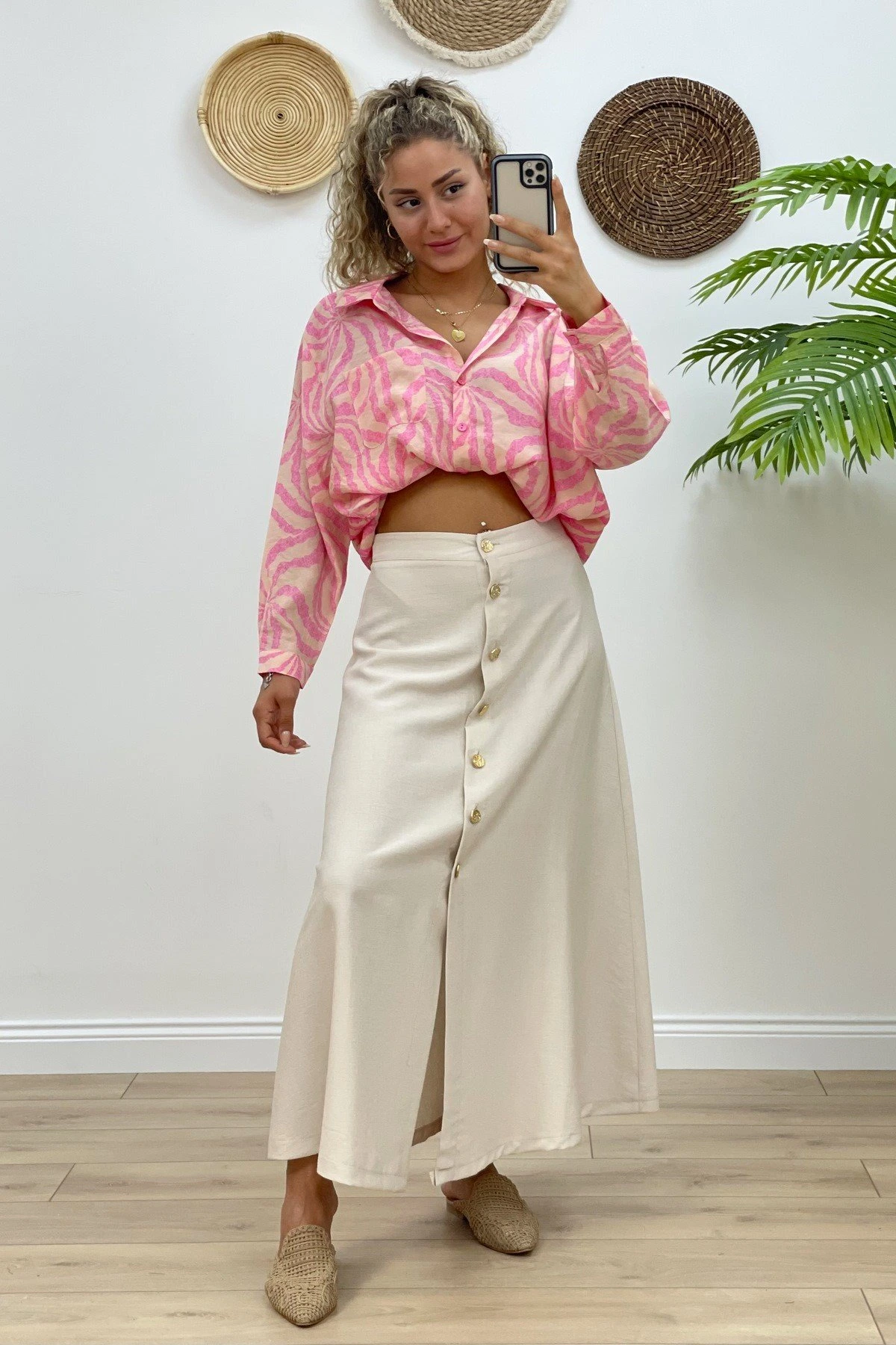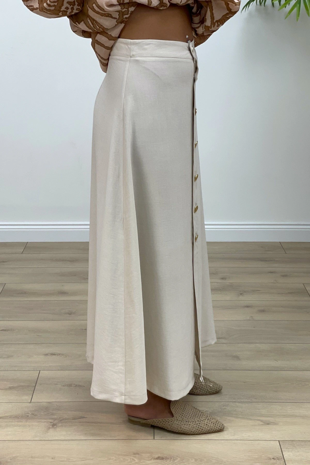 GOLD DÜĞME MİDİ BOY VİSKON ETEK – NATUREL