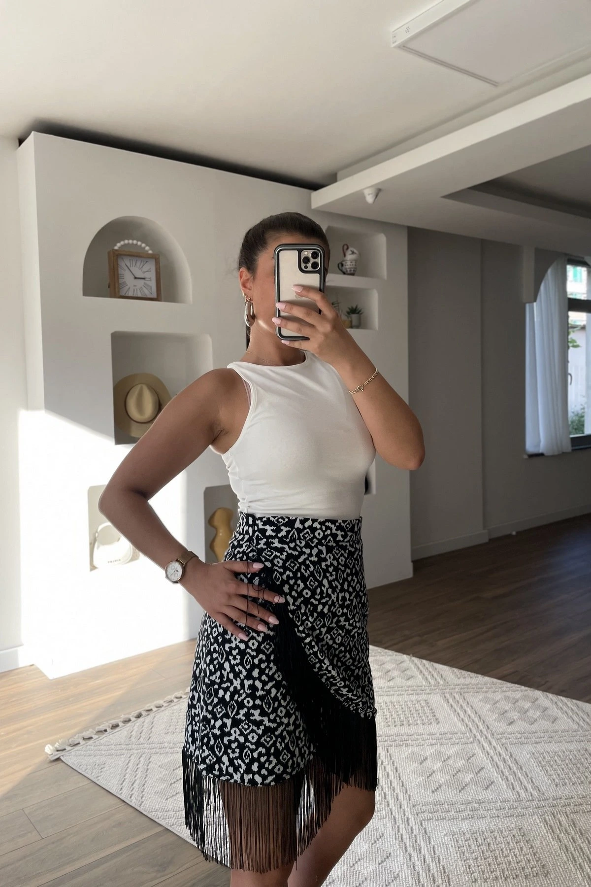 KAPAKLI PÜSKÜL DETAY PAMUK ETEK – SİYAH BEYAZ
