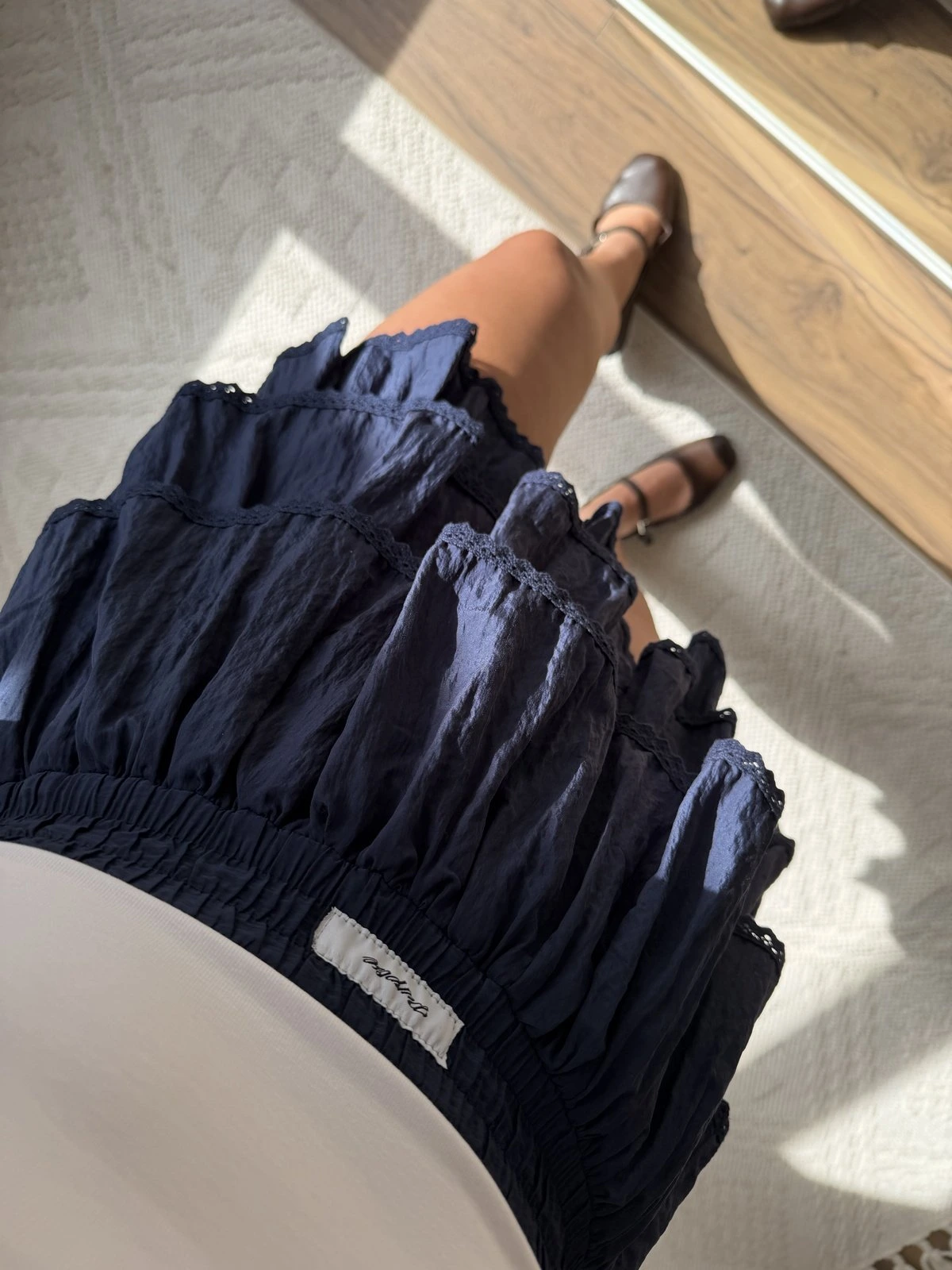 KAT UCU FİSTO FIRFIRLI ŞORT ASTAR VİSKON MİNİ ETEK – LACİVERT