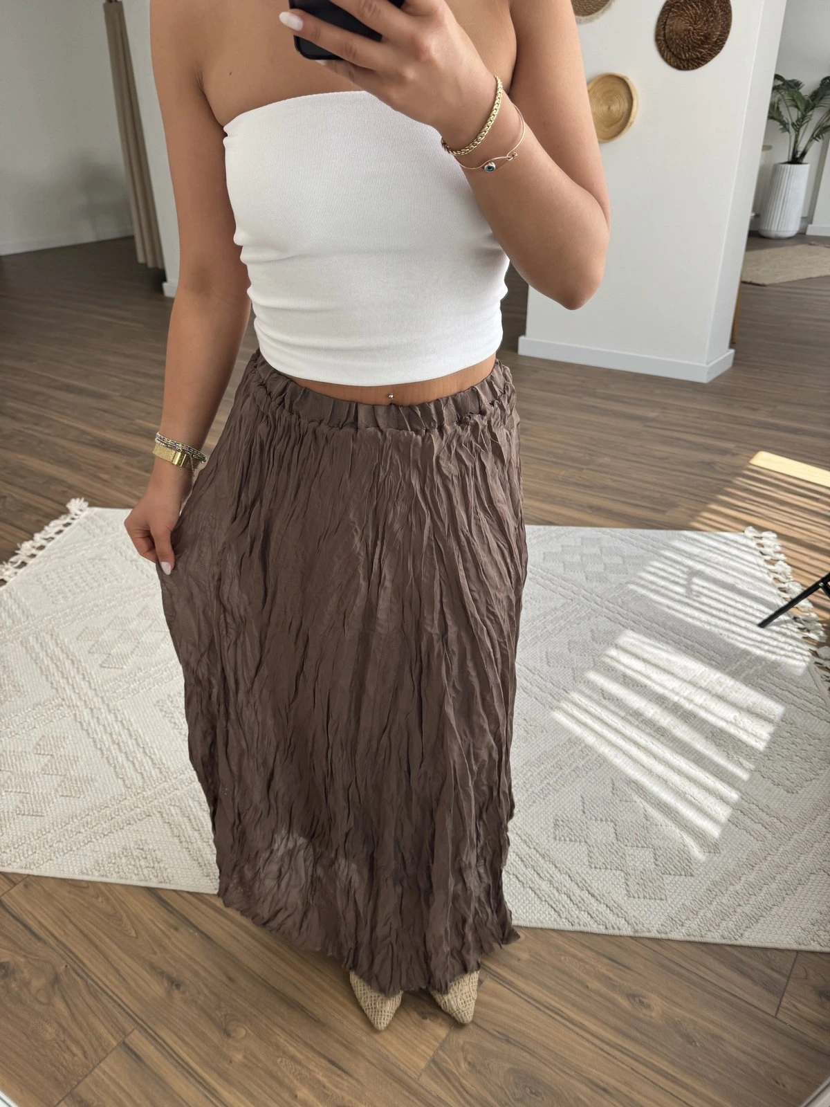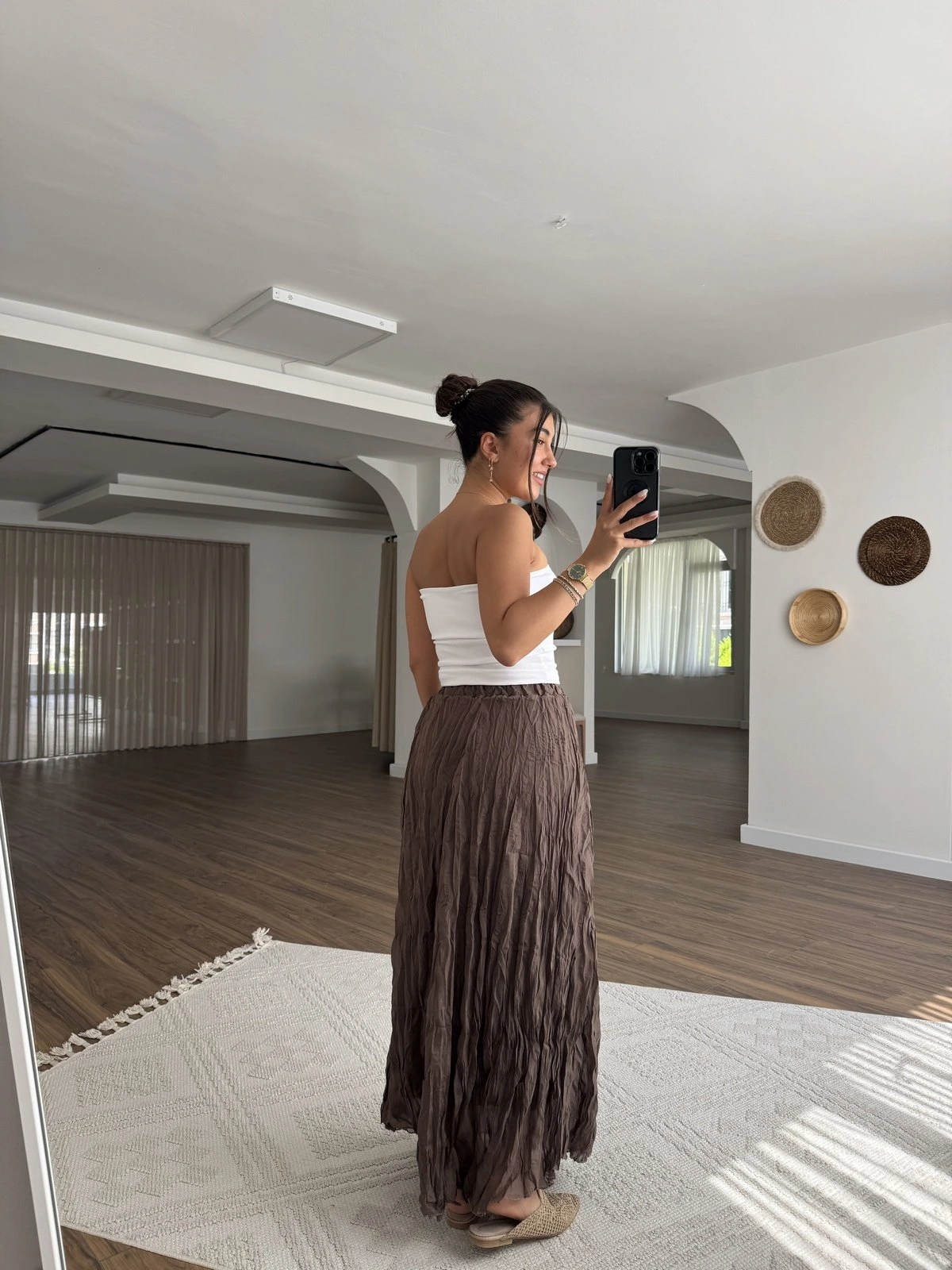 MODAL KARIŞIM KIRIŞIK BEL LASTİK ASTARLI ETEK – KAHVE
