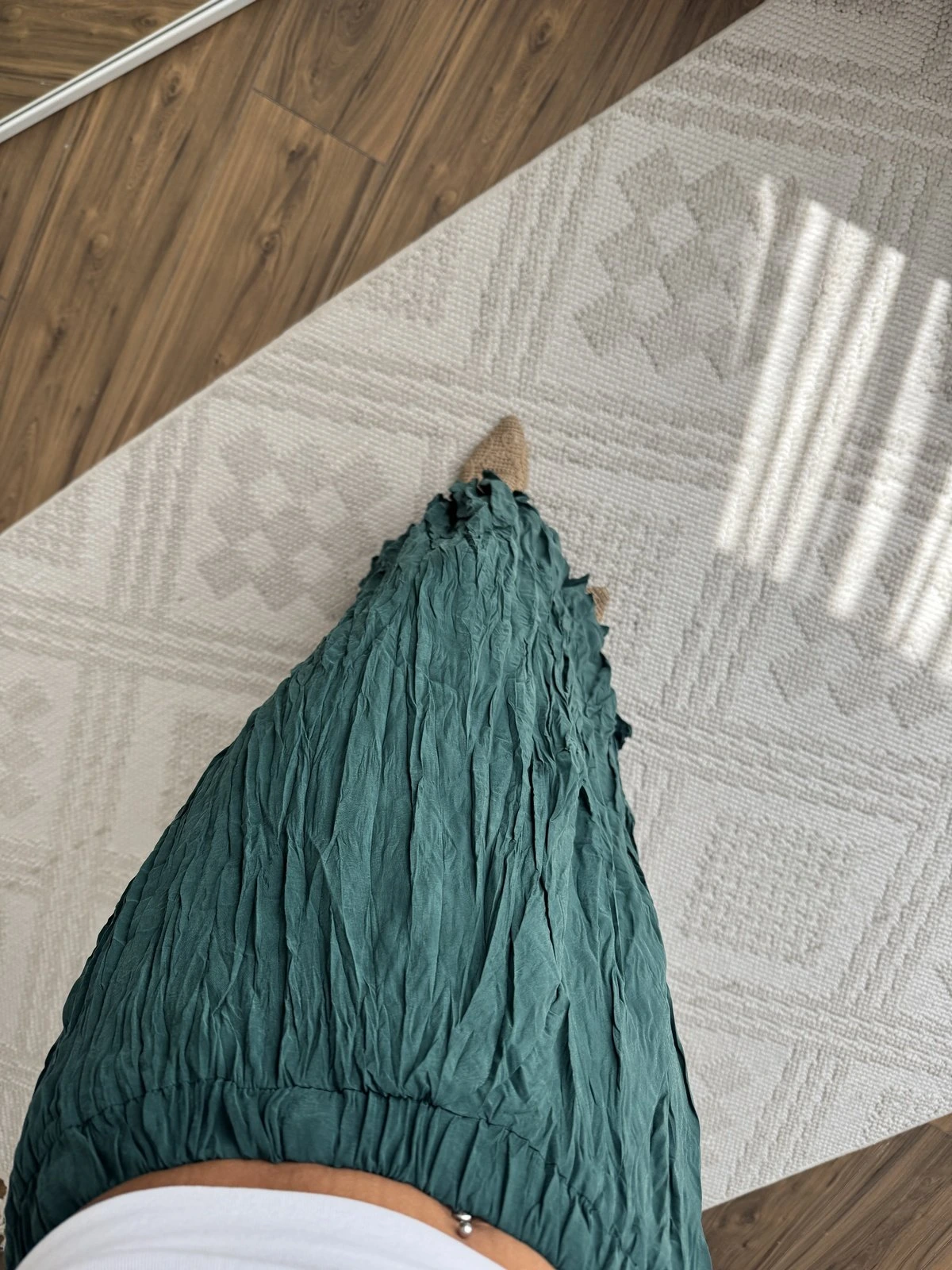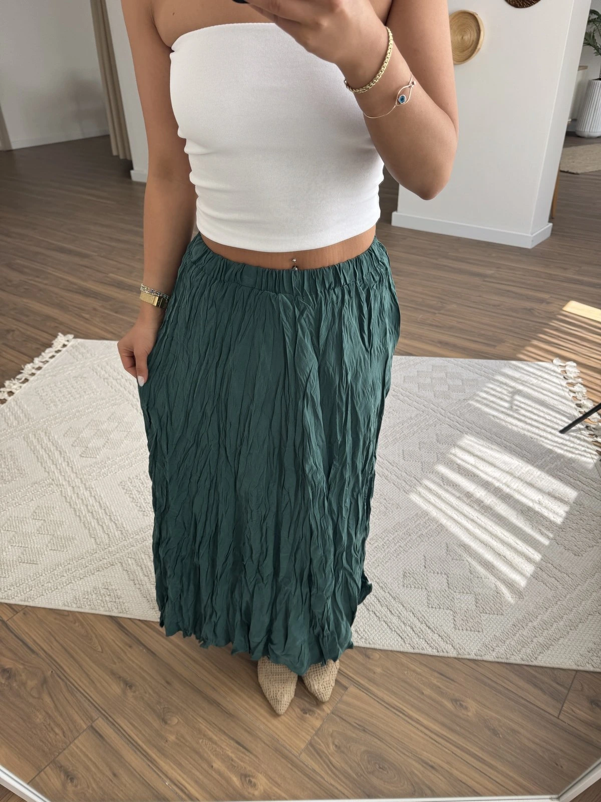 MODAL KARIŞIM KIRIŞIK BEL LASTİK ASTARLI ETEK – ZÜMRÜT YEŞİL