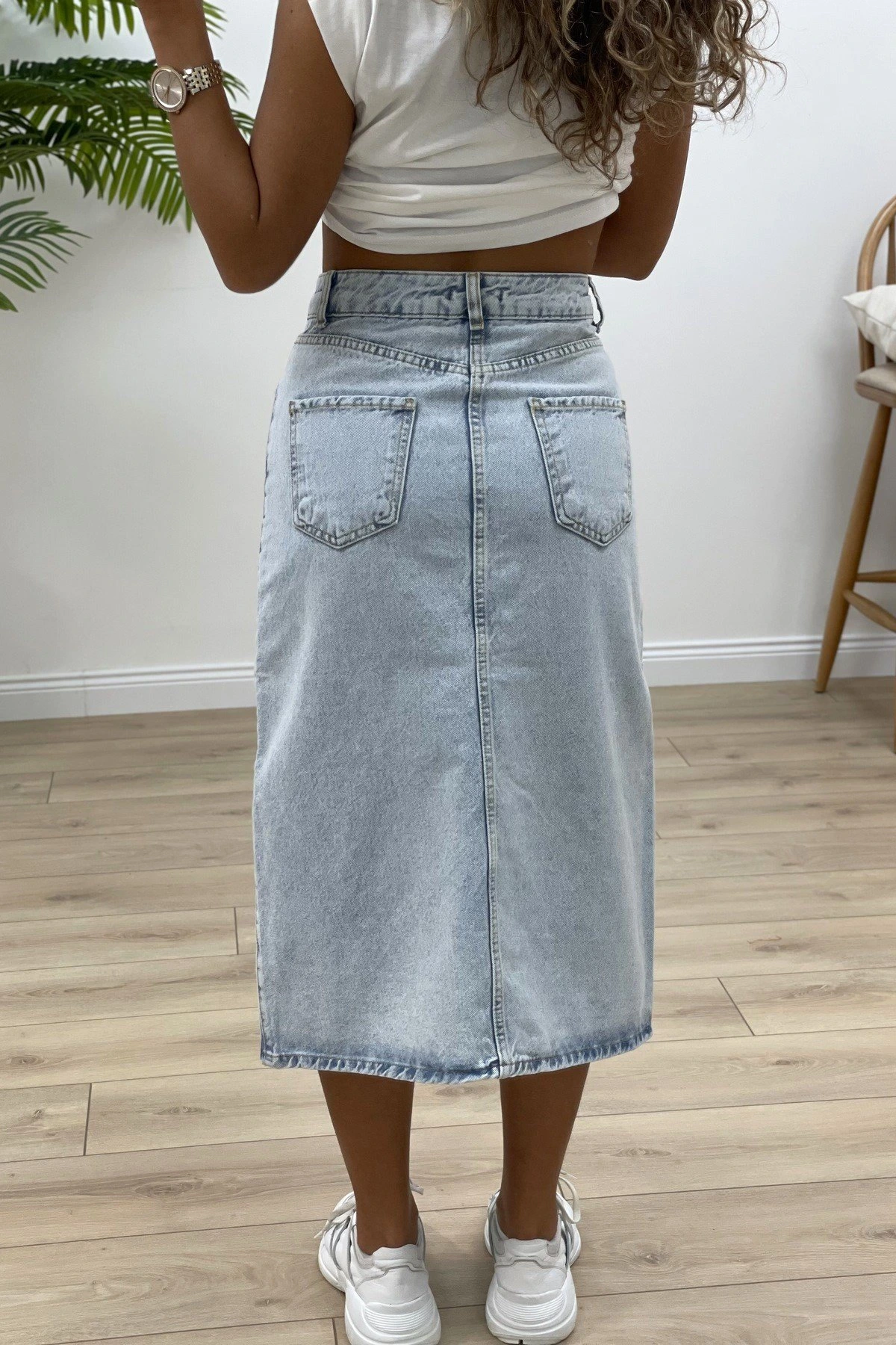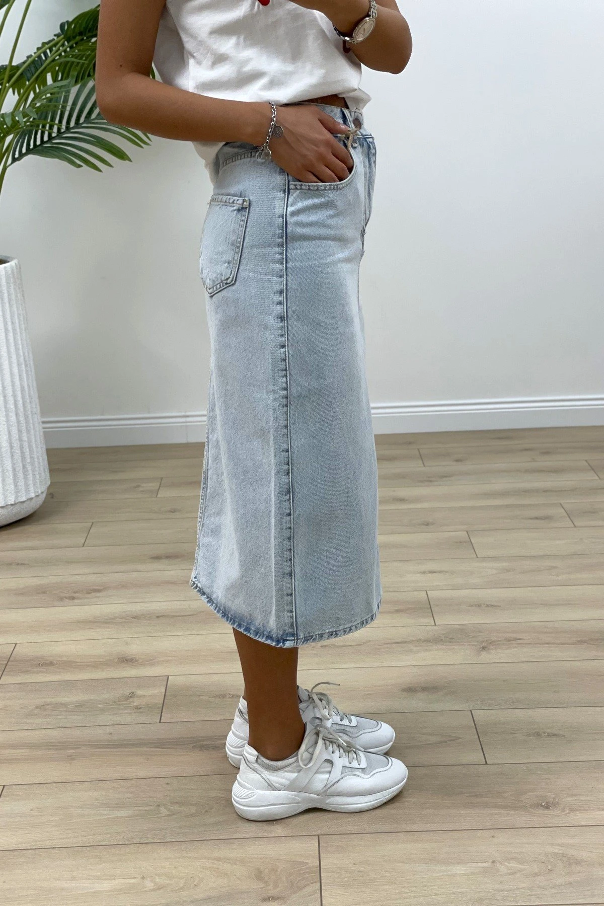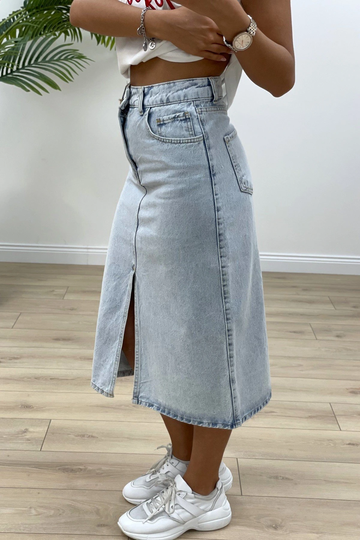 ÖN YIRTMAÇ MİDİ BOY KOT ETEK – BUZ MAVİ