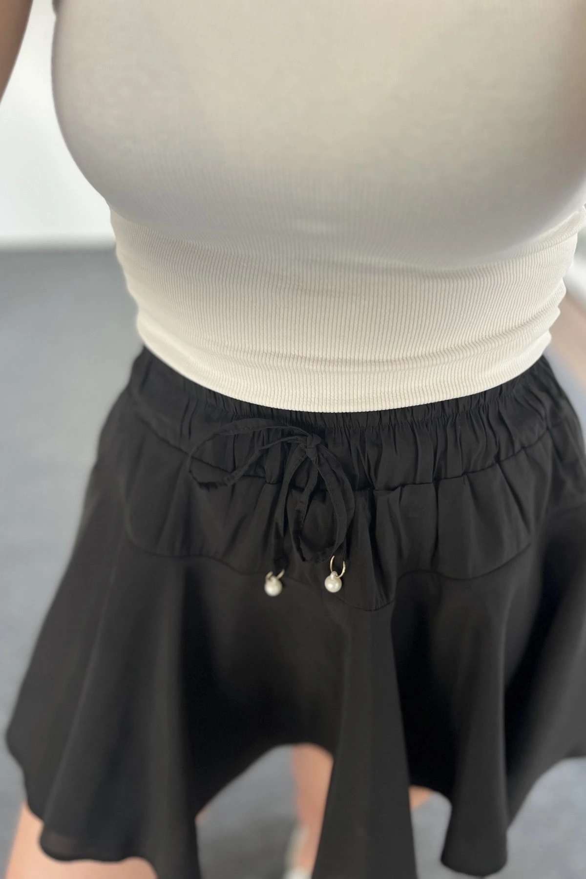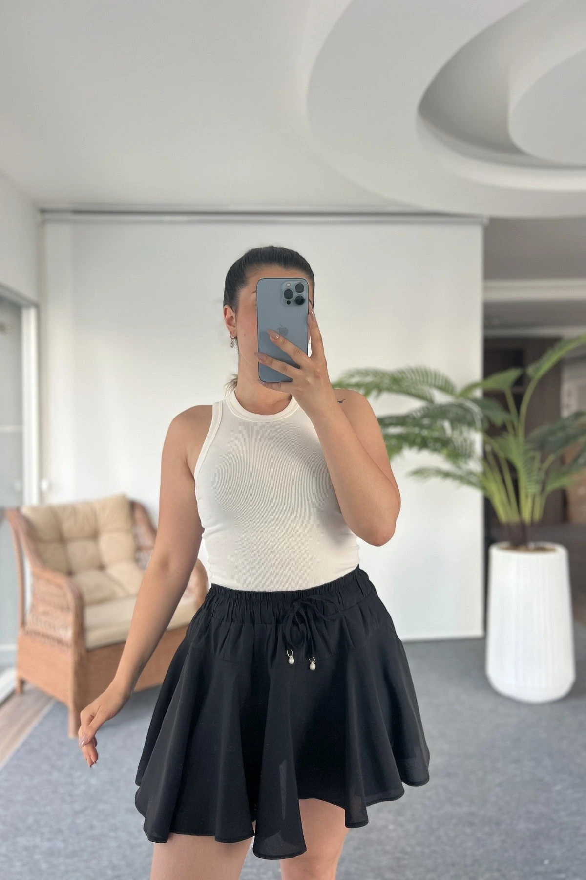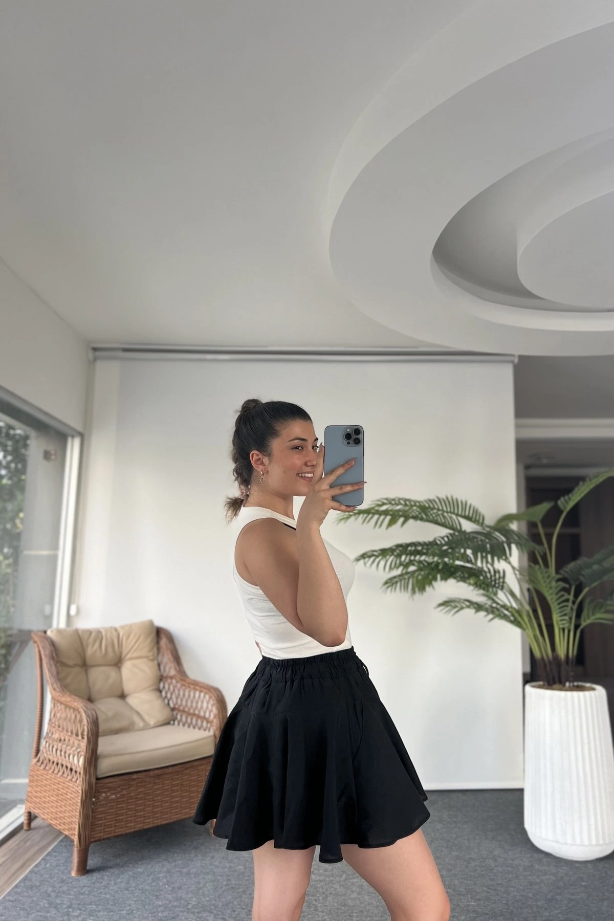 ŞORTLU KLOŞ MİNİ TİRİL ETEK – SİYAH